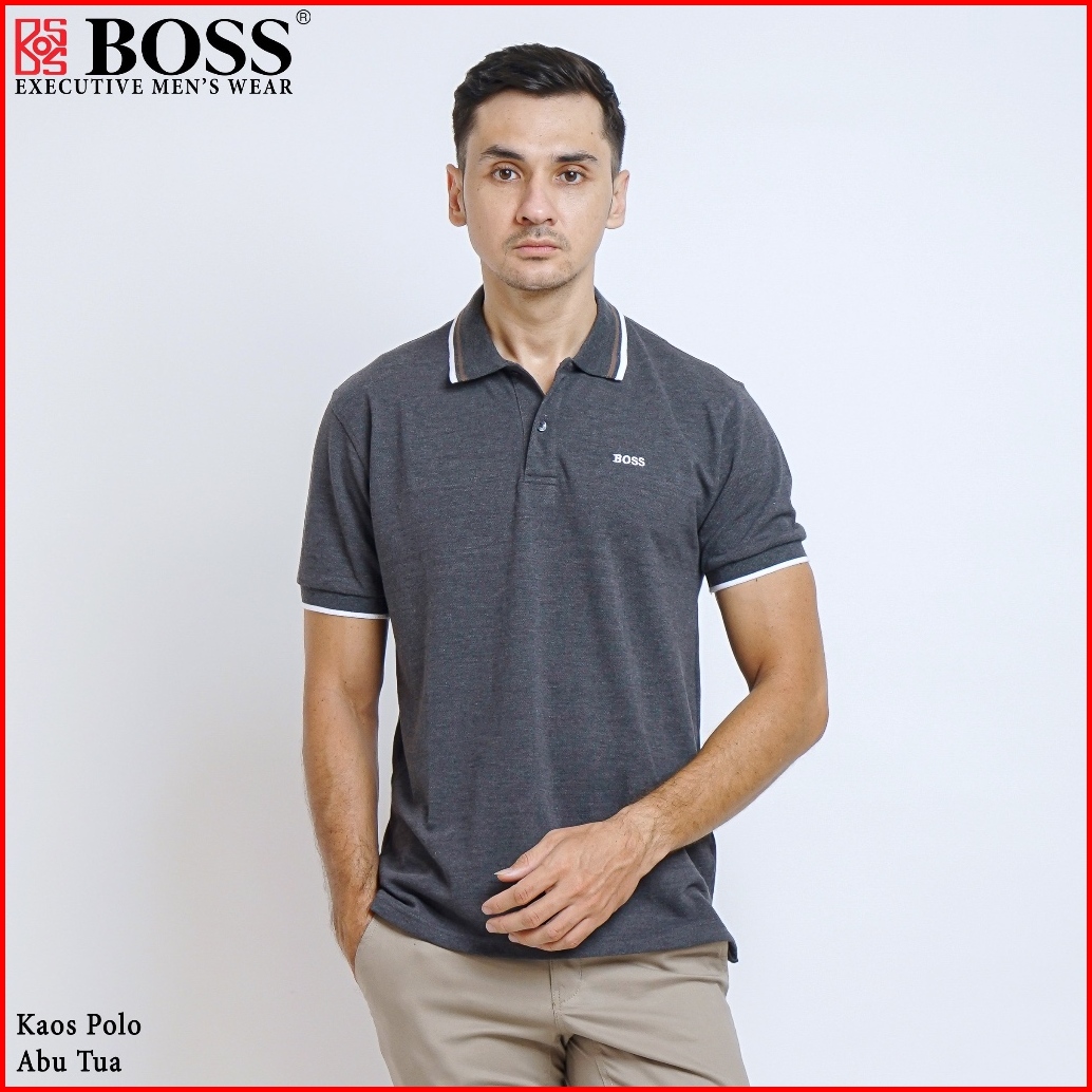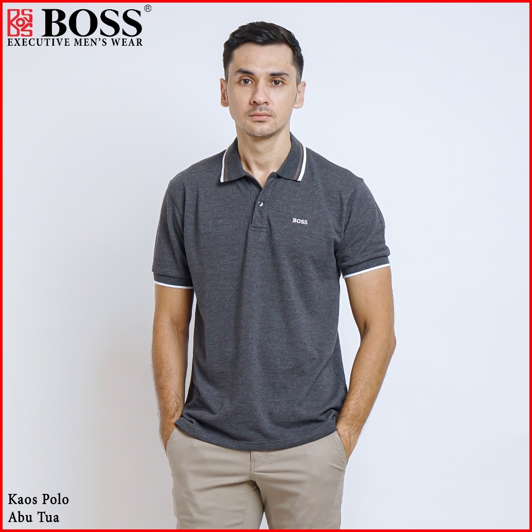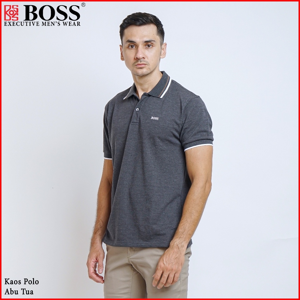 Boss Kaos Polo Polo Shirt Pria Regular Fit Abu Tua
