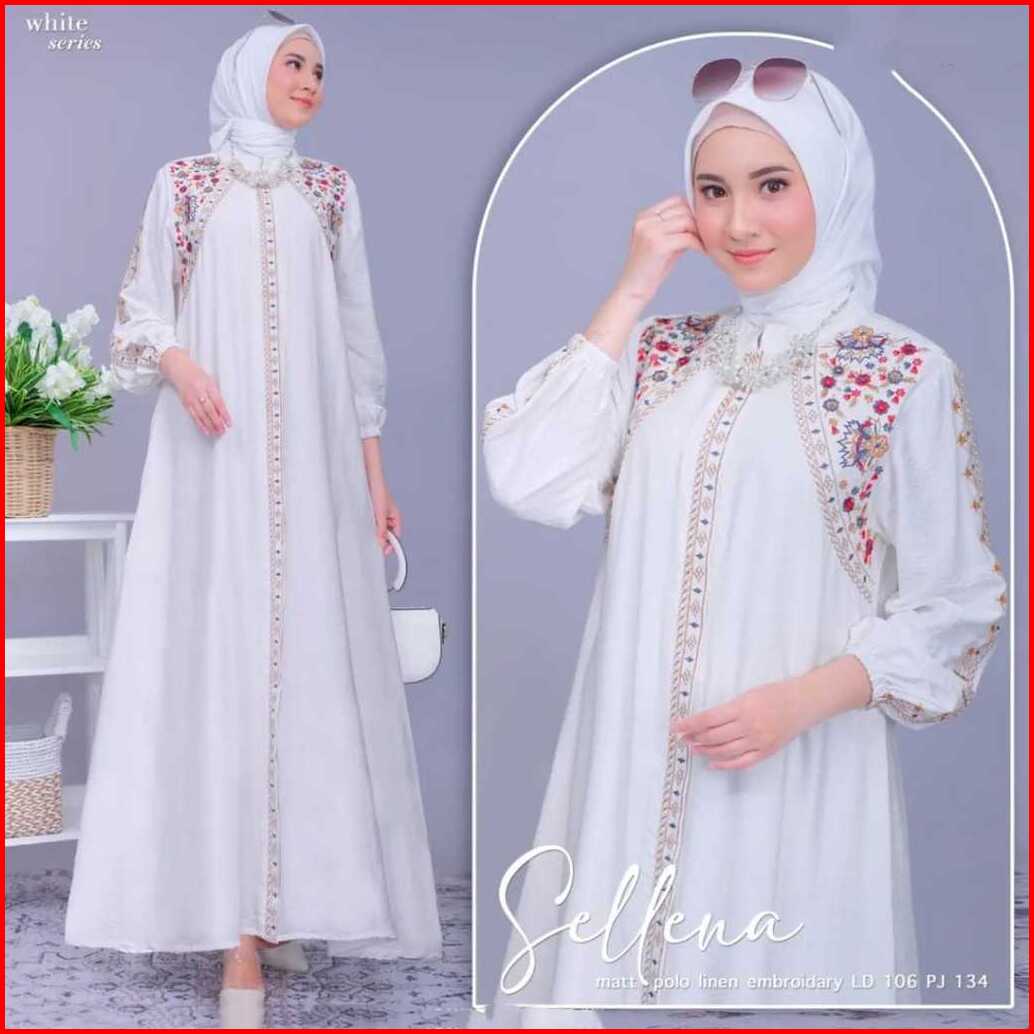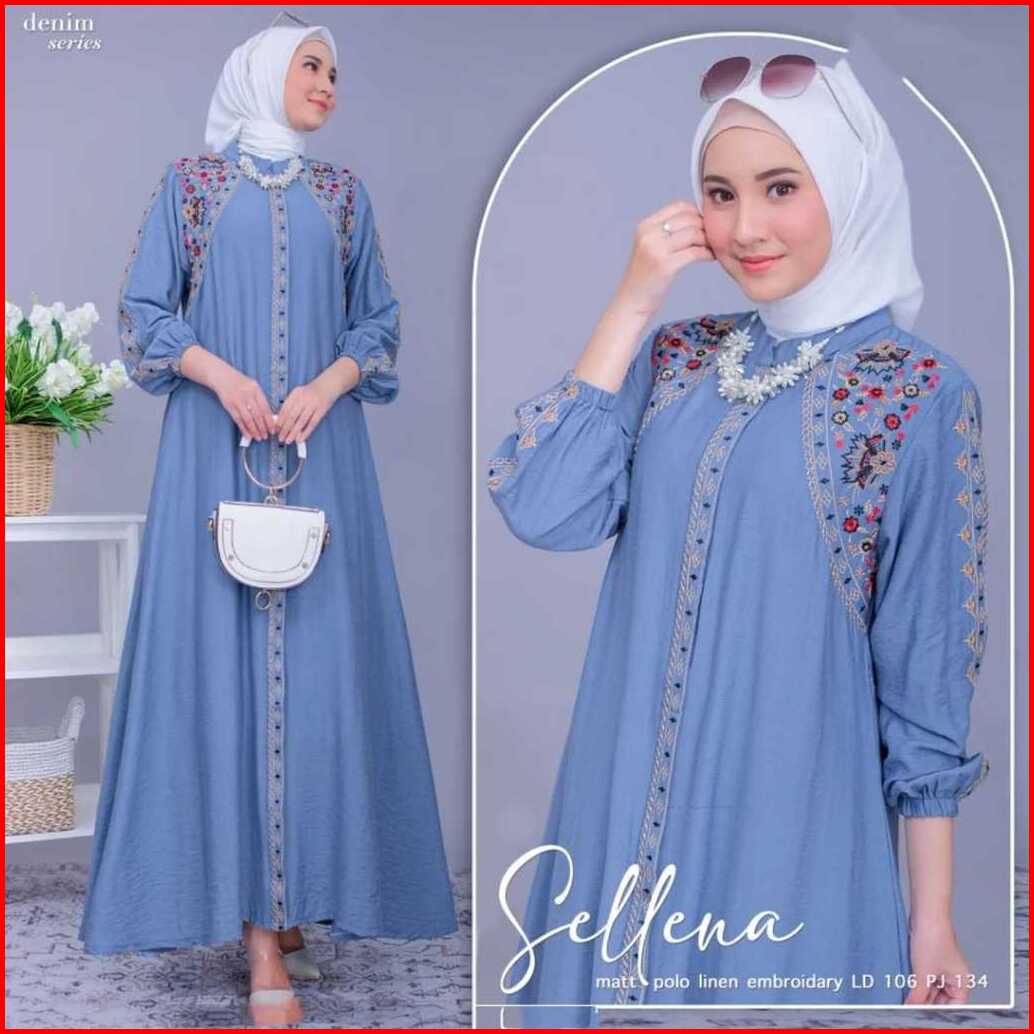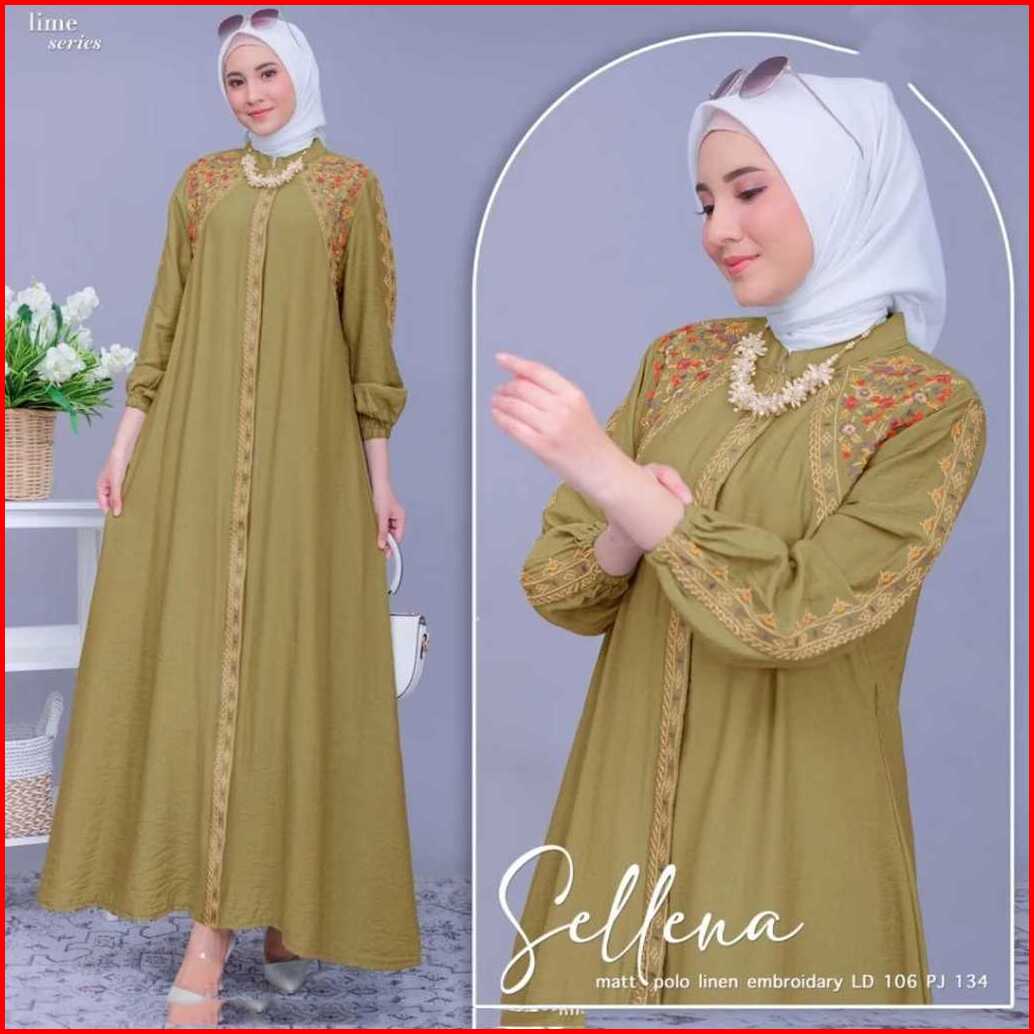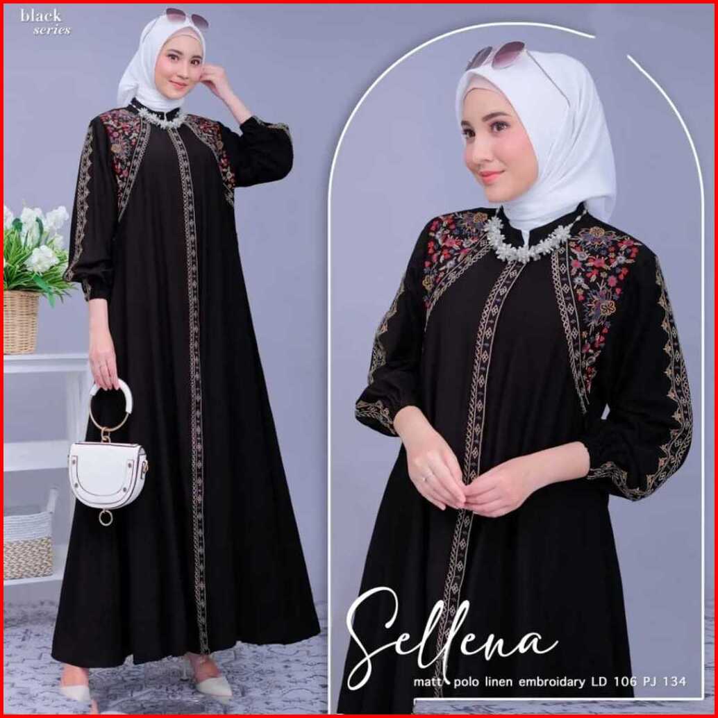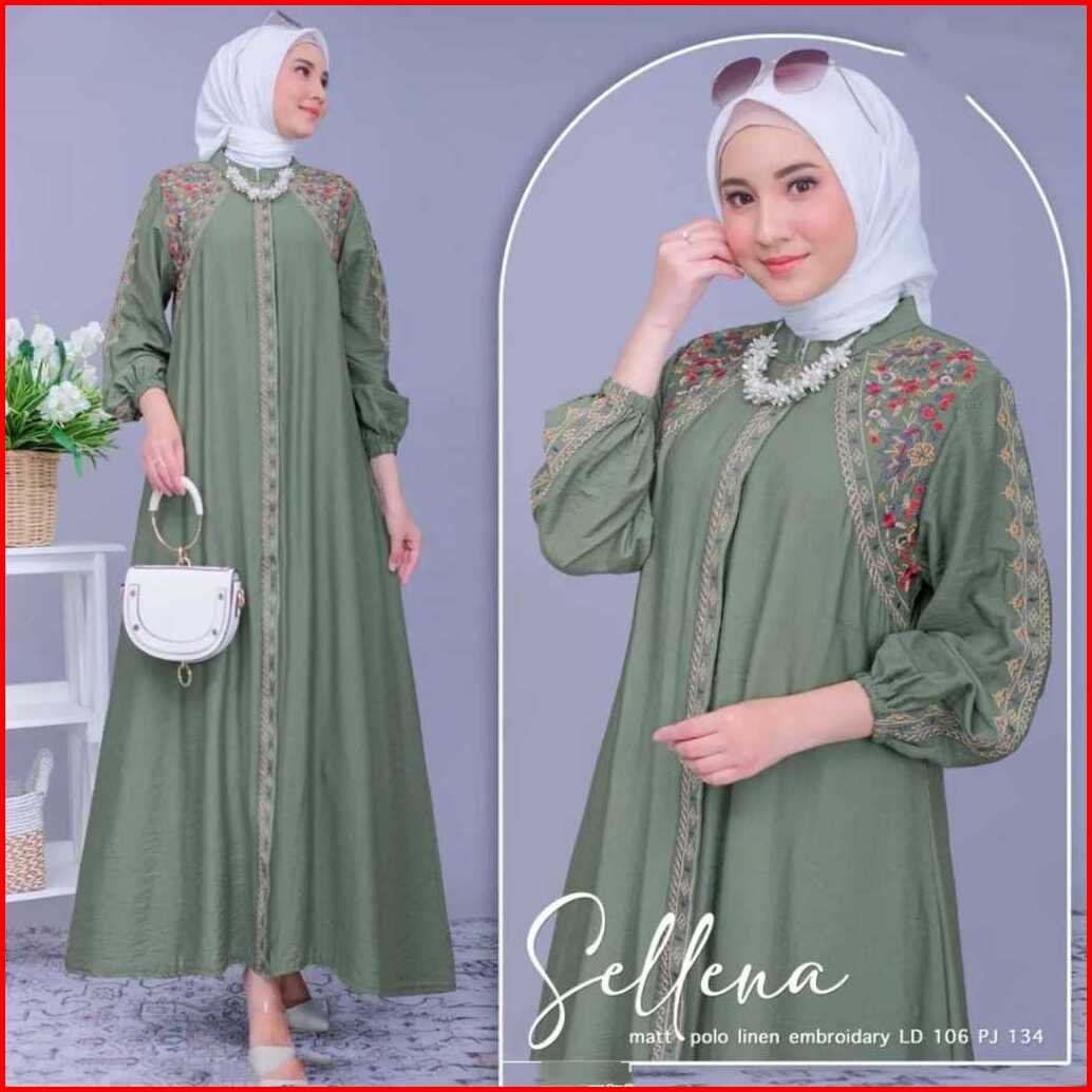Sellena Dress Material Poli Linen Mix Bordir Preium Original Gamis Wanita Muslimah Terbaru