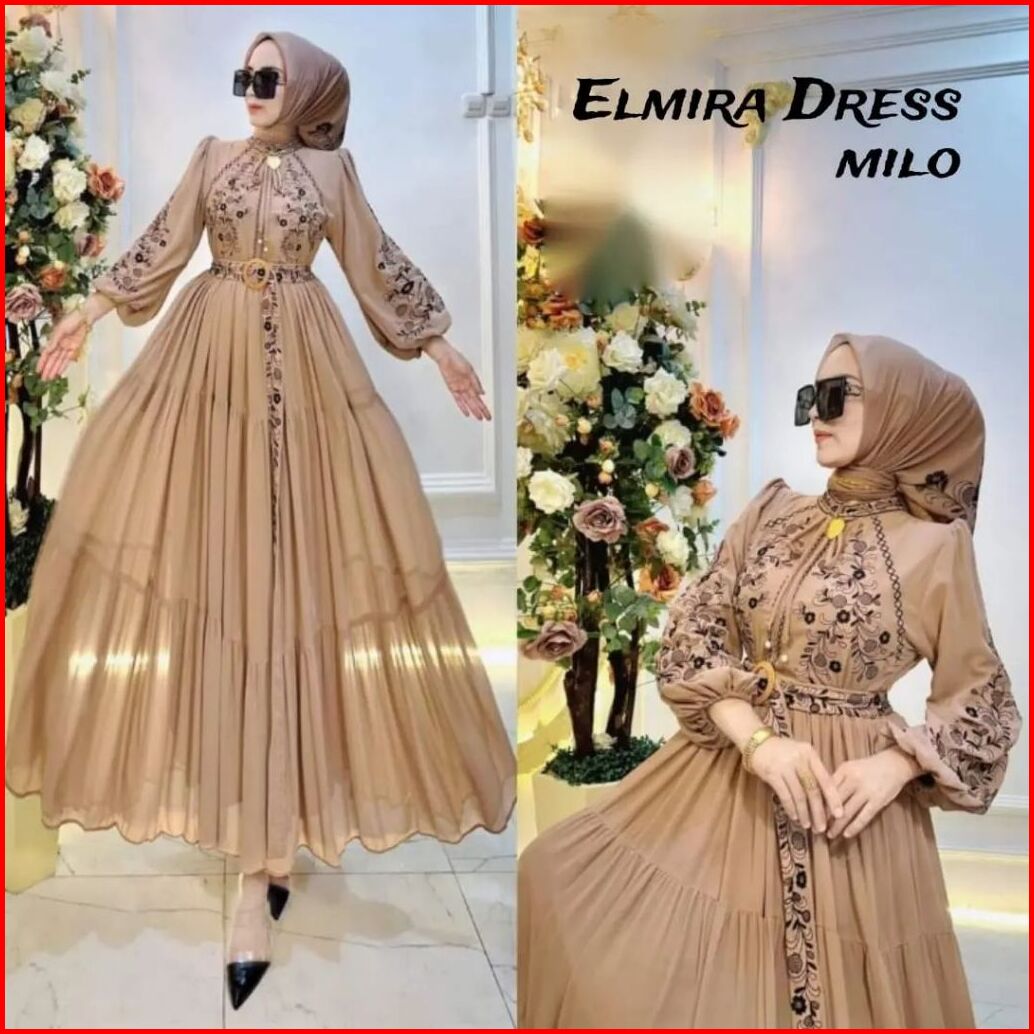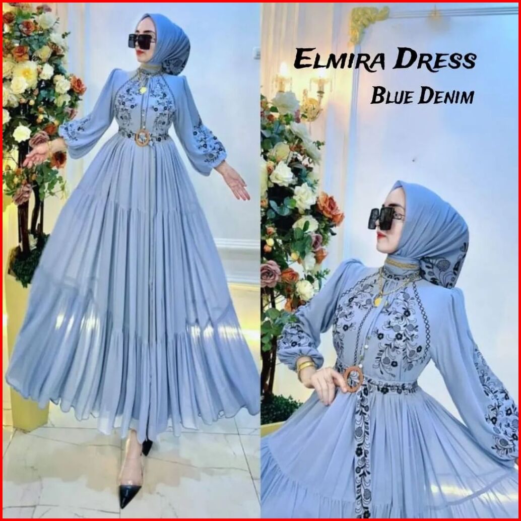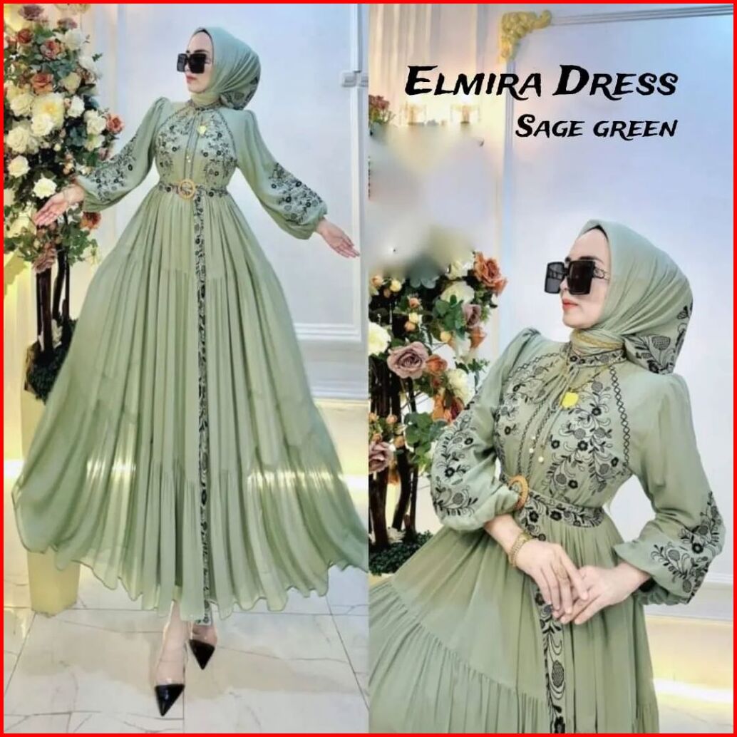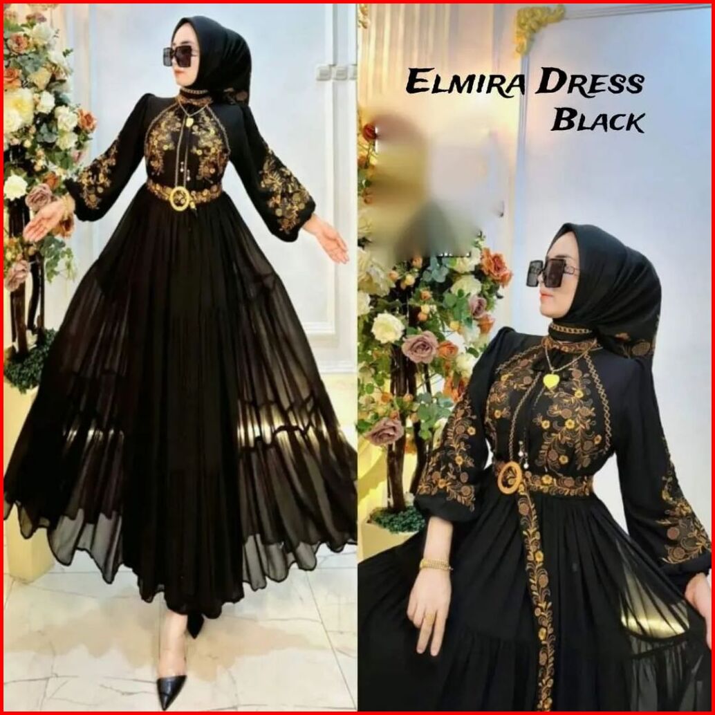 Ellyfashion Elmira Dress Gamis Bordir Bahan Ceruty Gamis Terbaru 2025 Dress Mewah Untuk Kondangan
