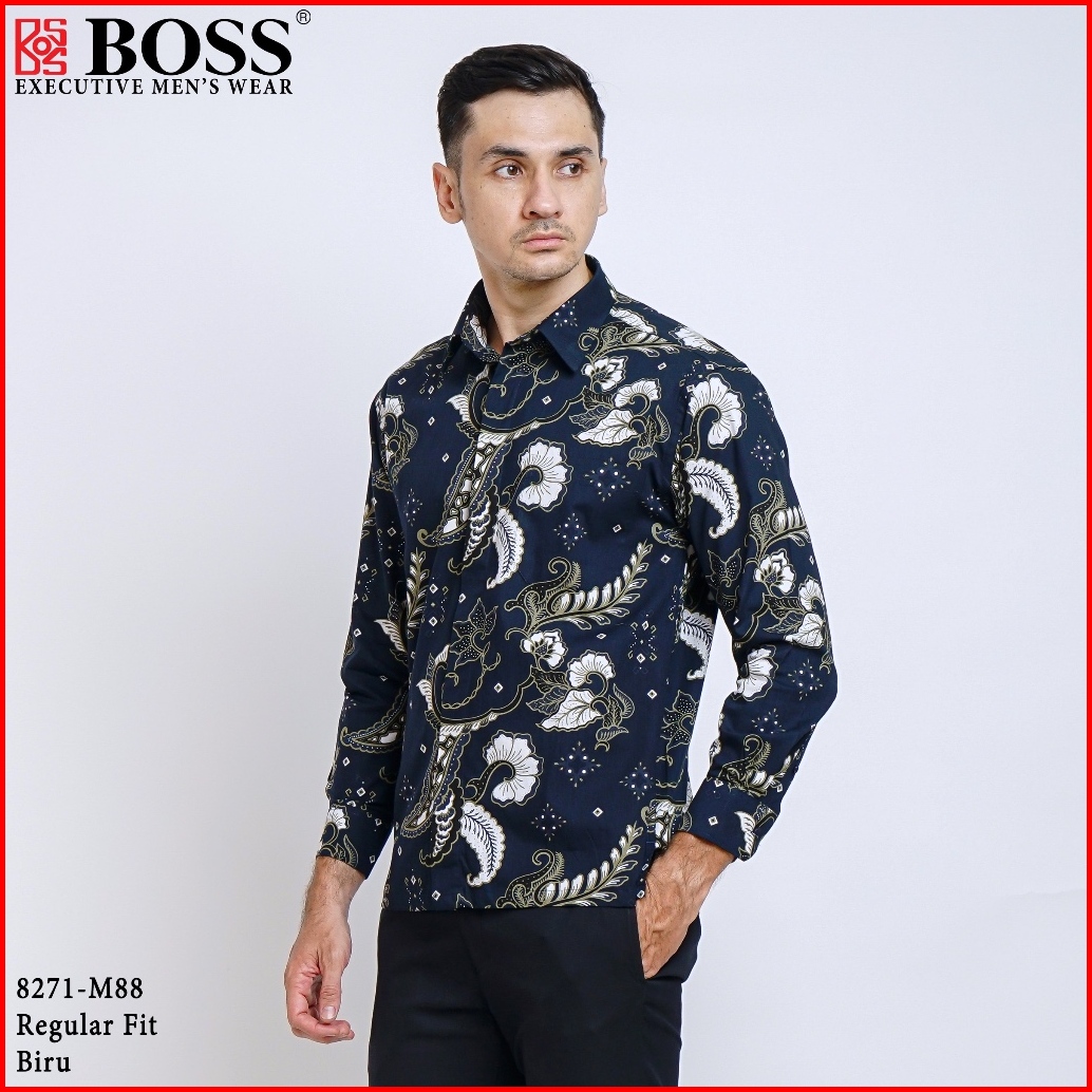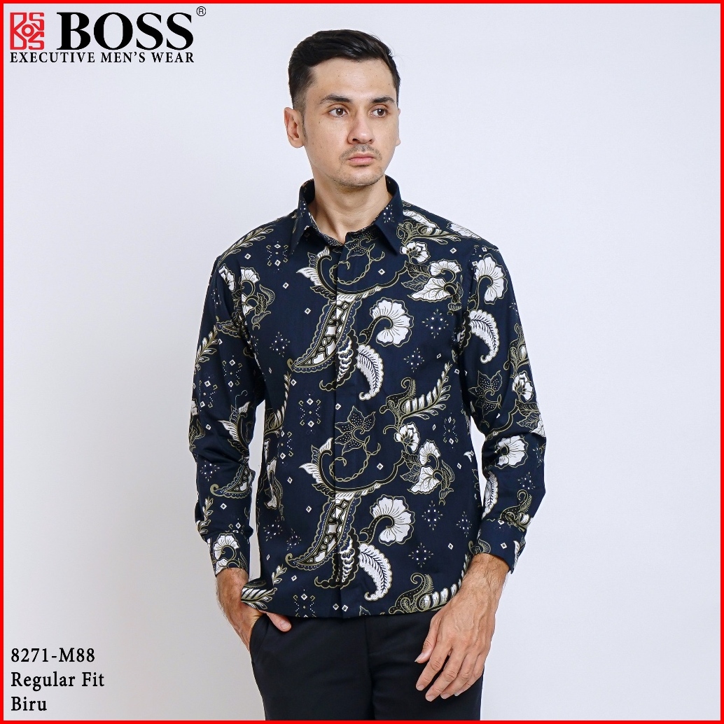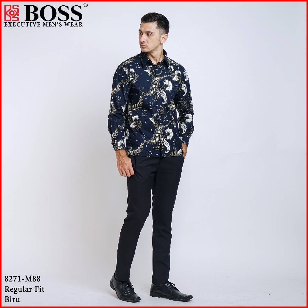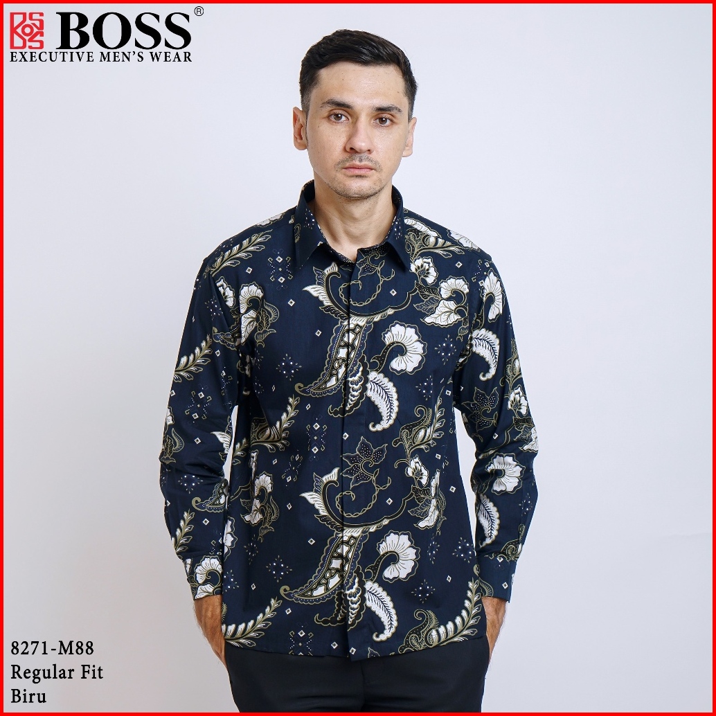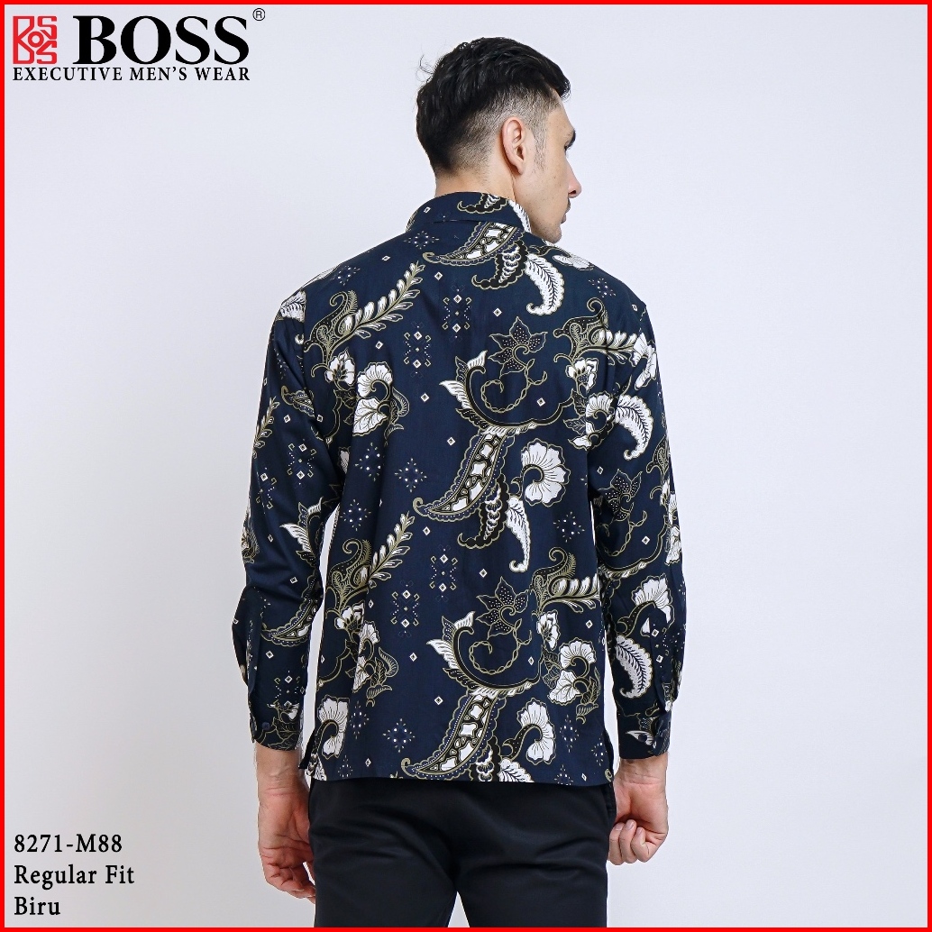 Boss Kemeja Batik Pria Lengan Panjang Regular Fit 8271 Biru