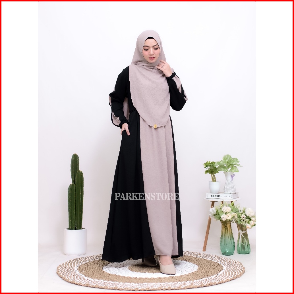 Gamis Callista Abaya Syar I Set Hijab Pasmina Oval Free Cadar Tali Crinkle Airflow Highquality