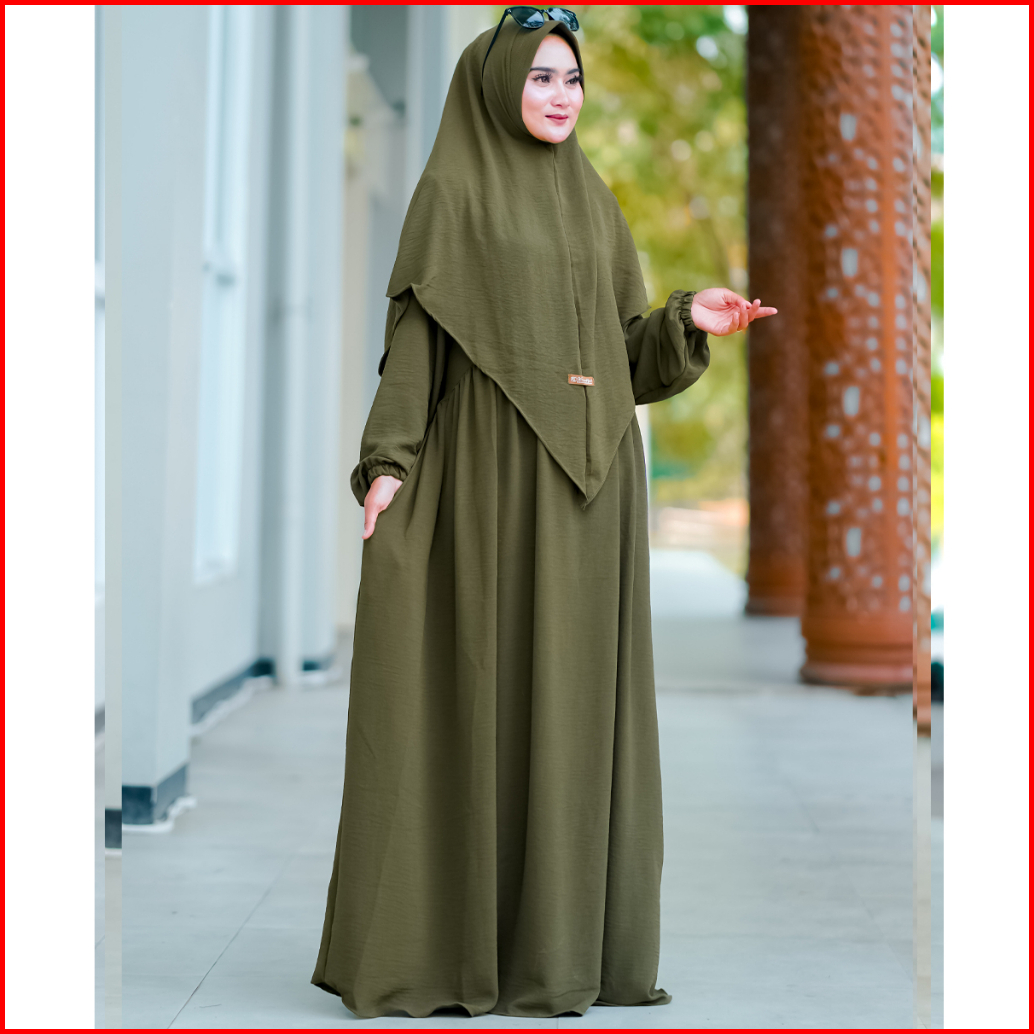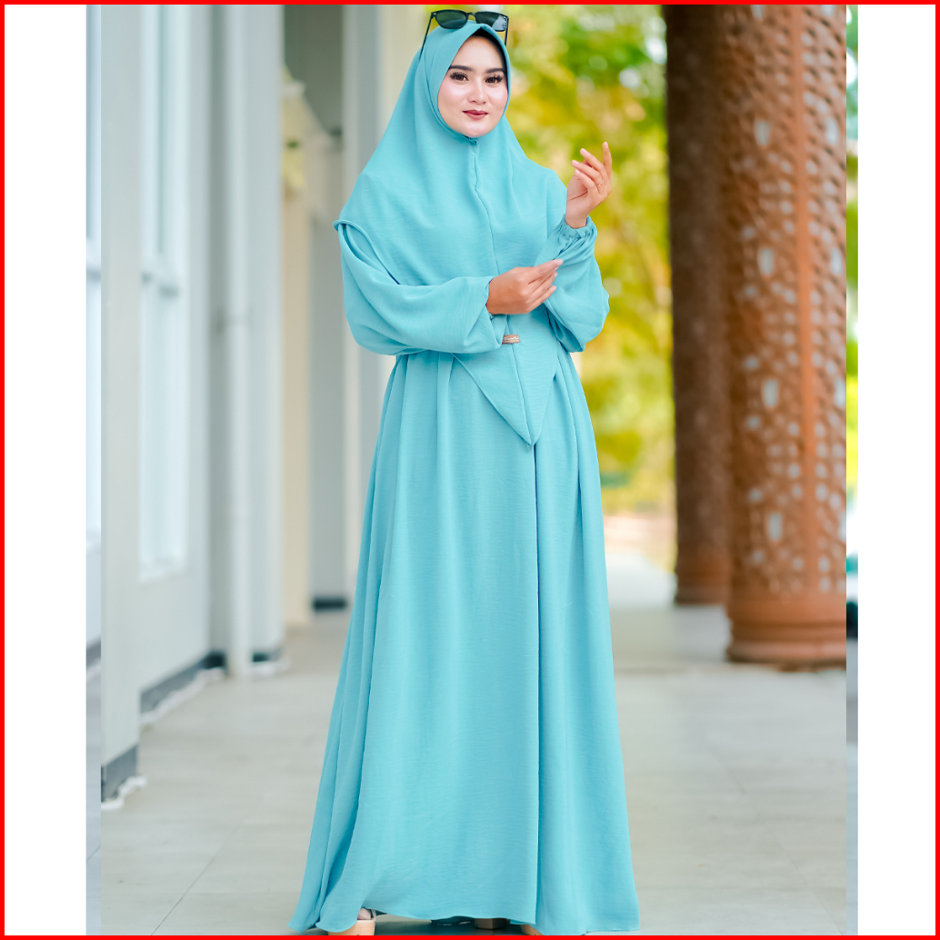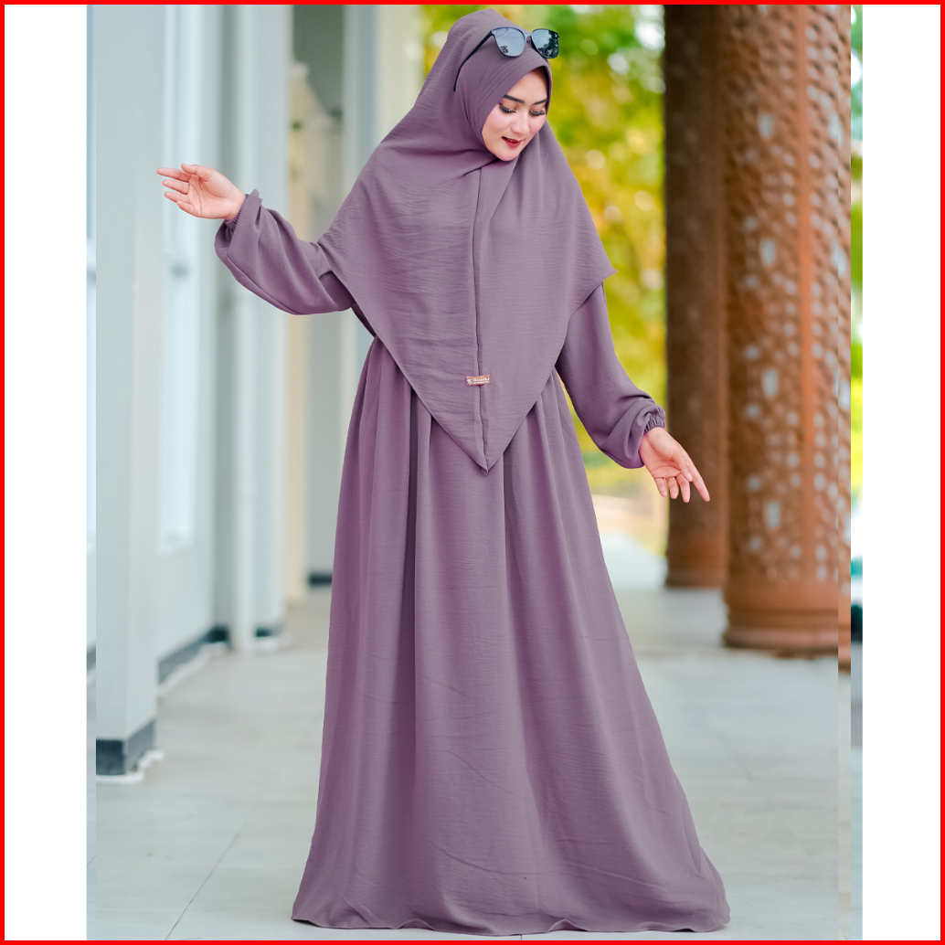 Gamis Set Hijab Luna Syari Bahan Crinkle Airflow - Gamis Elegan Simple - Gamis Terbaru Viral