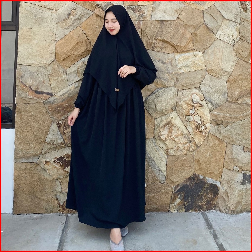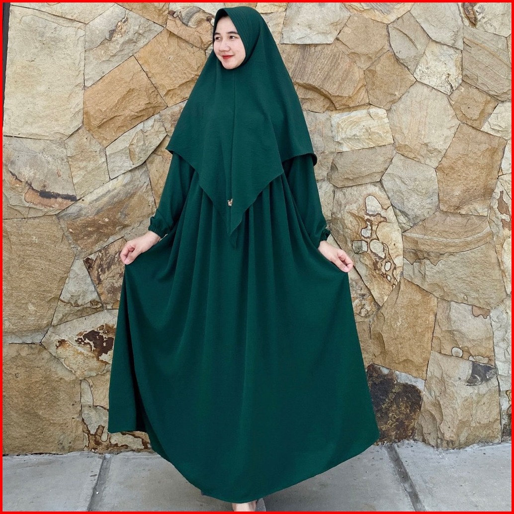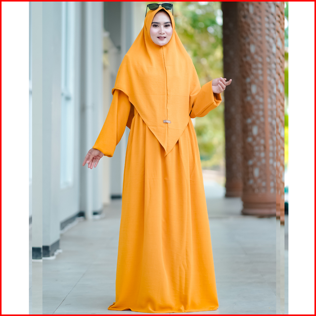 Gamis Set Hijab Luna Syari Bahan Crinkle Airflow - Gamis Elegan Simple - Gamis Terbaru Viral
