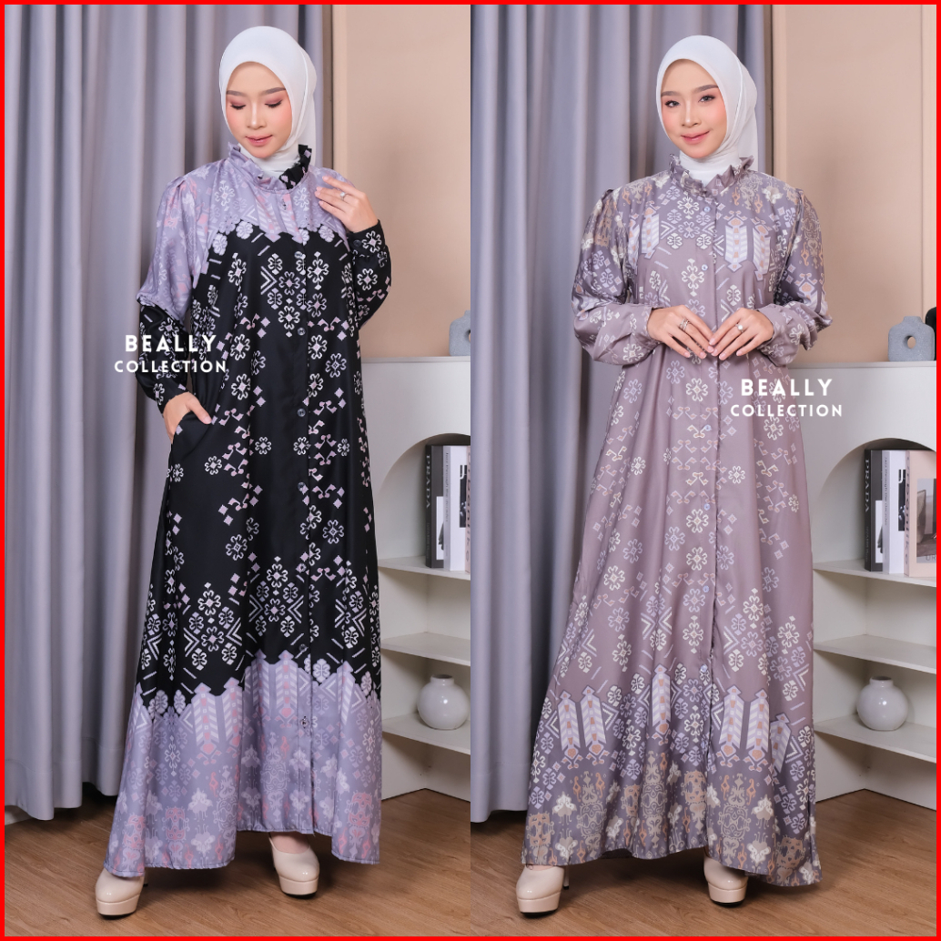 Dress Qadija Silk Mewah Gamis Motif Kondangan Pesta Lebaran Dress Batik Wanita