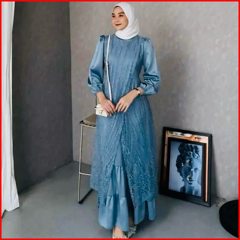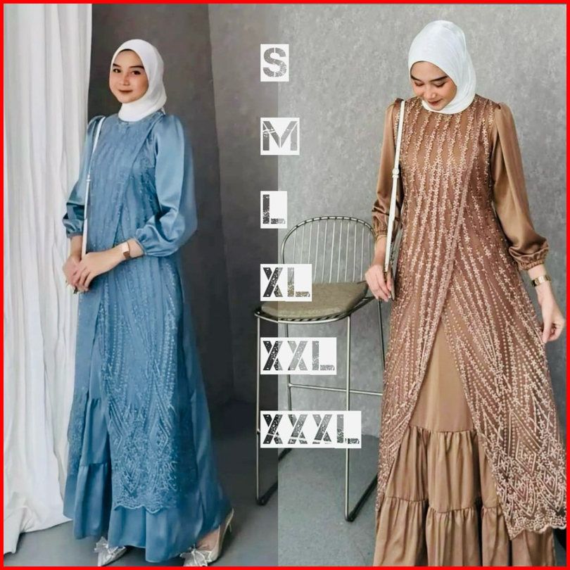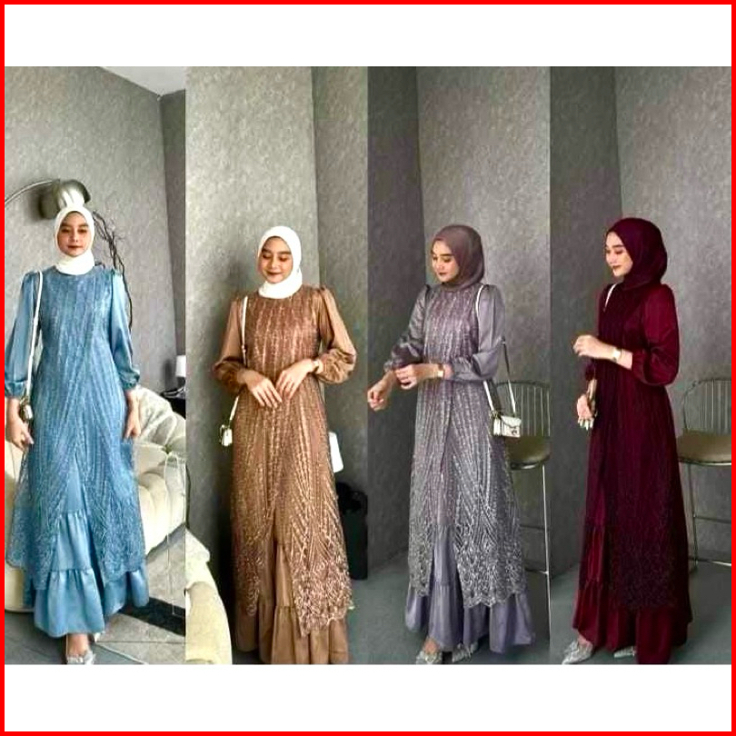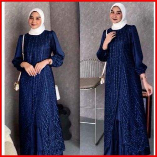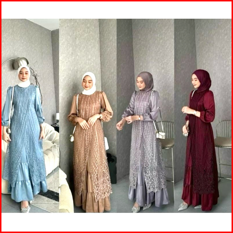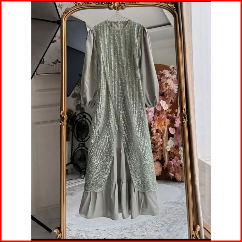 Olivia Dress Velvet Mix Brokat Import Desain Mewah Elegan Ootd Pesta Gamis Jumbo Mode2024 Buat Pesta