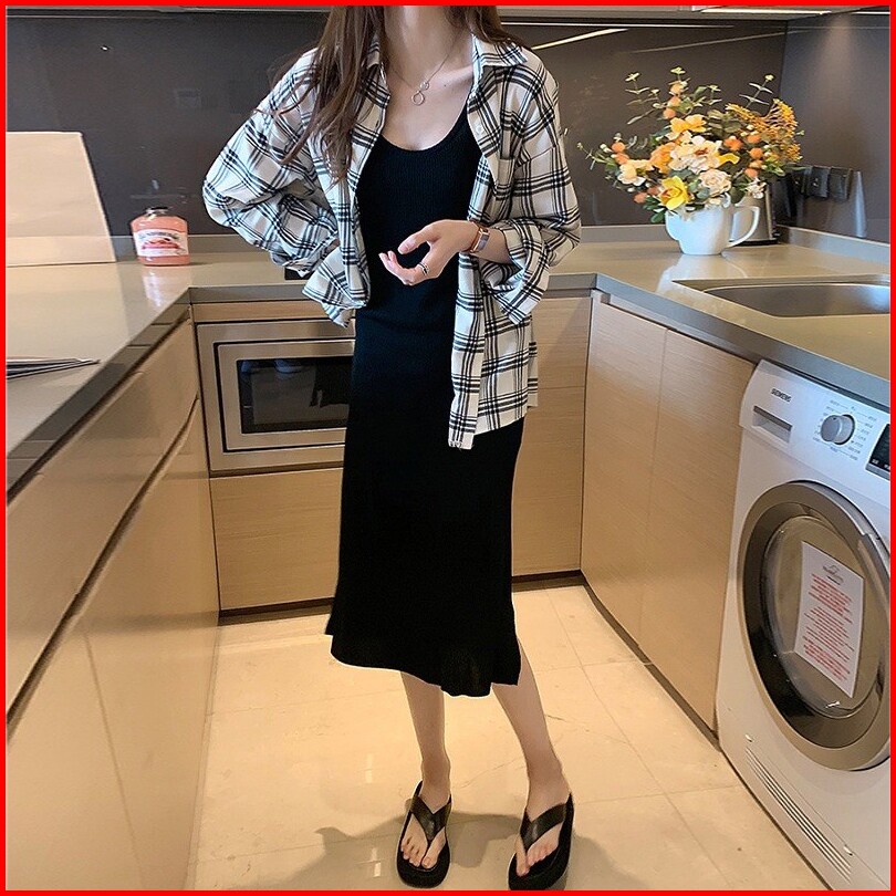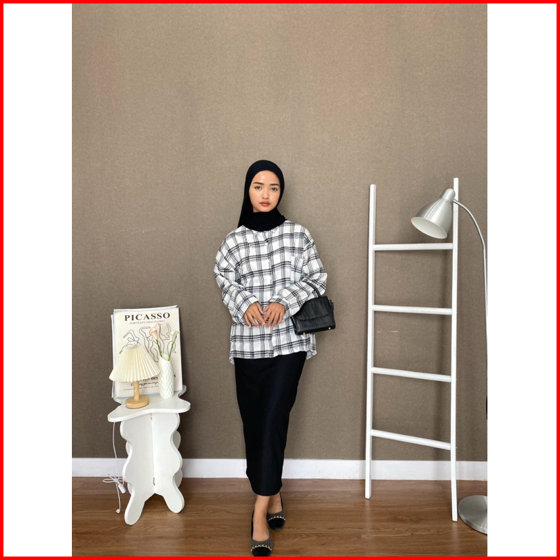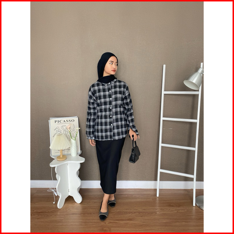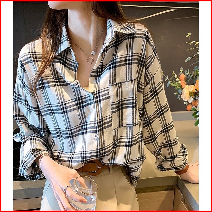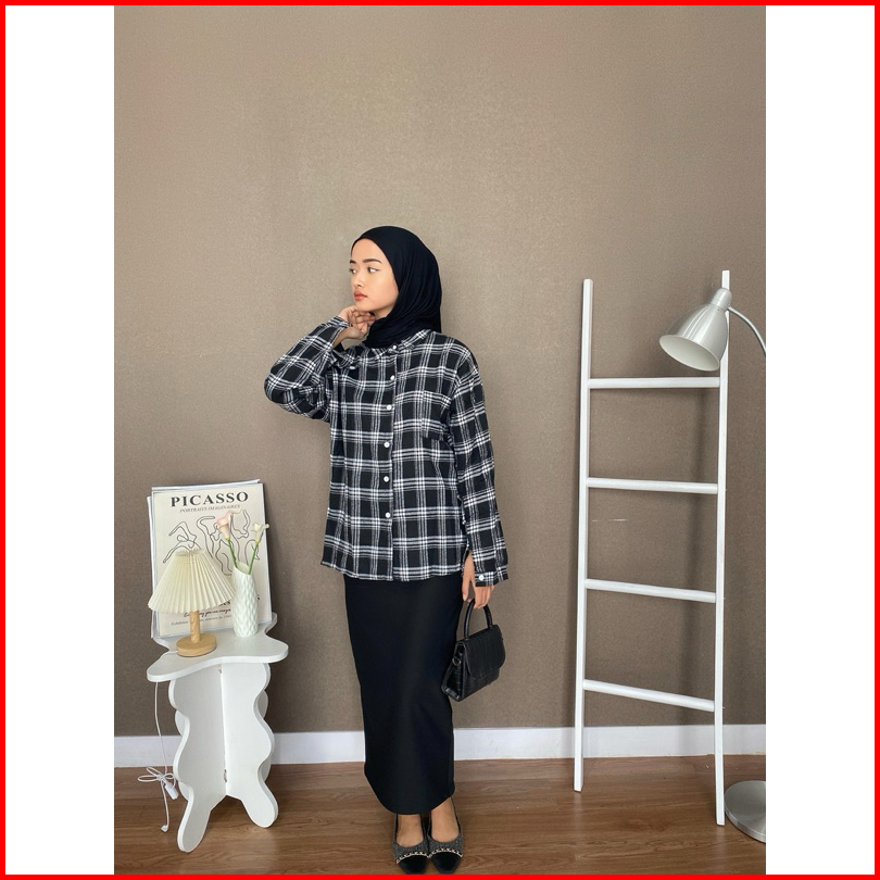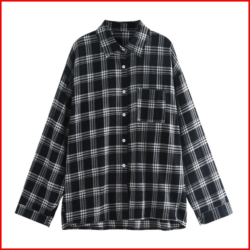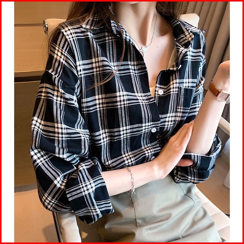 Felicia Kemeja Kotak Lengan Panjang Wanita Korean Style