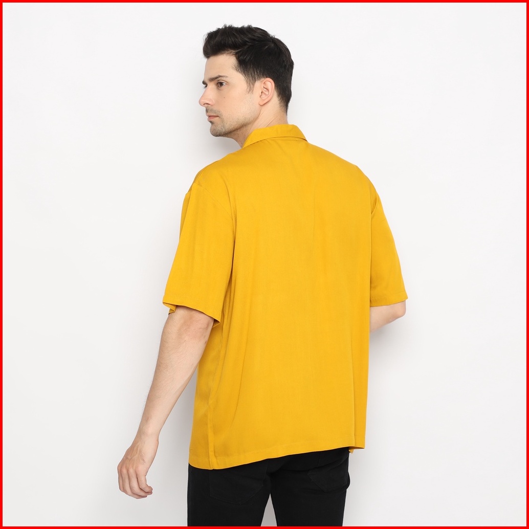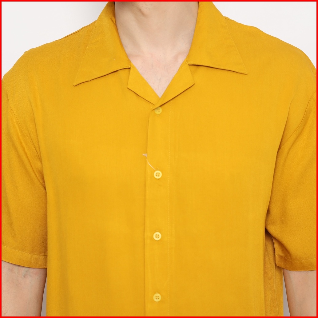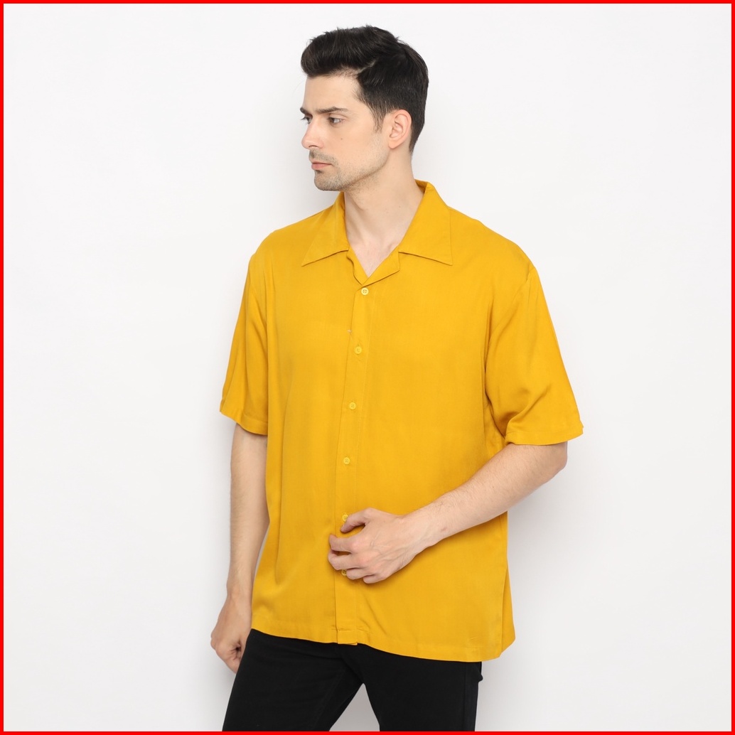 Fichino Kemeja Rayon Twill Lengan Pendek Warna Kuning