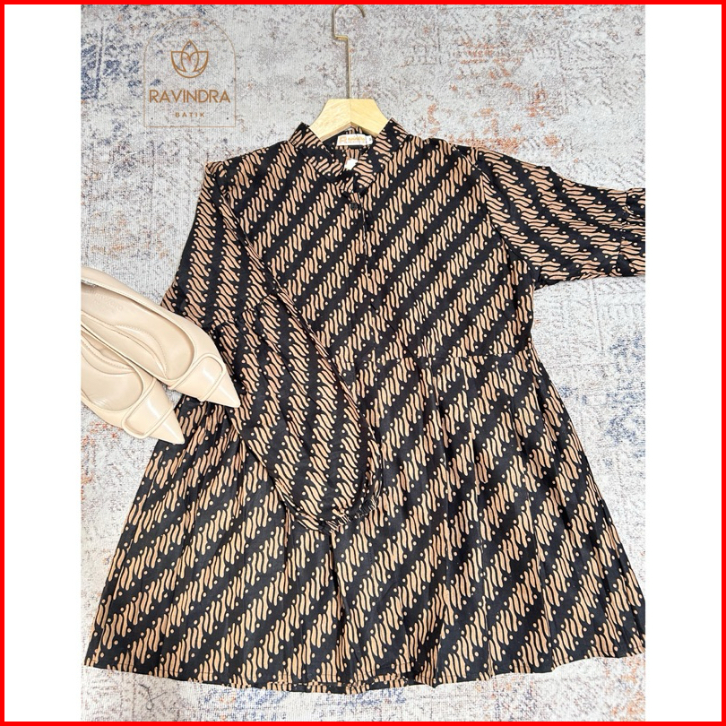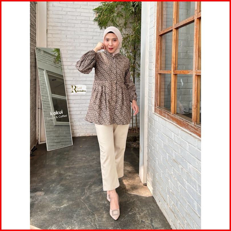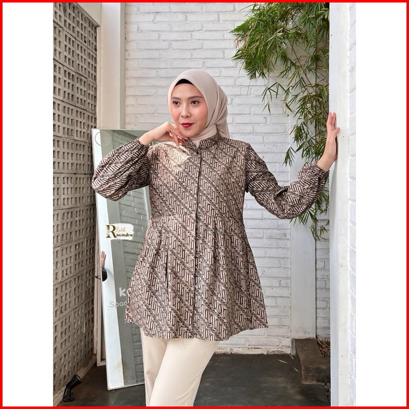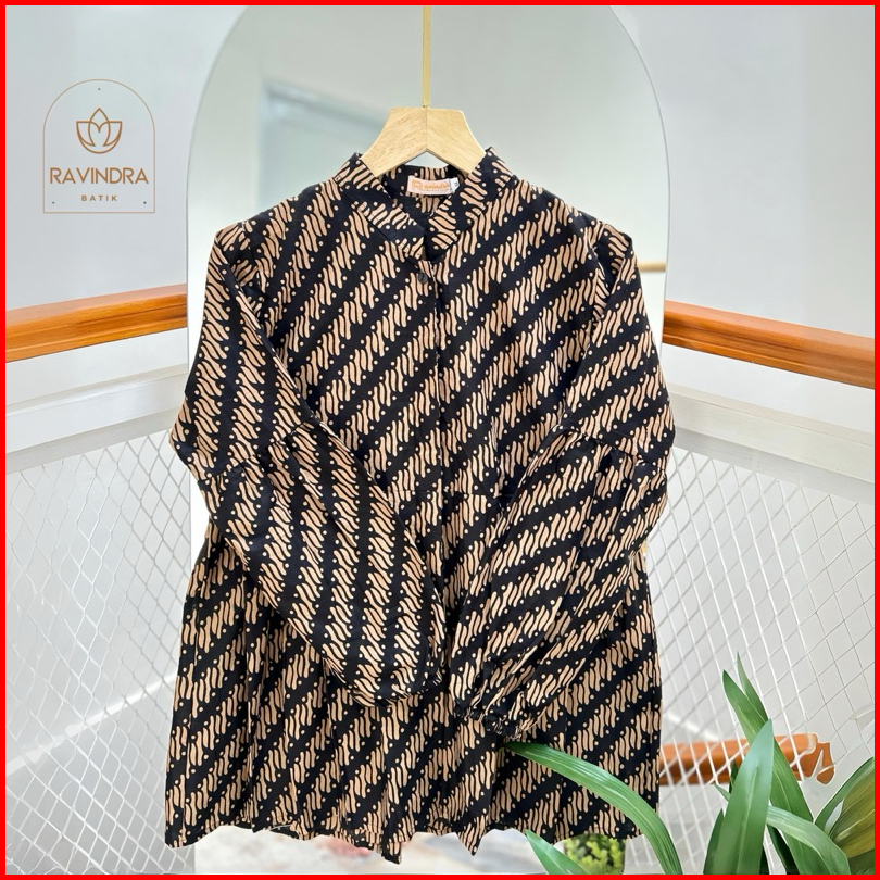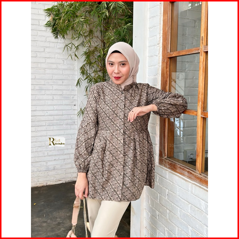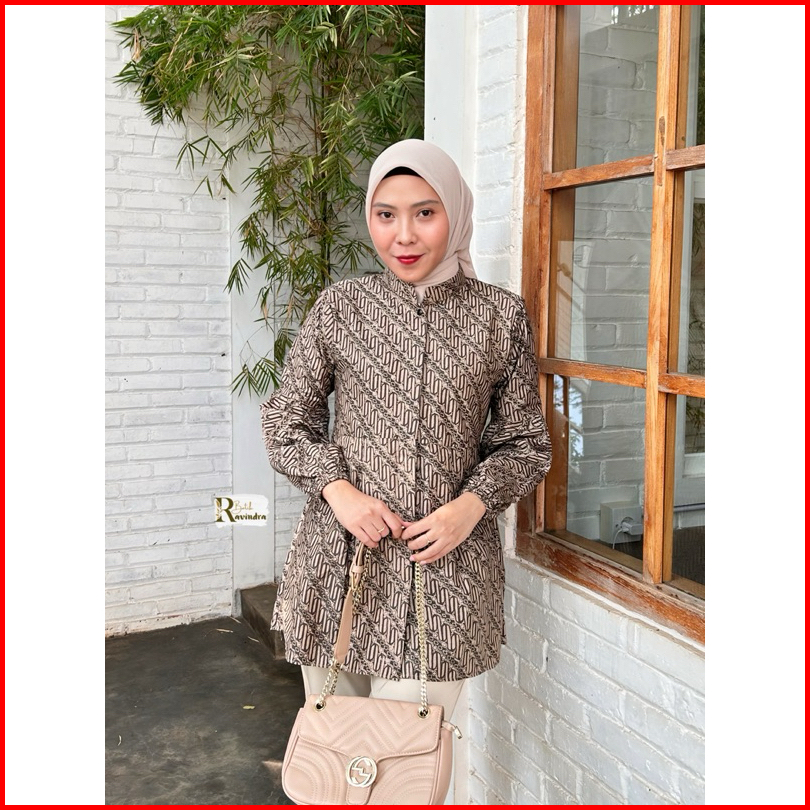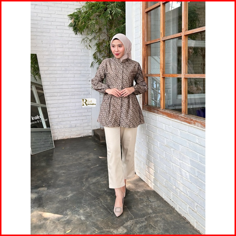 Batik Ravindra Blouse Sogan Coklat Kancing Depan