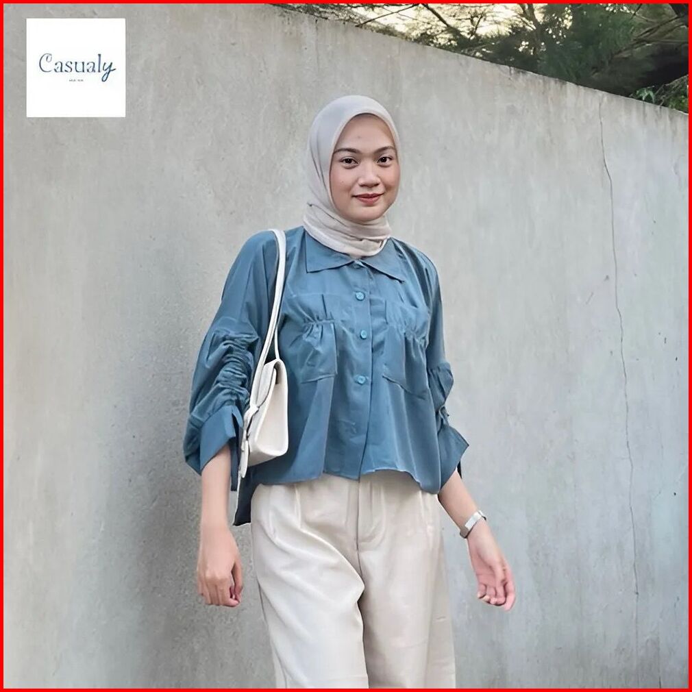 Casualy - Zizi Blouse Wanita Pocket Lengan Serut