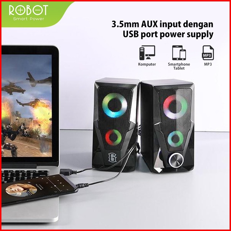 Speaker Aktif Speaker Gaming Pc Laptop Robot Rs200 3.5mm Aux With 2 Channel