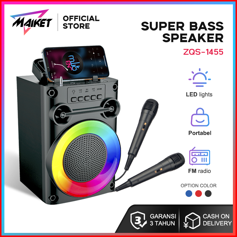 Maiket Speaker Bluetooth Karaoke 4 Inch 2 Mic Super Bass Protable Salon Aktif Bt Hi-fi Zqs1455