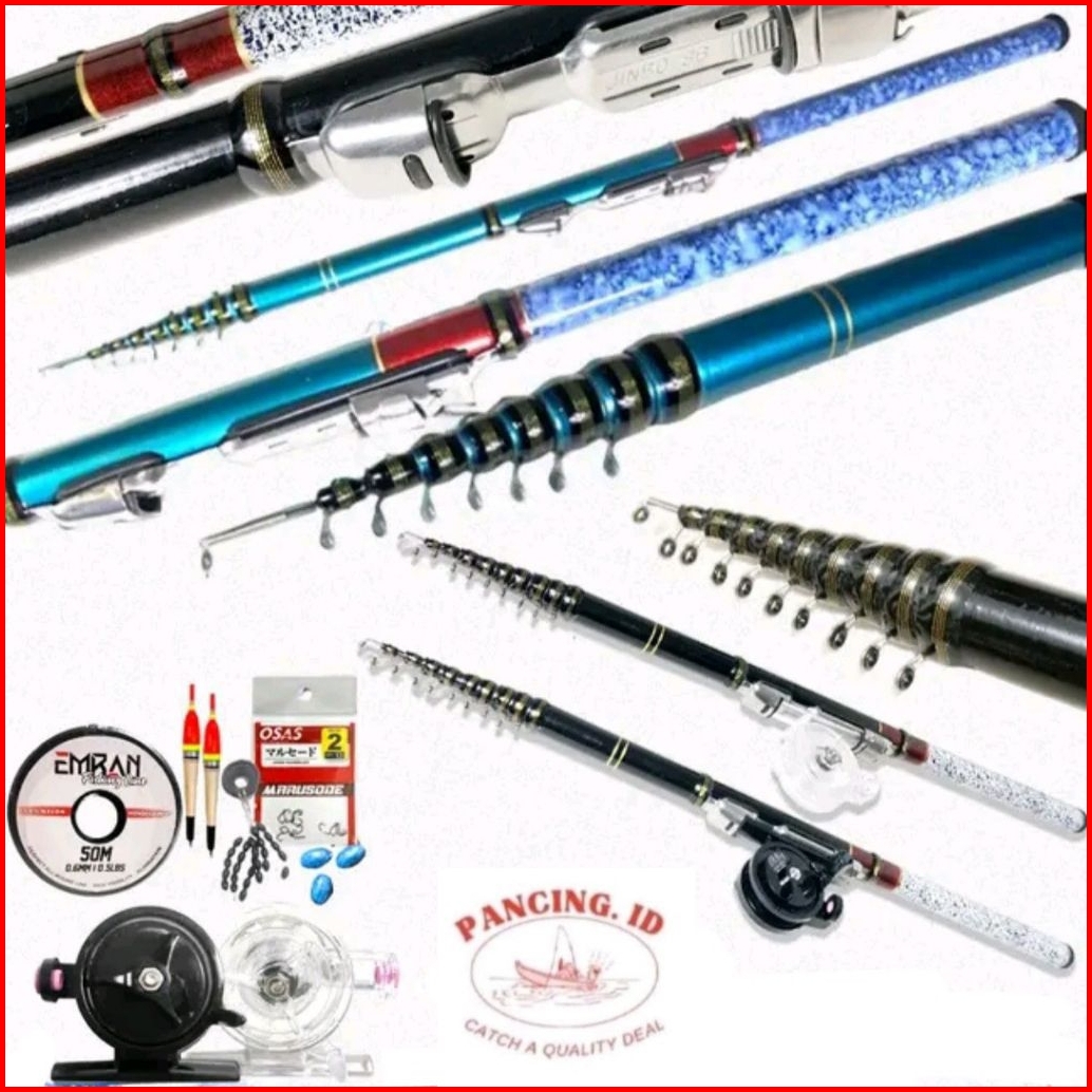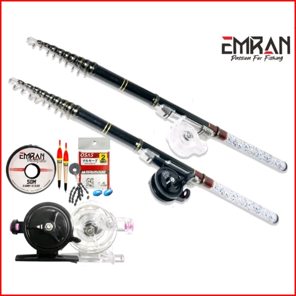 Sepaket Joran Tegek Set Kolong Emra Tjl Ruas Pendek Bahan Fiber Kuat Ringan Dan Reel Tokos Fx 45 Siap Pakai