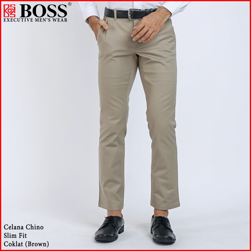 Boss Celana Panjang Chino Pria Slim Fit Coklat