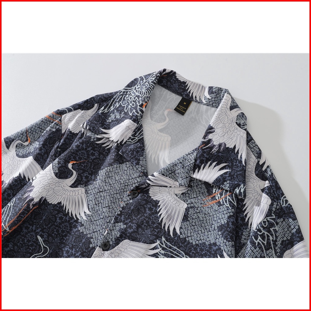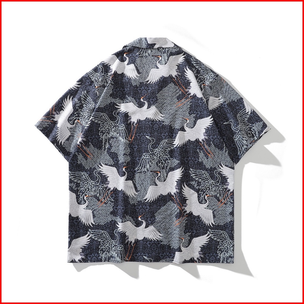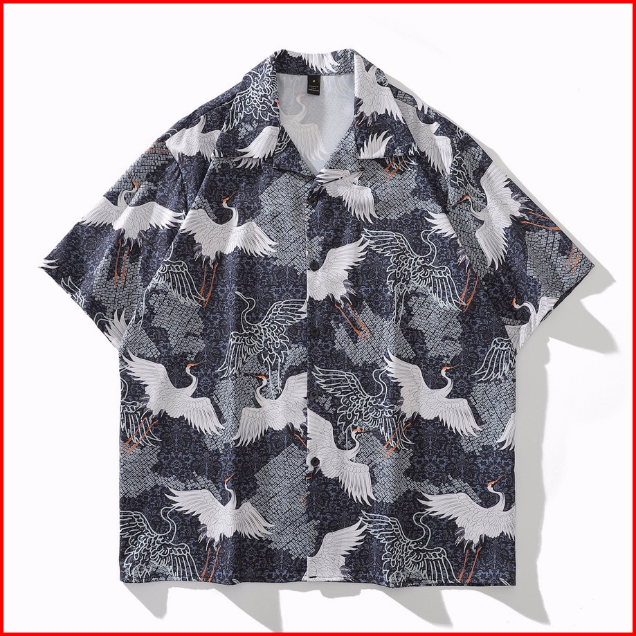 Dark Icon Full Printing Kemeja Hawaiian Pria Vintage Kasual Kemeja Lengan Pendek Motif