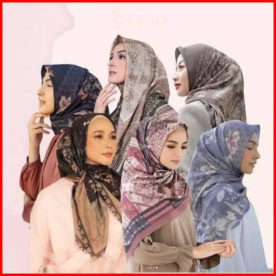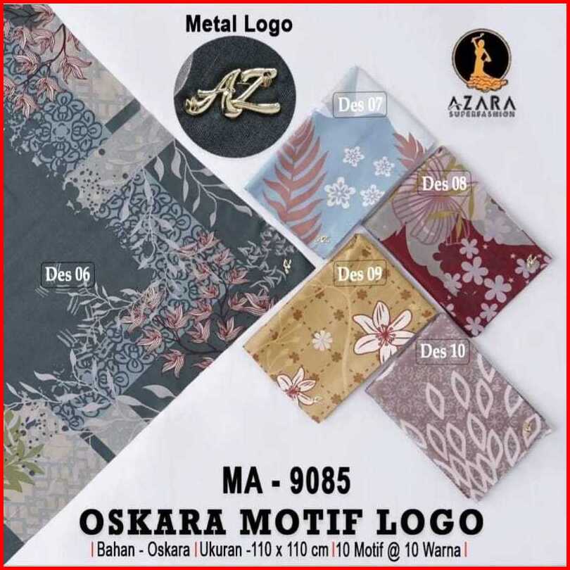 Paket 6pcs Jilbab Segi Empat Motif Azara Oscara Voal Metal Logo Laser Cut 110x110