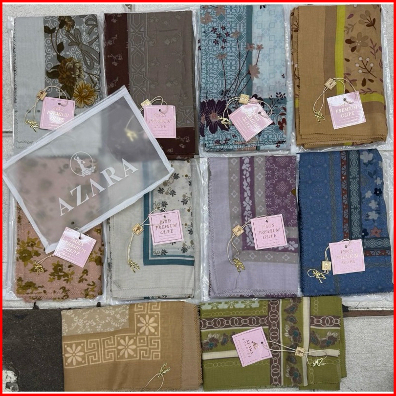 10pcs Paket Usaha Hijab Logo Metal Dengan Pouch Kerudung Segi Empat Voal Motif By Kuba Project