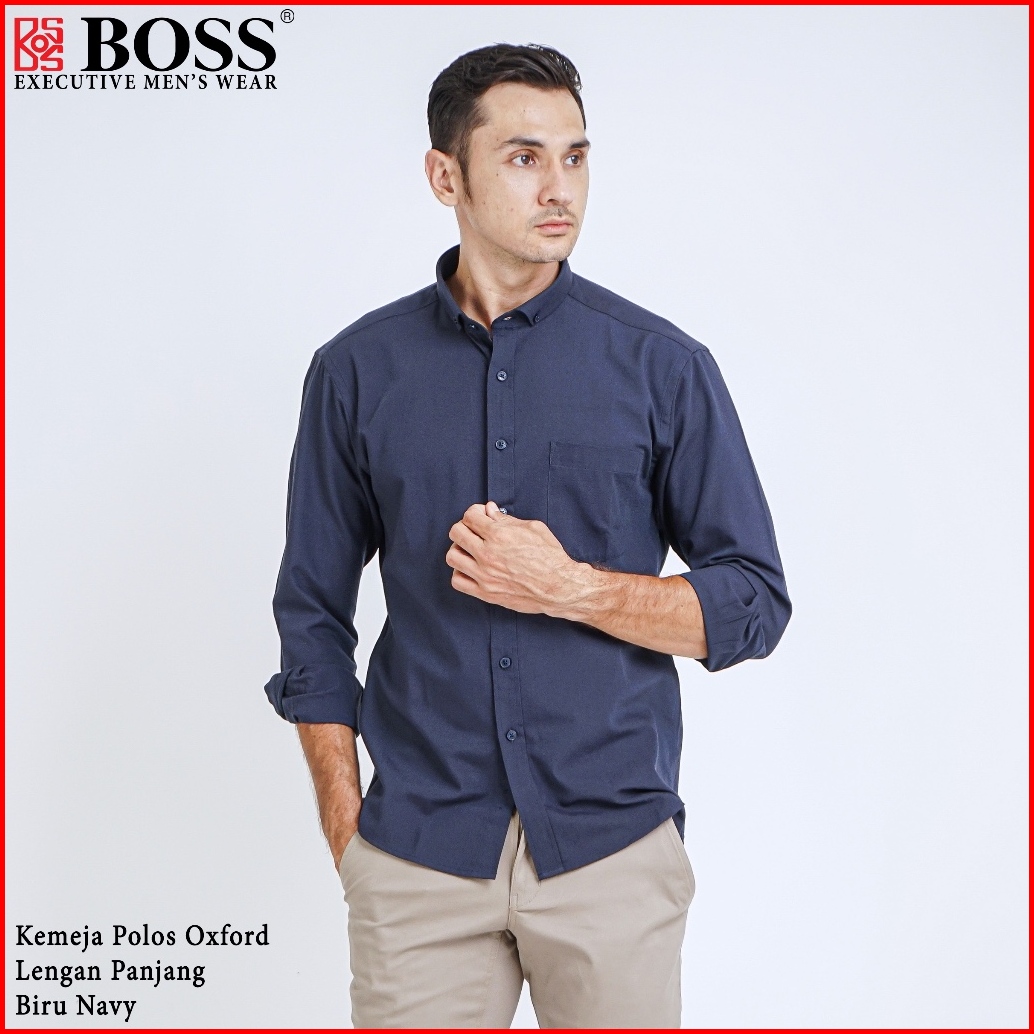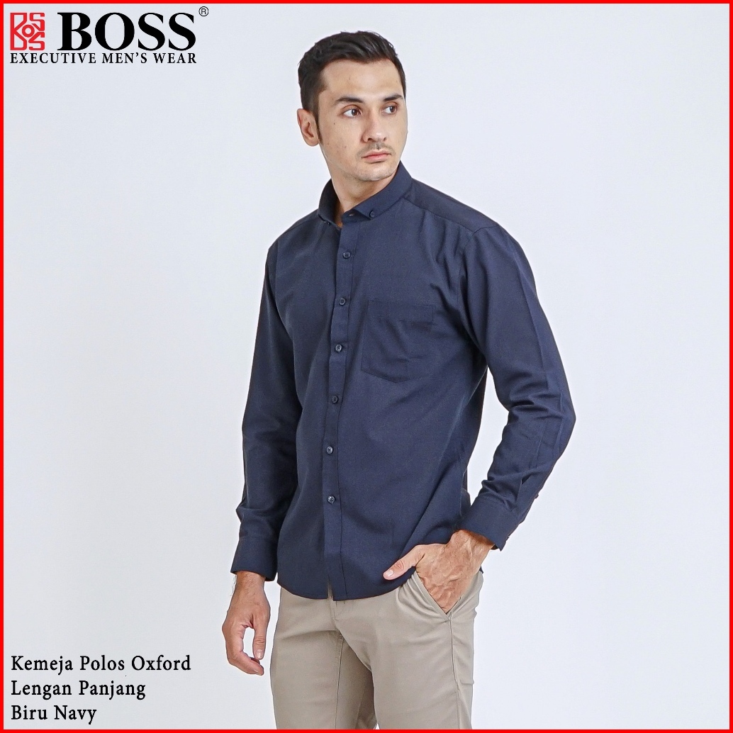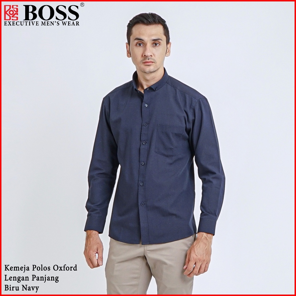Boss Kemeja Polos Basic Pria Oxford Cotton Lengan Panjang Slim Fit Oxk Biru Dark Navy