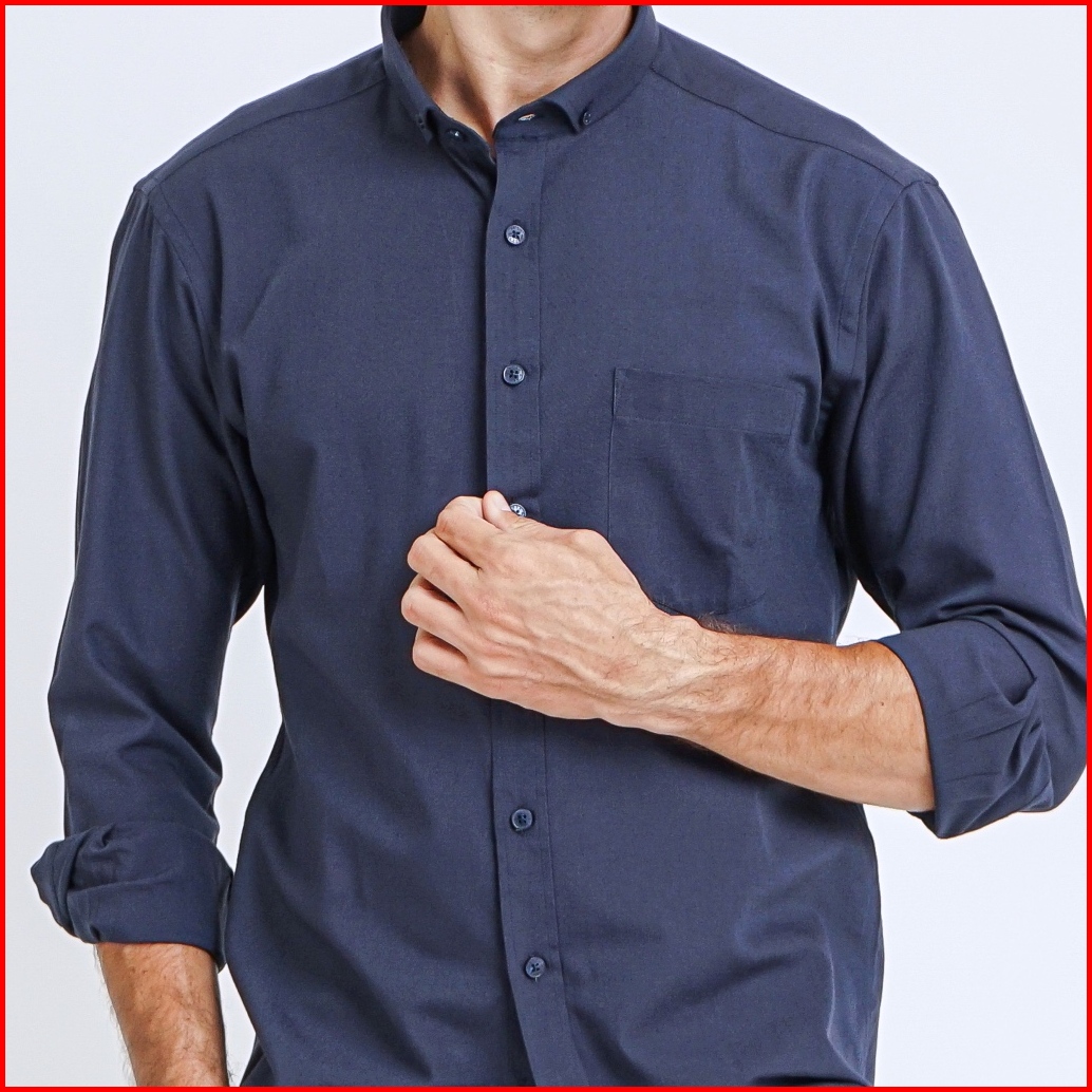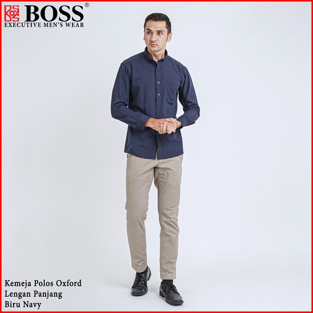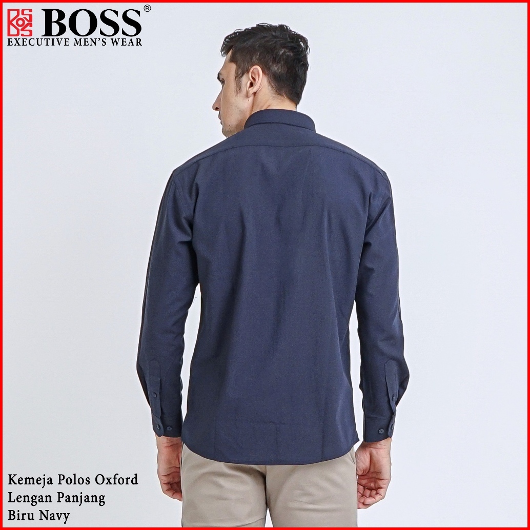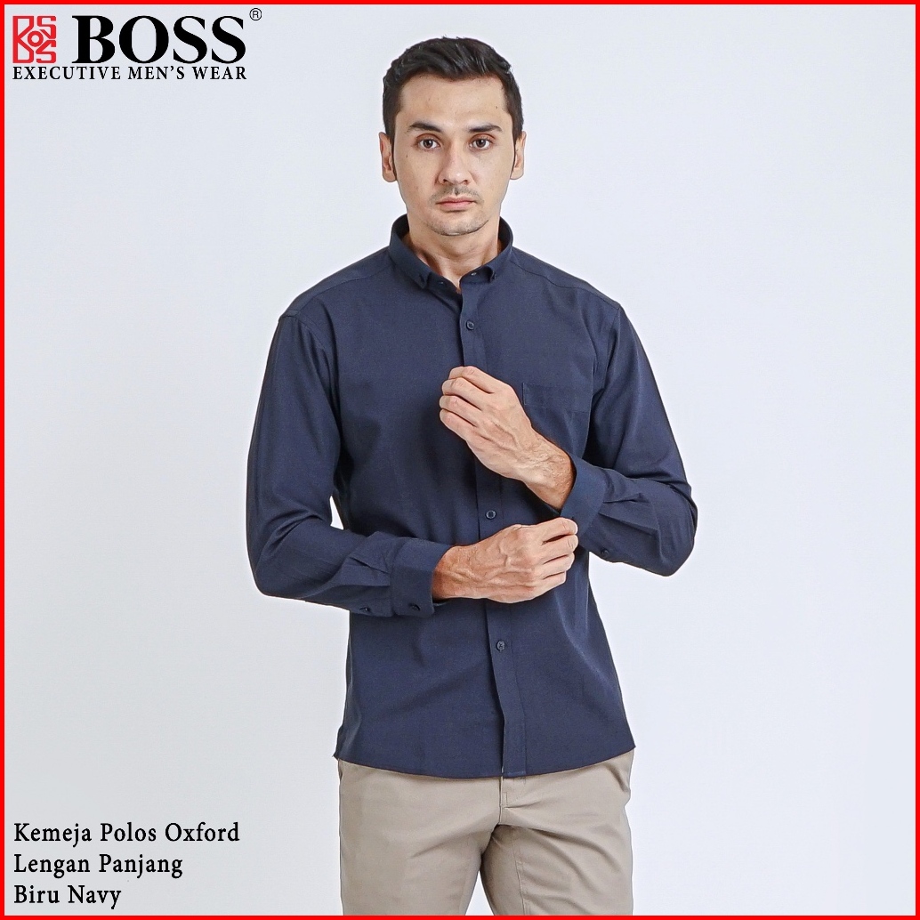 Boss Kemeja Polos Basic Pria Oxford Cotton Lengan Panjang Slim Fit Oxk Biru Dark Navy