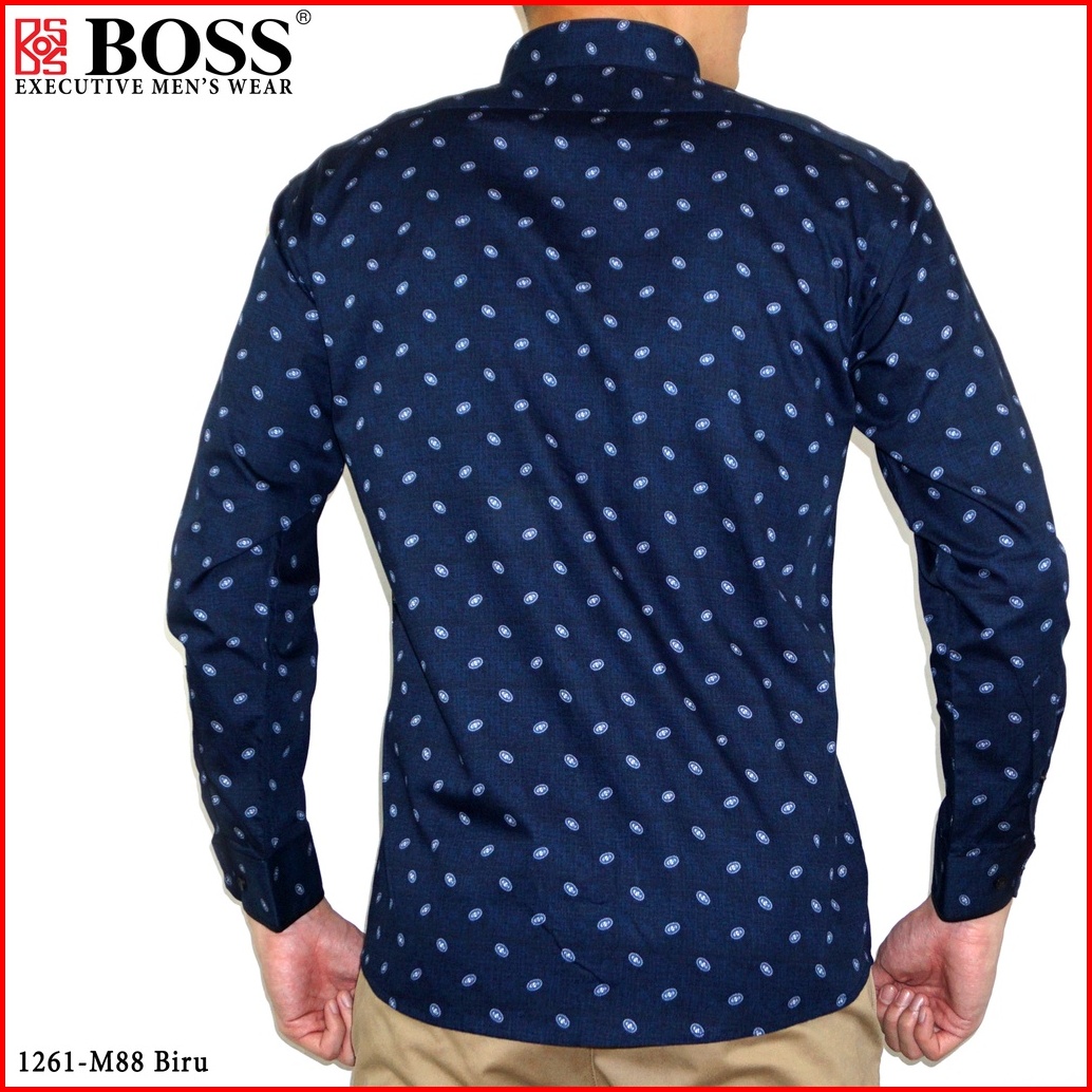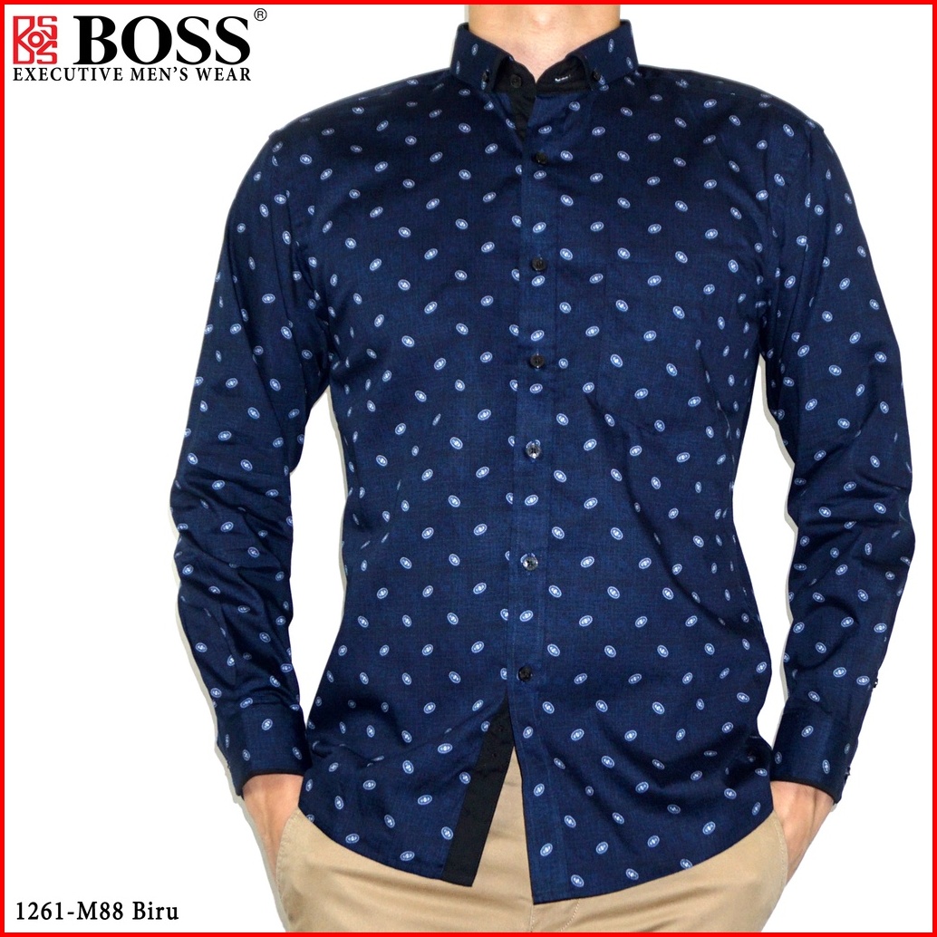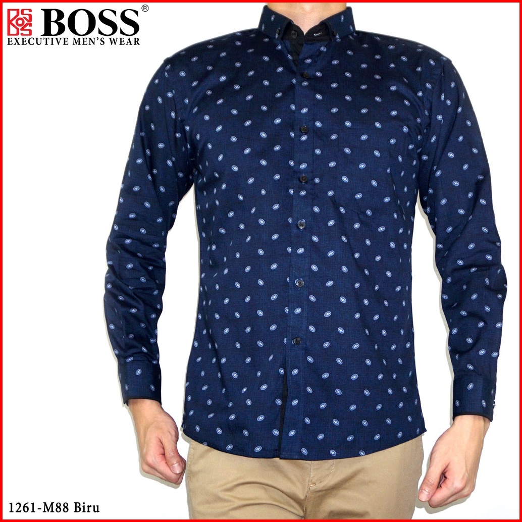 Boss Kemeja Motif Pria Lengan Panjang Slim Fit 1261