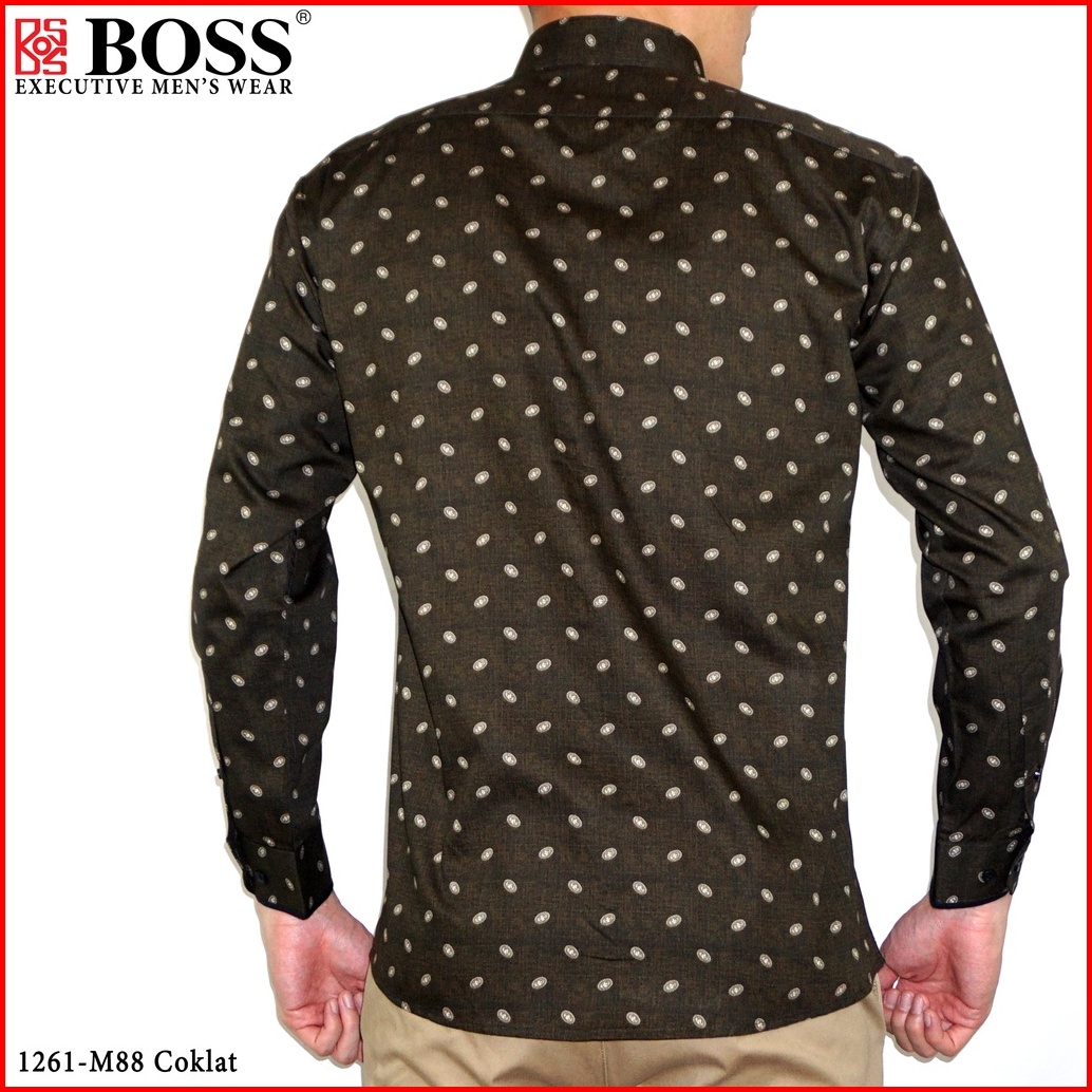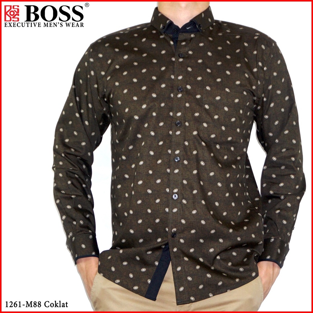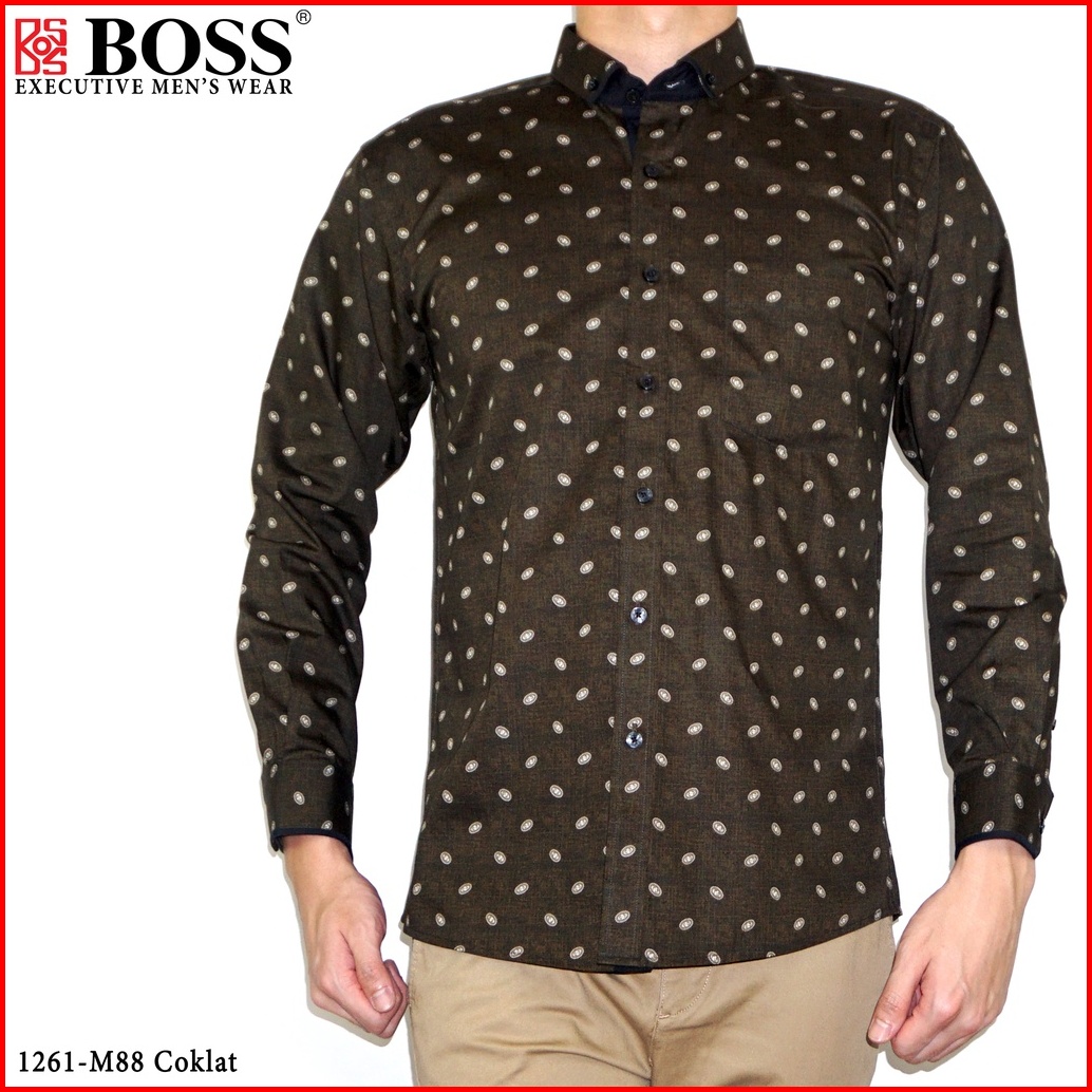 Boss Kemeja Motif Pria Lengan Panjang Slim Fit 1261