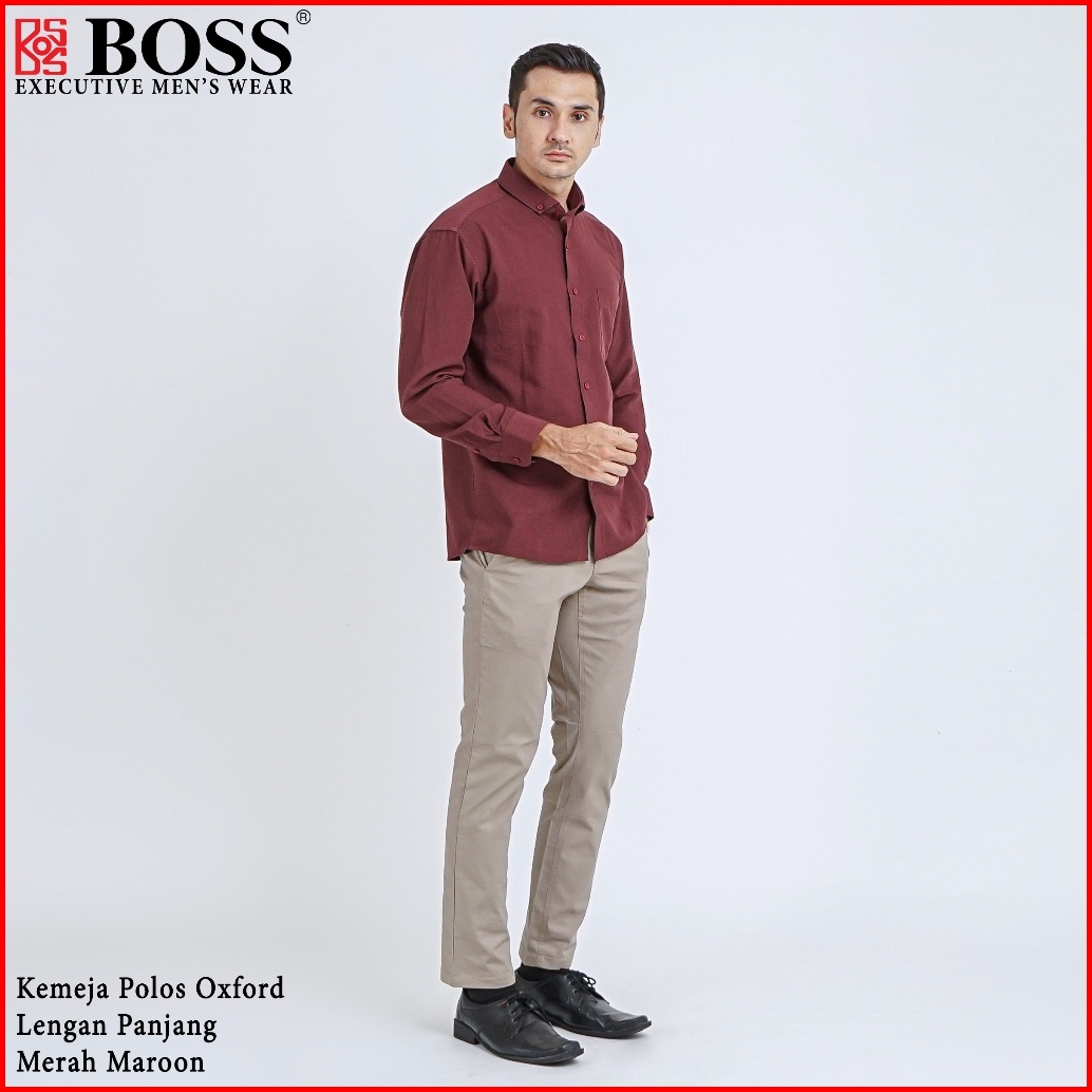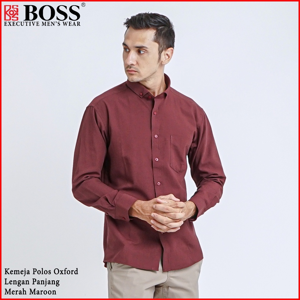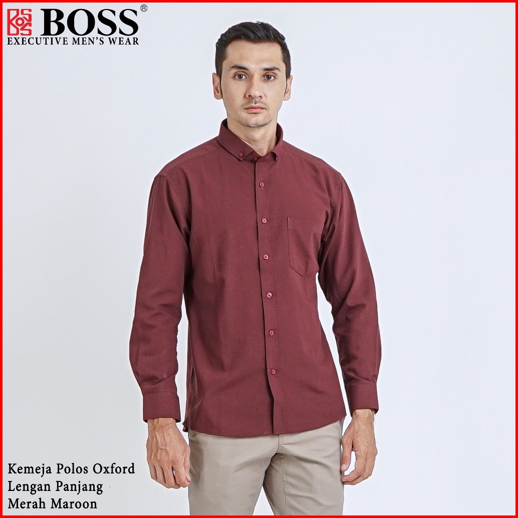 Boss Kemeja Polos Basic Pria Oxford Cotton Lengan Panjang Slim Fit Regular Fit Oxk Merah Maroon