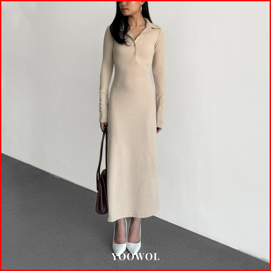 Yoowol Narrative Half Button Knit Dress Maxi Xs-xxl