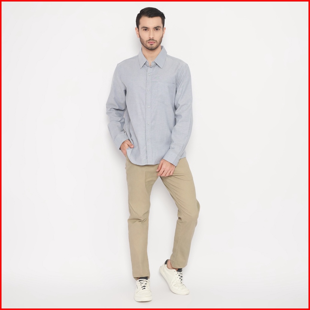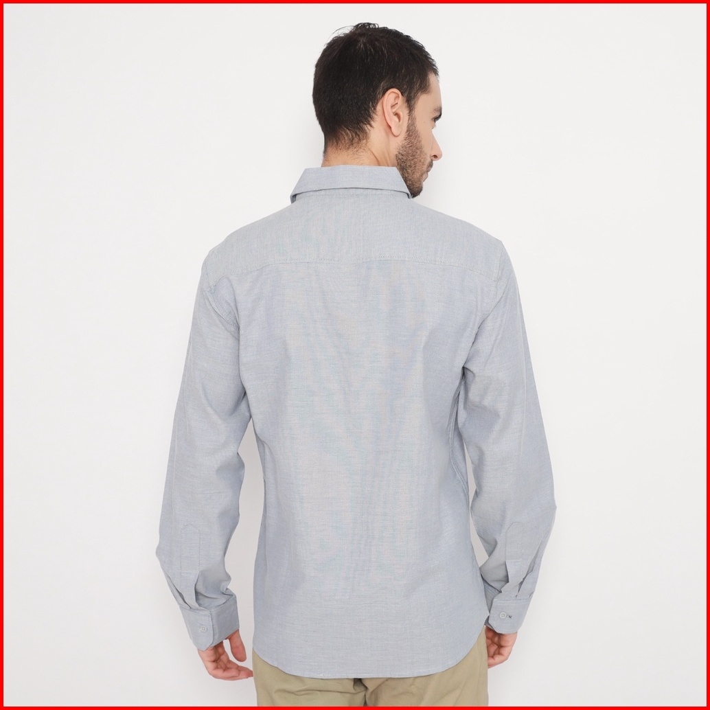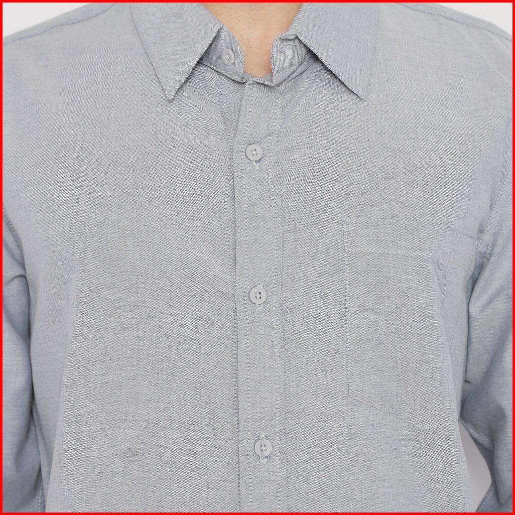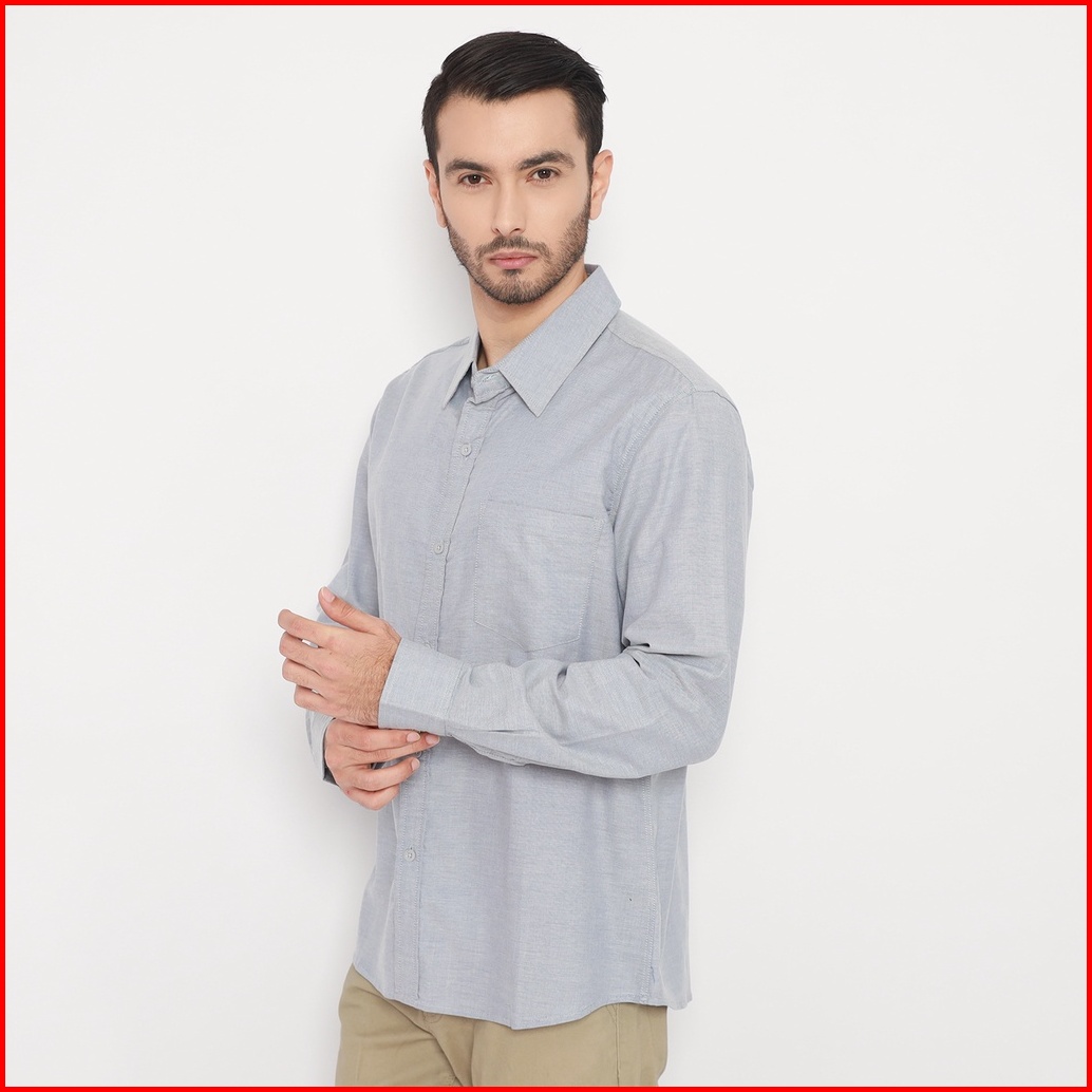 Fichino Kemeja Pria Basic Polos Lengan Panjang Abu Muda