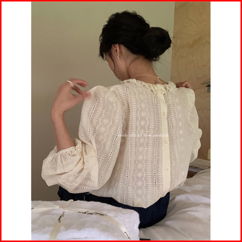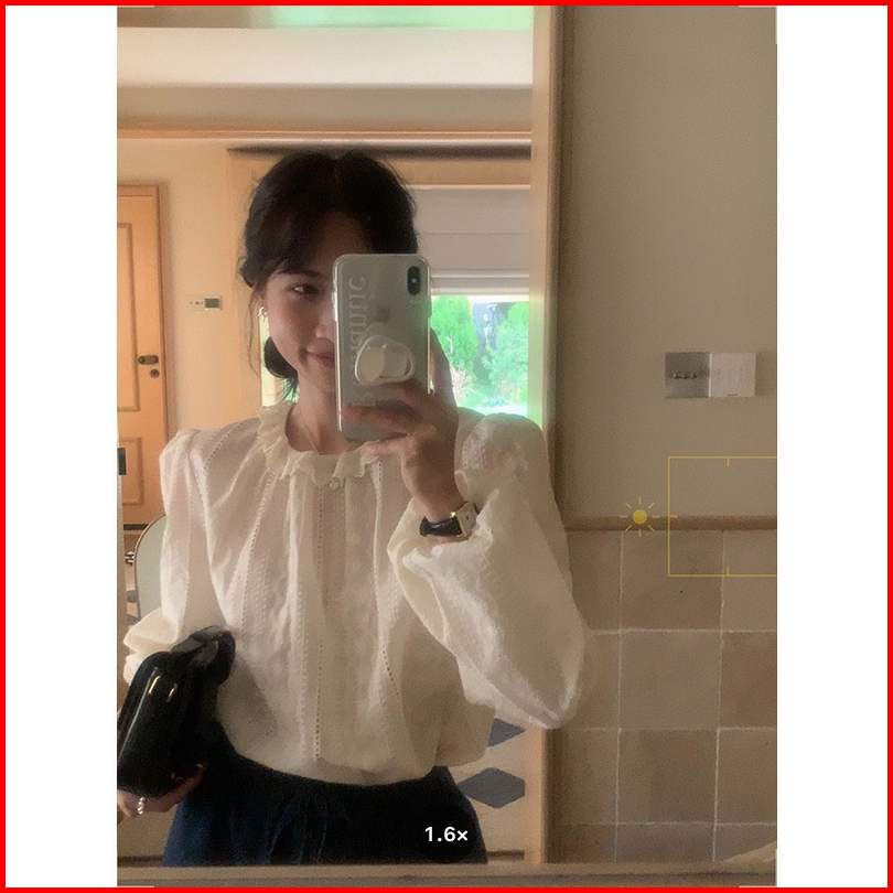 Lady Blouse Putih Lengan Panjang Renda Korea Style