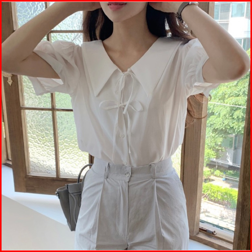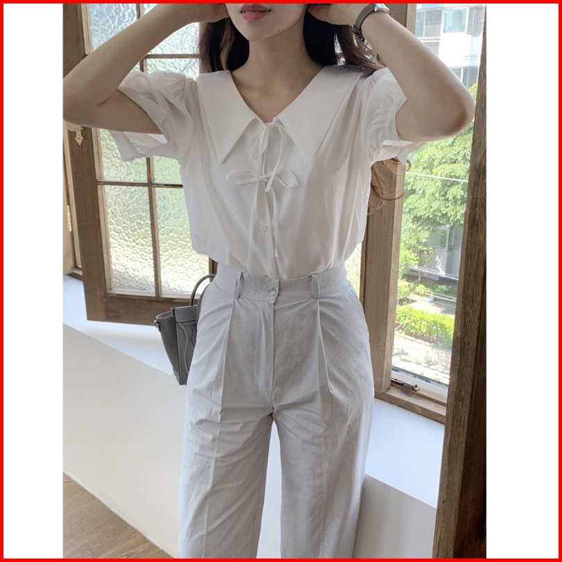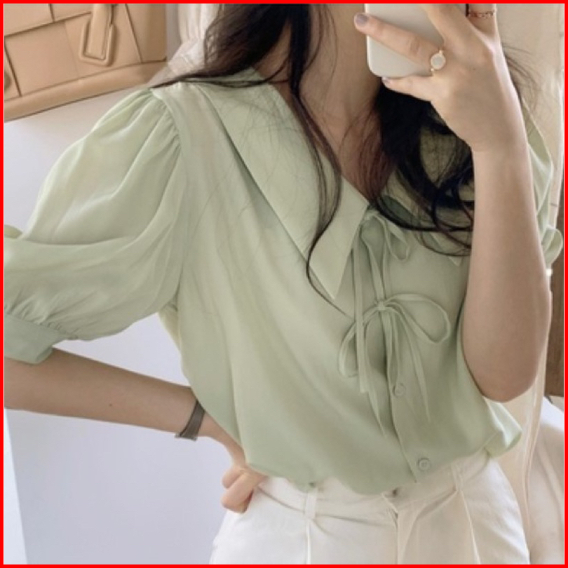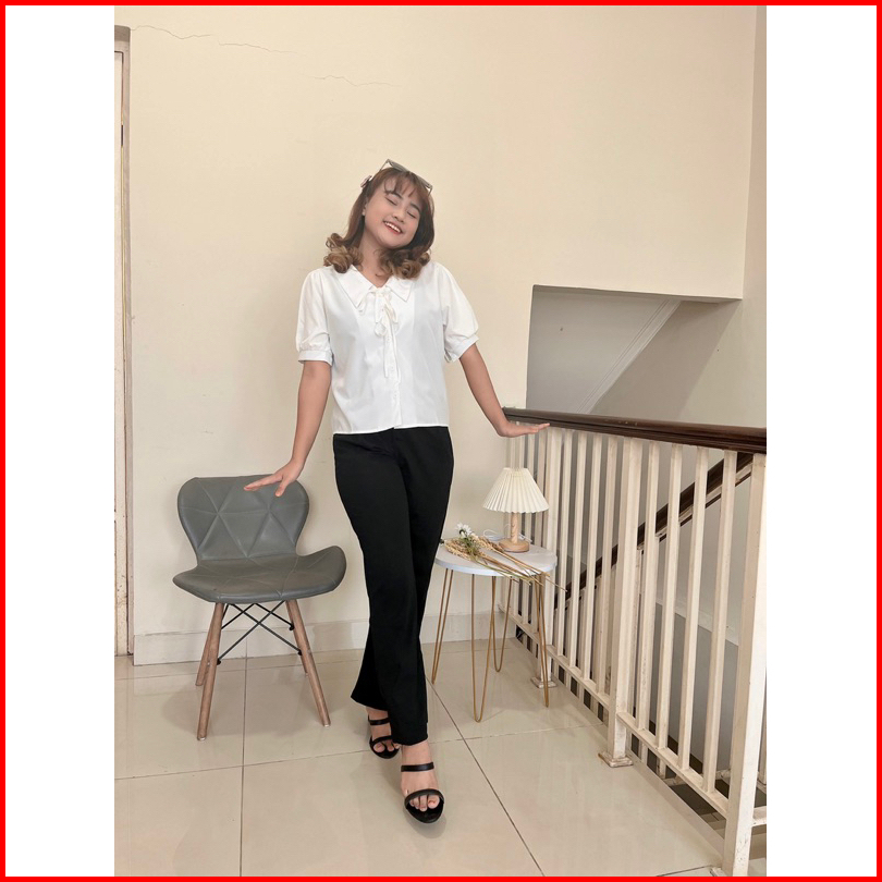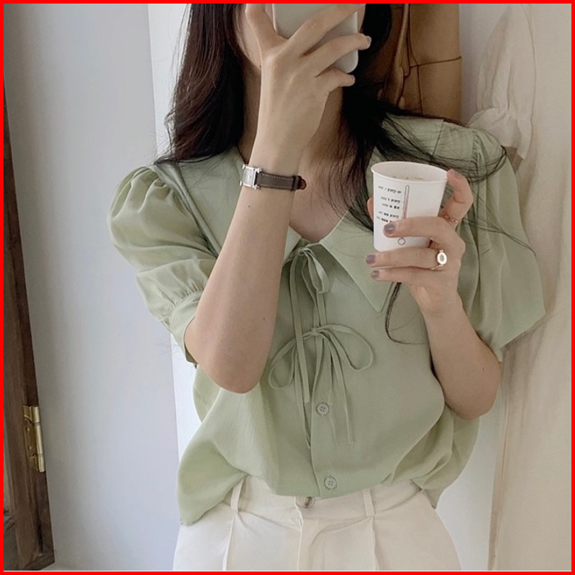 Tera Blouse Wanita Lengan Pendek Pita Kancing Korea Style