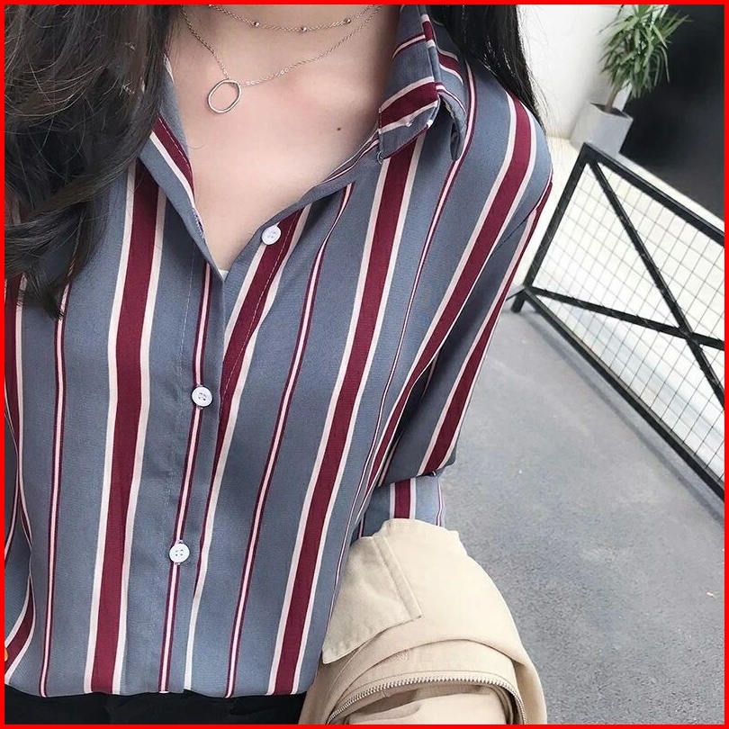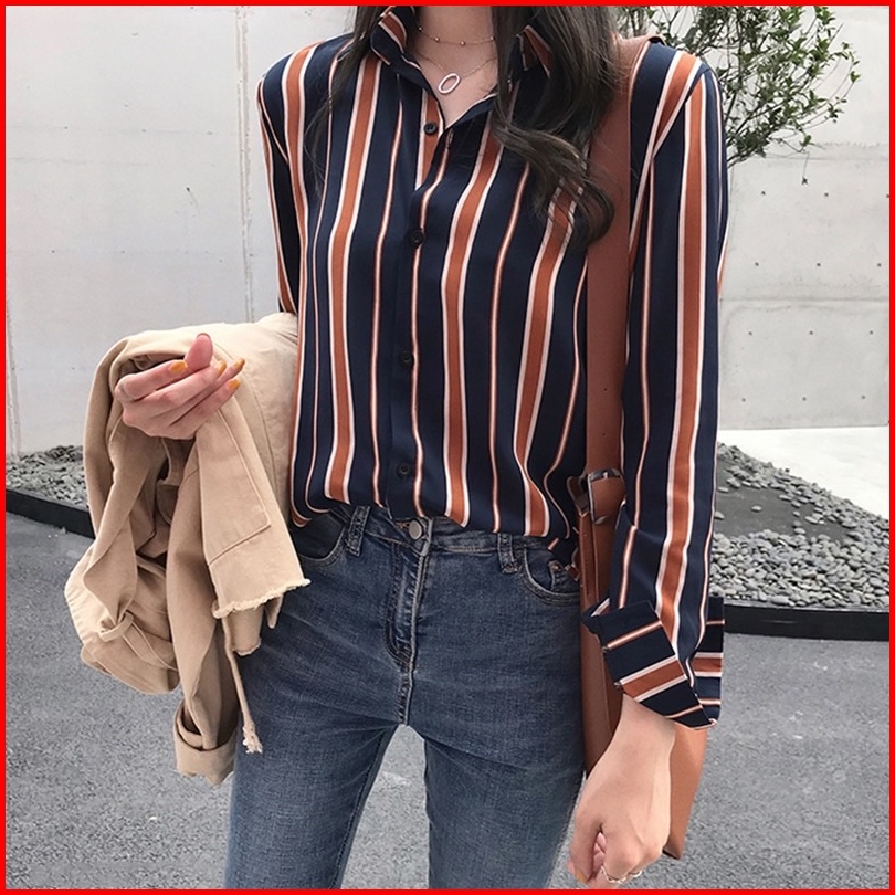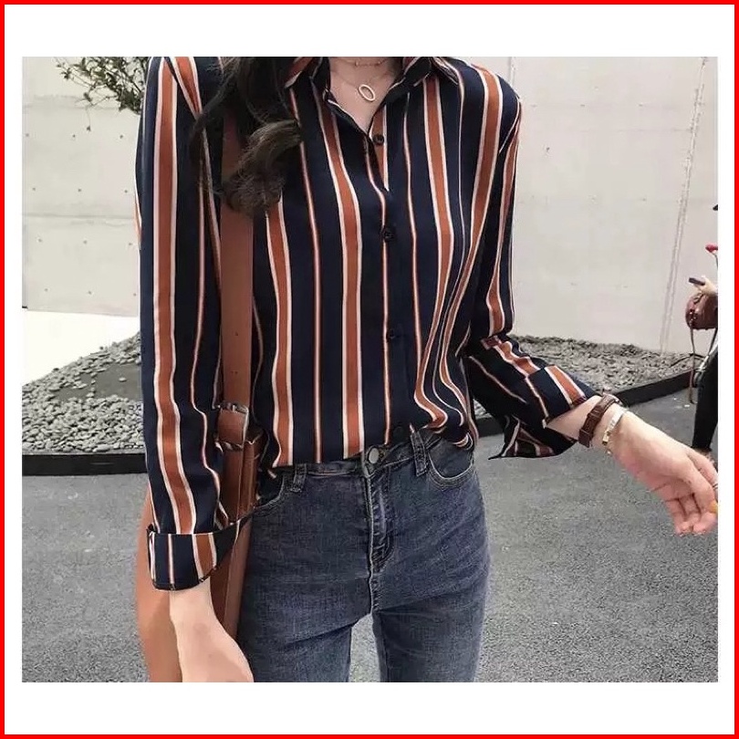 Jinnie Kemeja Garis Lengan Panjang Korea