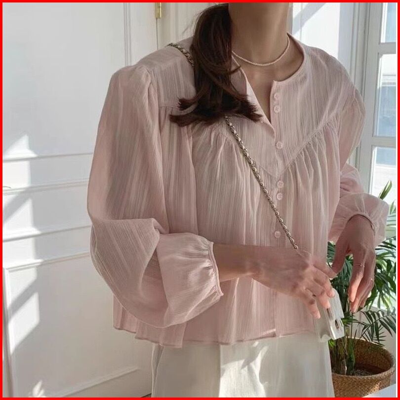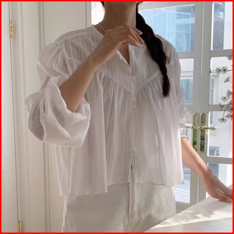 Illy Blouse Atasan Wanita Lengan Panjang Hijab Friendly Polos Plisket