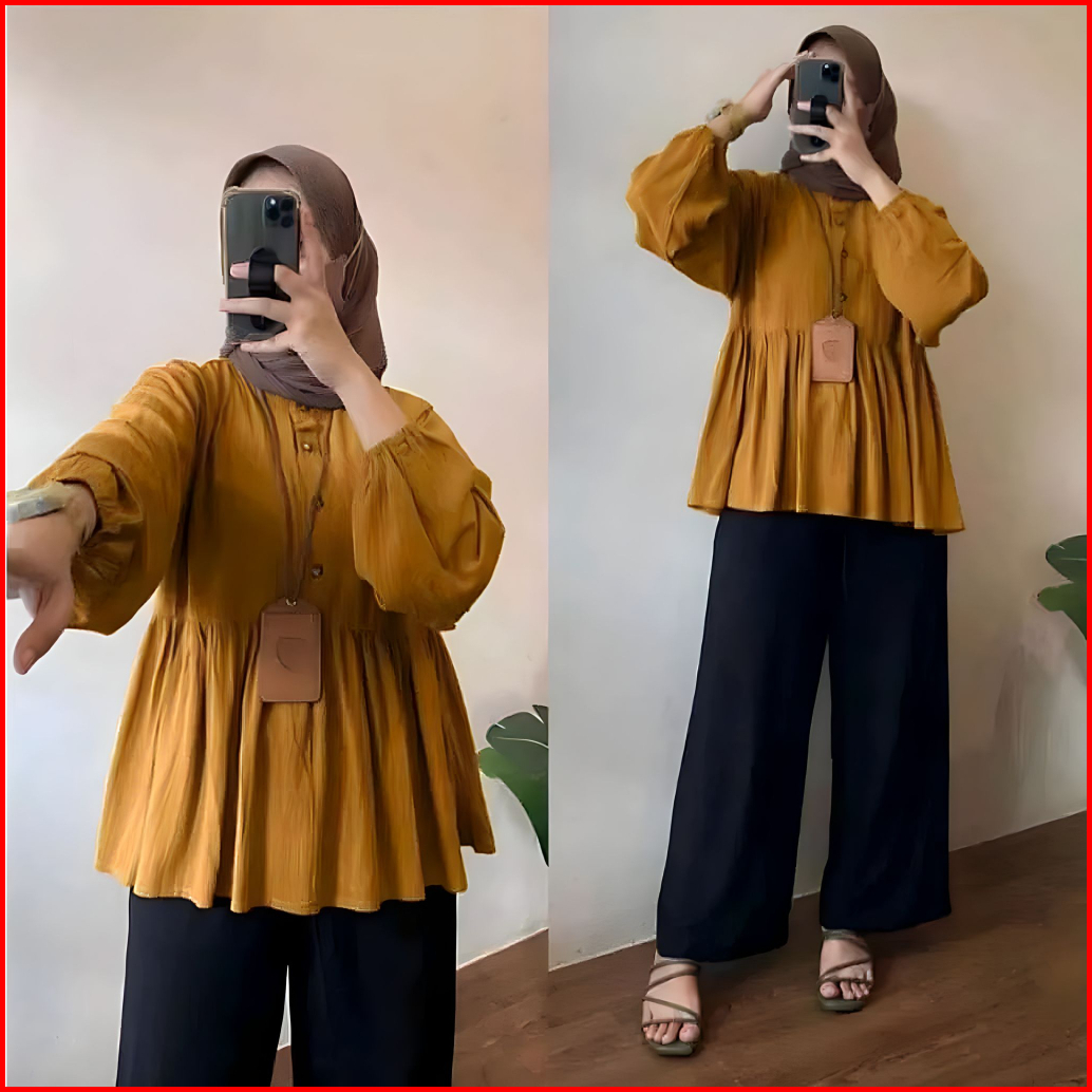 Rania Blouse Bahan Cringkle Airflow Premium Kemeja Cringkle Atasan Wanita
