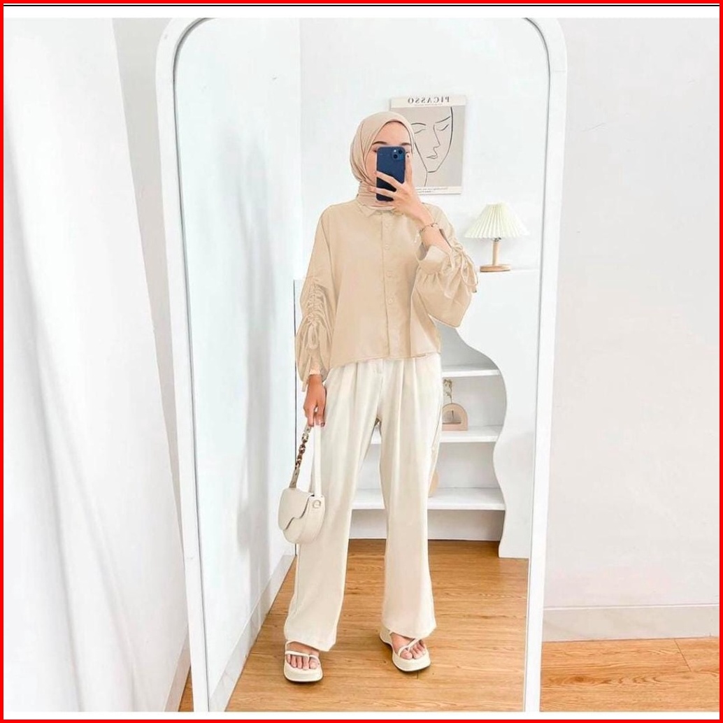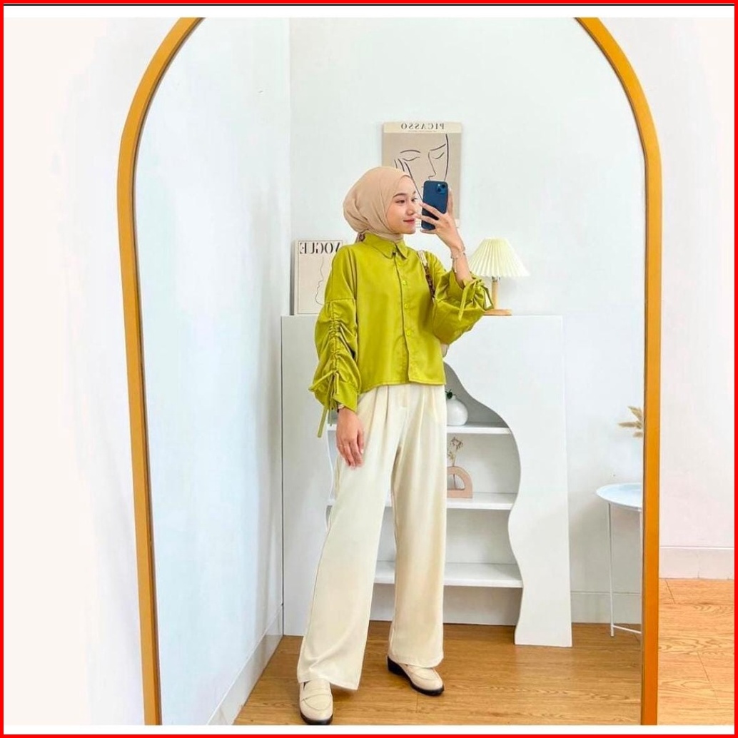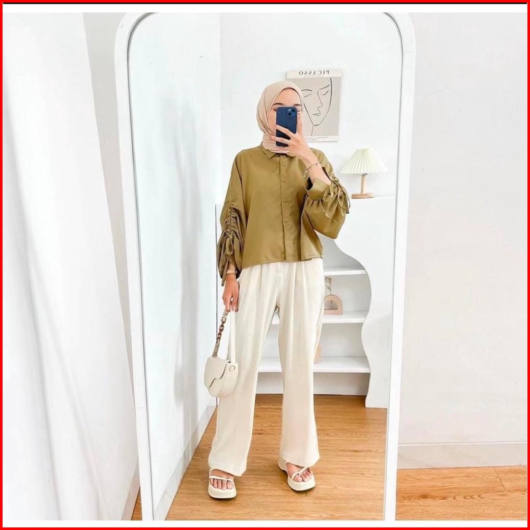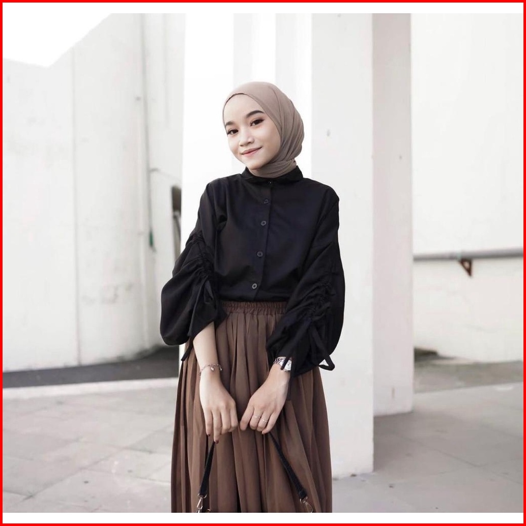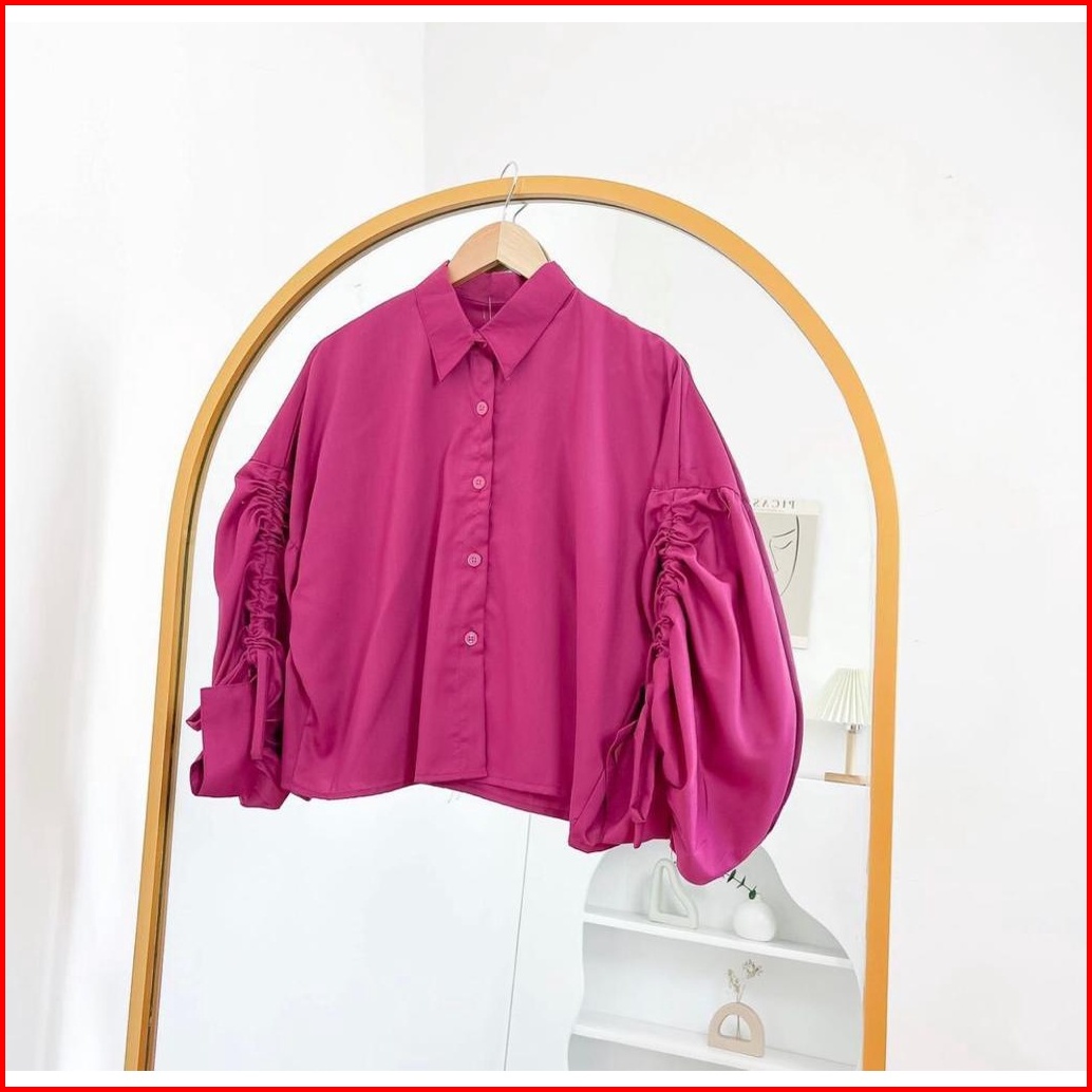 Kemeja Lengan Balon Serut Toyobo Lora Rona Blouse Baju Lengan Serut Blouse Serut