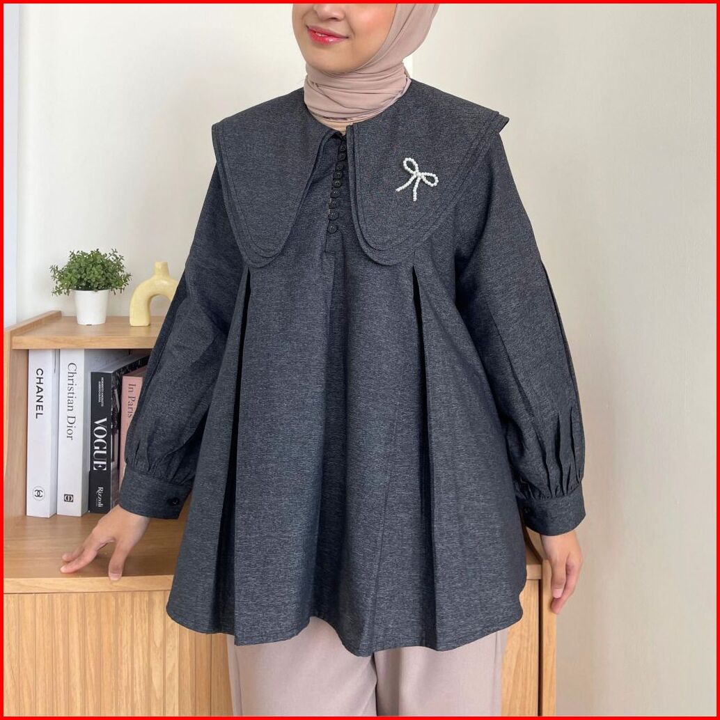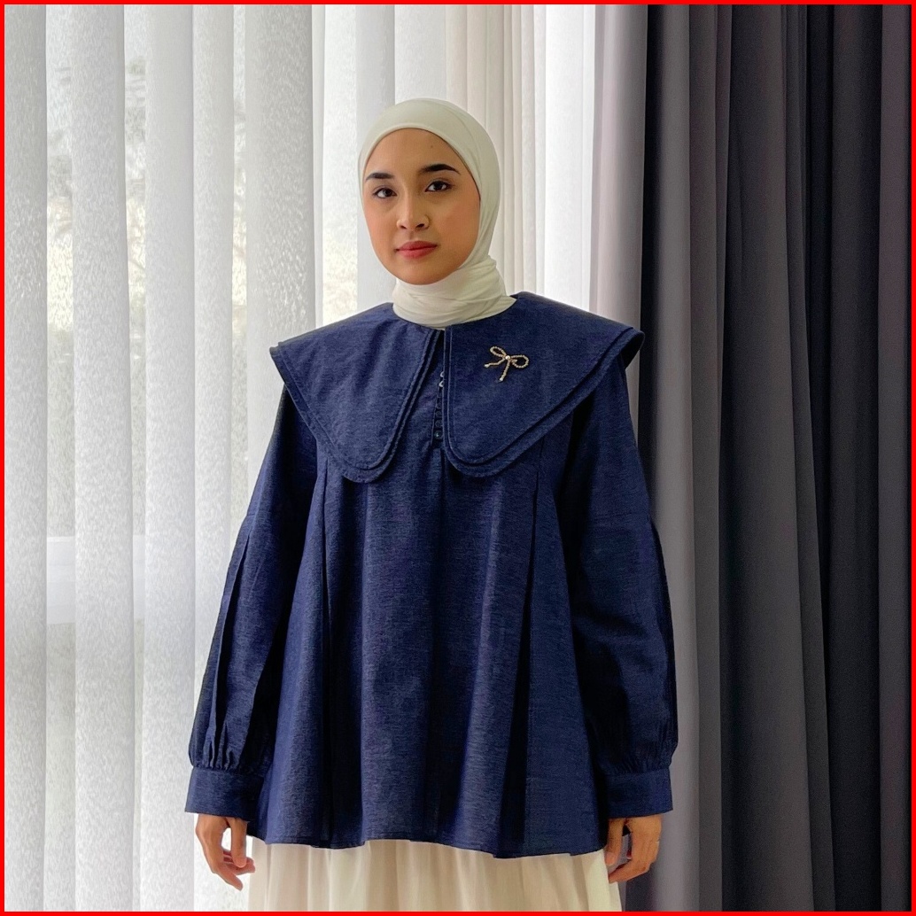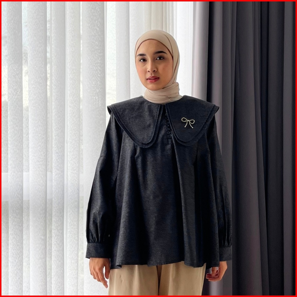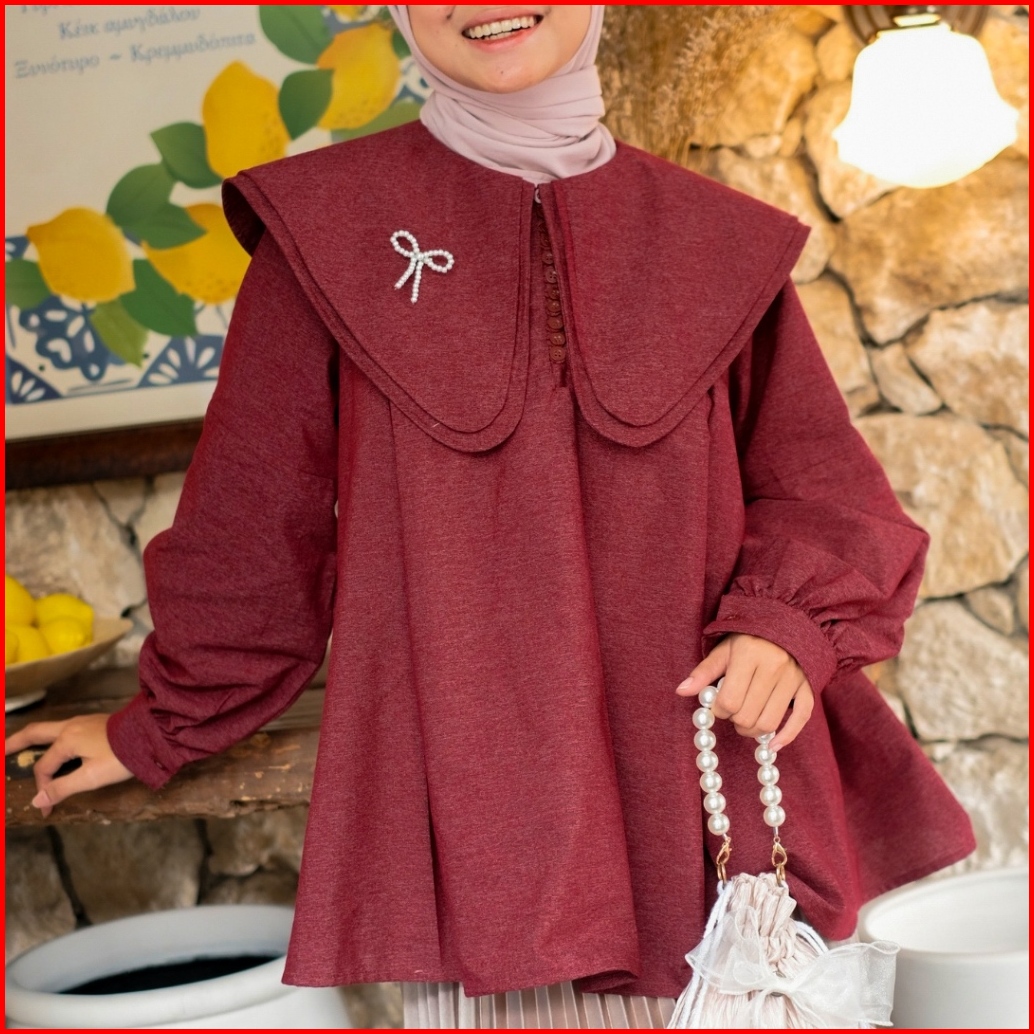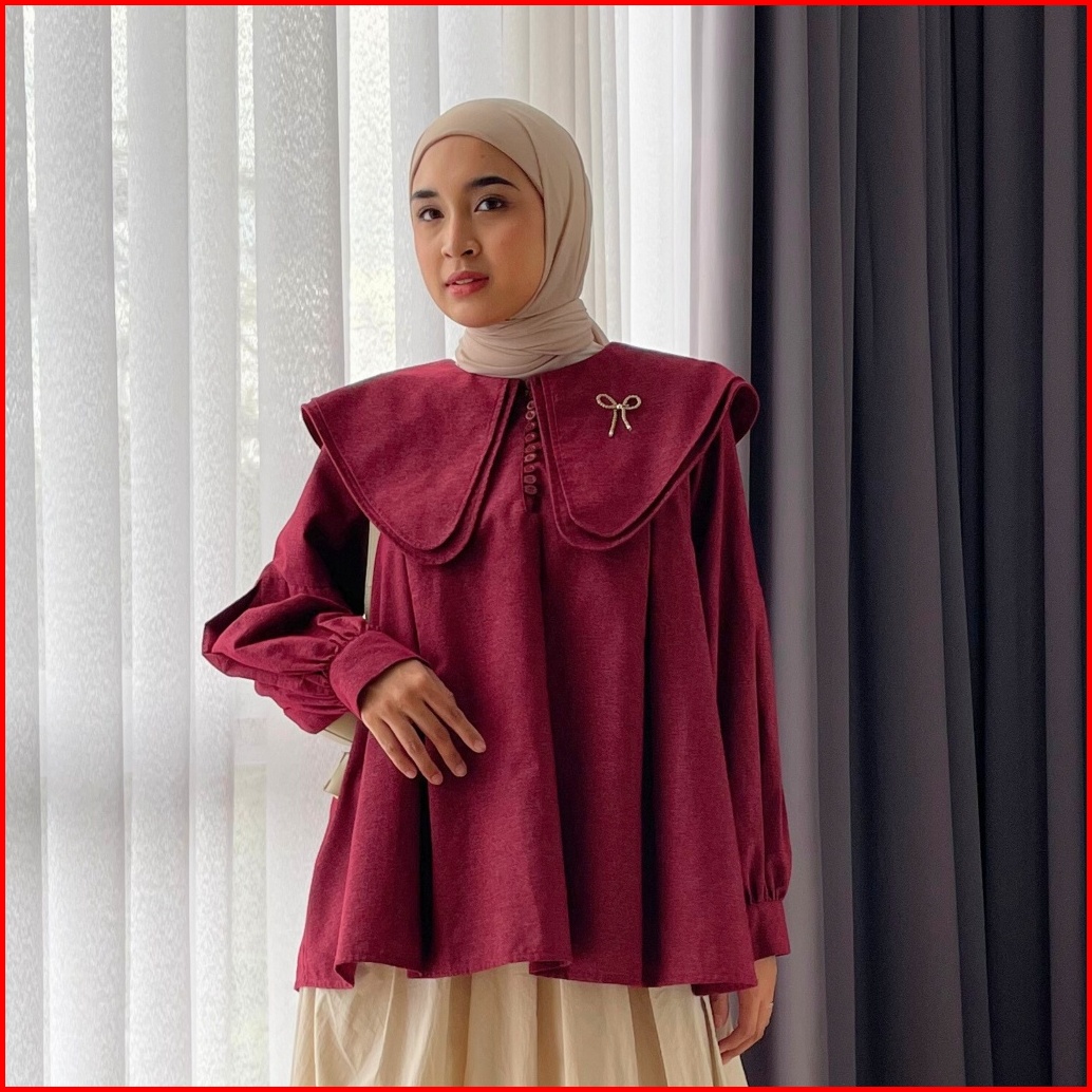 Eclemix Top Numa Atasan Wanita Blouse Kerah Tumpuk