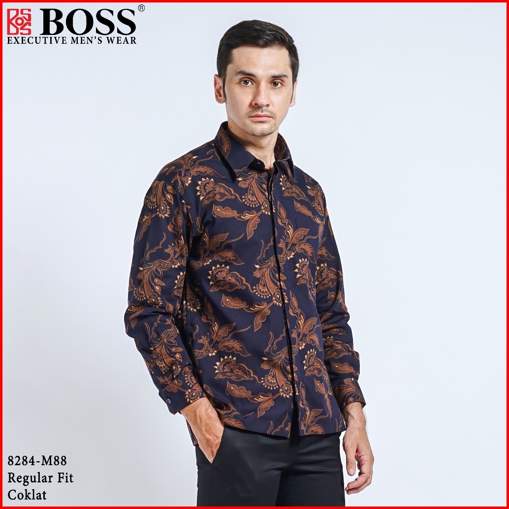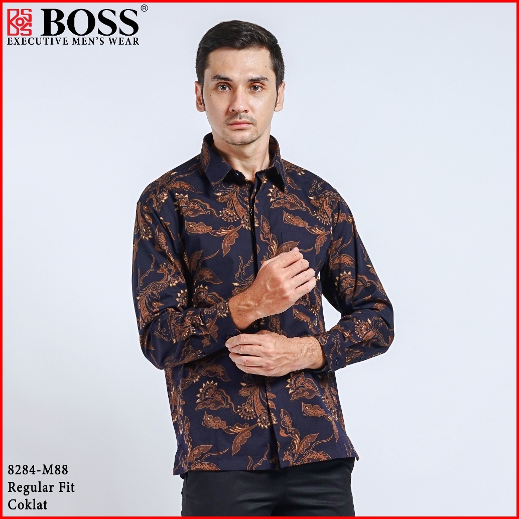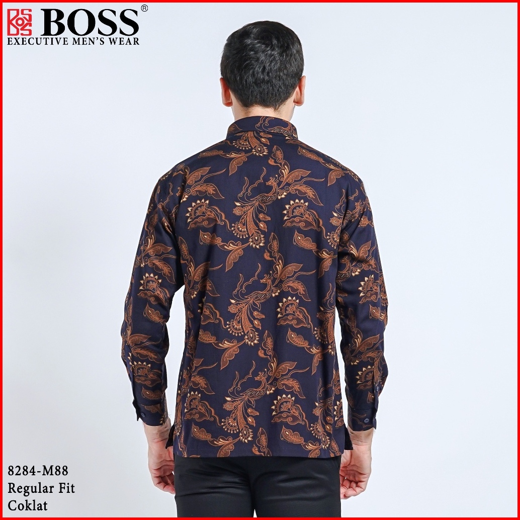 Boss Kemeja Batik Pria Lengan Panjang Regular Fit 8284 Coklat