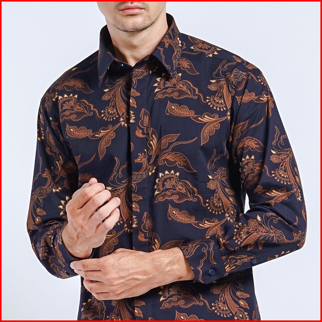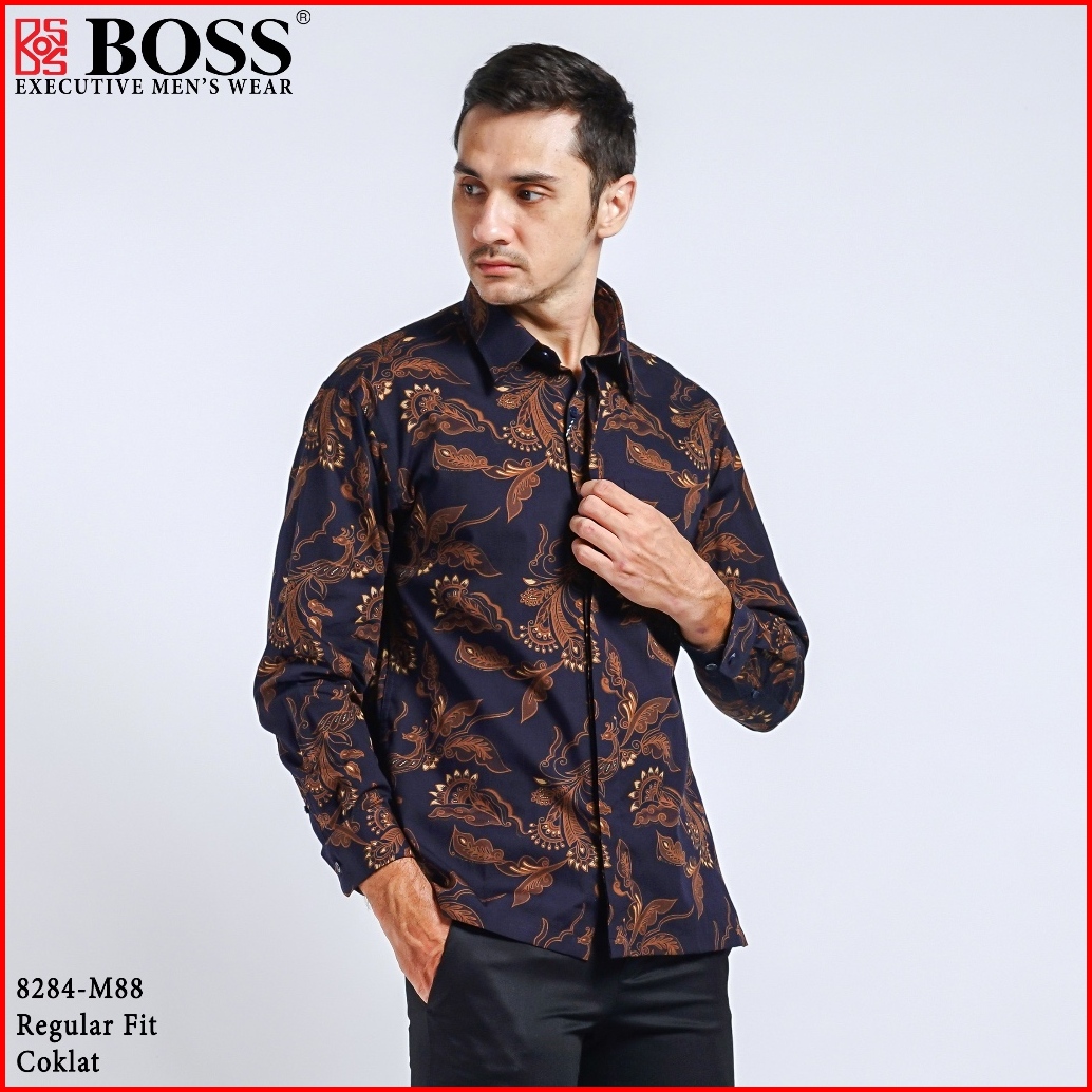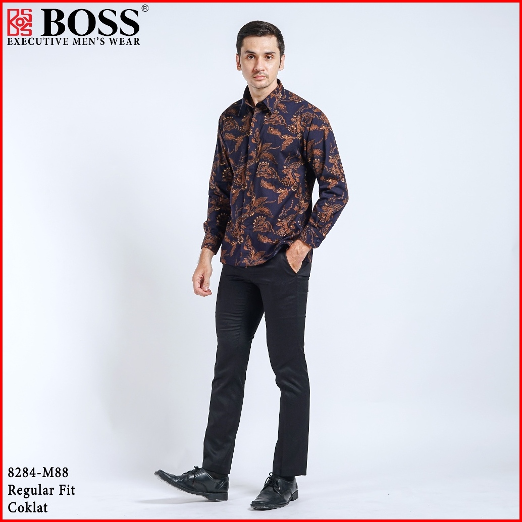 Boss Kemeja Batik Pria Lengan Panjang Regular Fit 8284 Coklat
