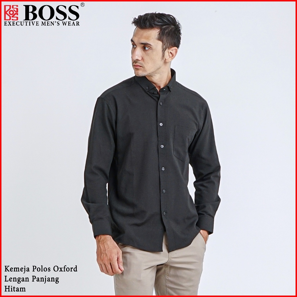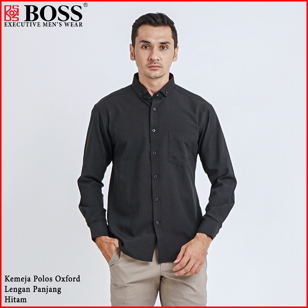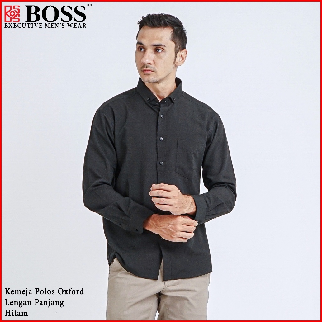 Boss Kemeja Polos Basic Pria Oxford Cotton Lengan Panjang Slim Fit Oxk Hitam