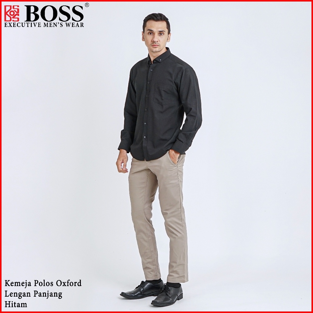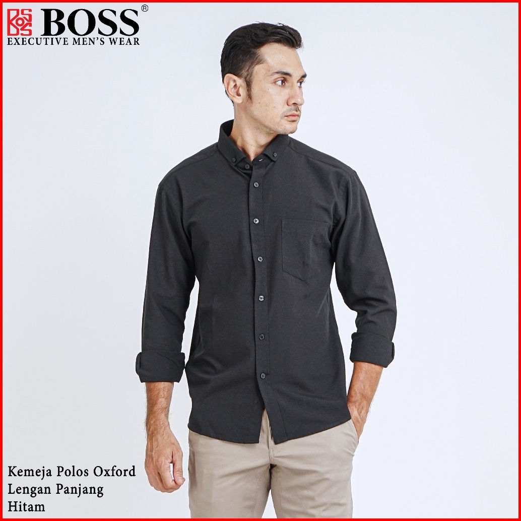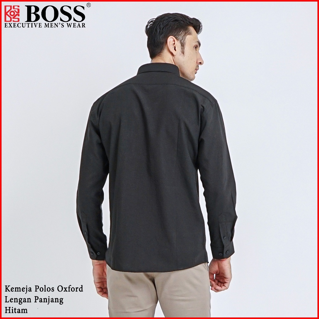 Boss Kemeja Polos Basic Pria Oxford Cotton Lengan Panjang Slim Fit Oxk Hitam