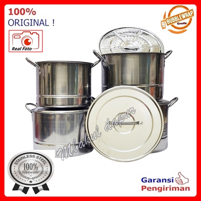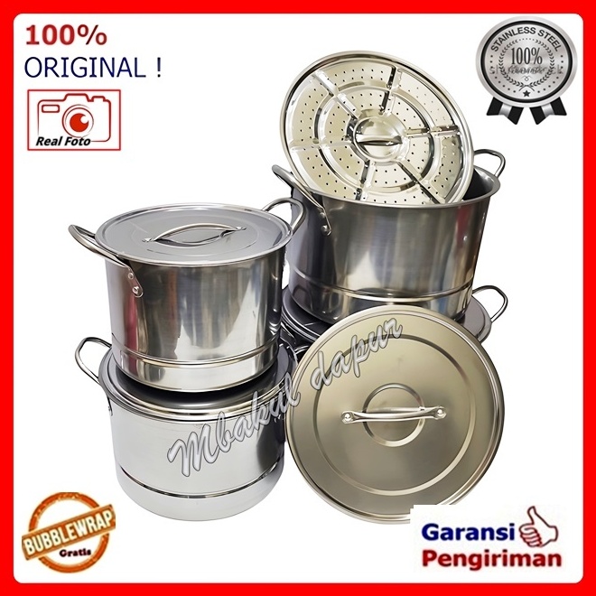 Panci Stainless Tinggi Plus Steamer Panci Liwet Nasi Dandang Kukus Nasi Stockpot Stainless