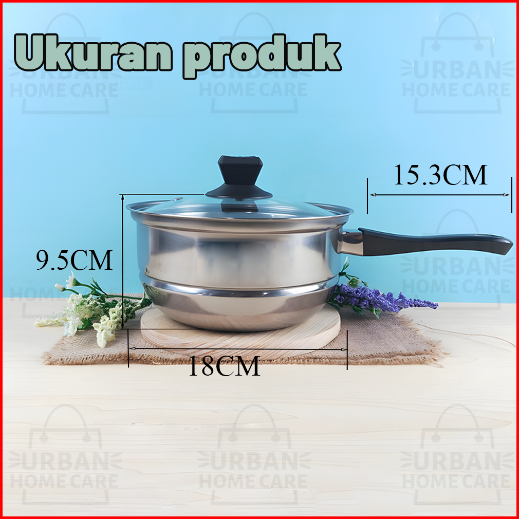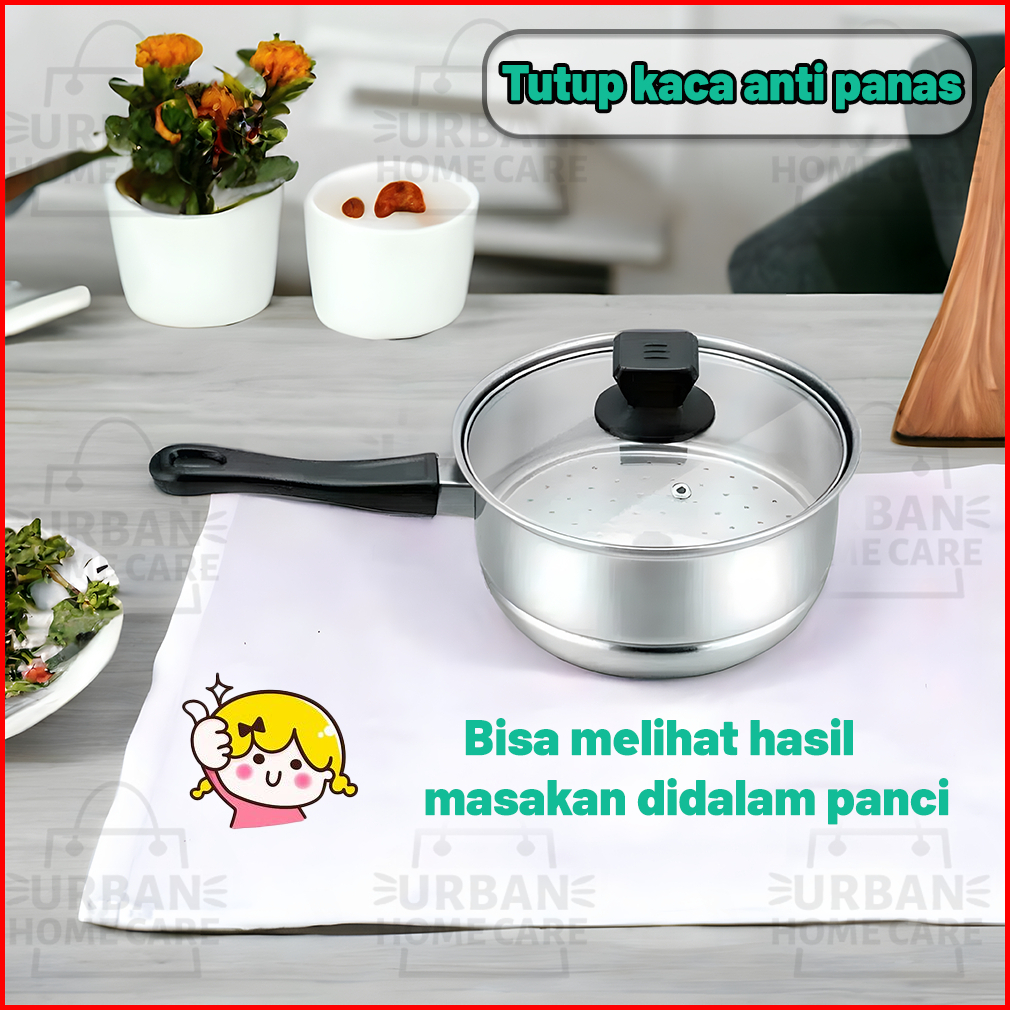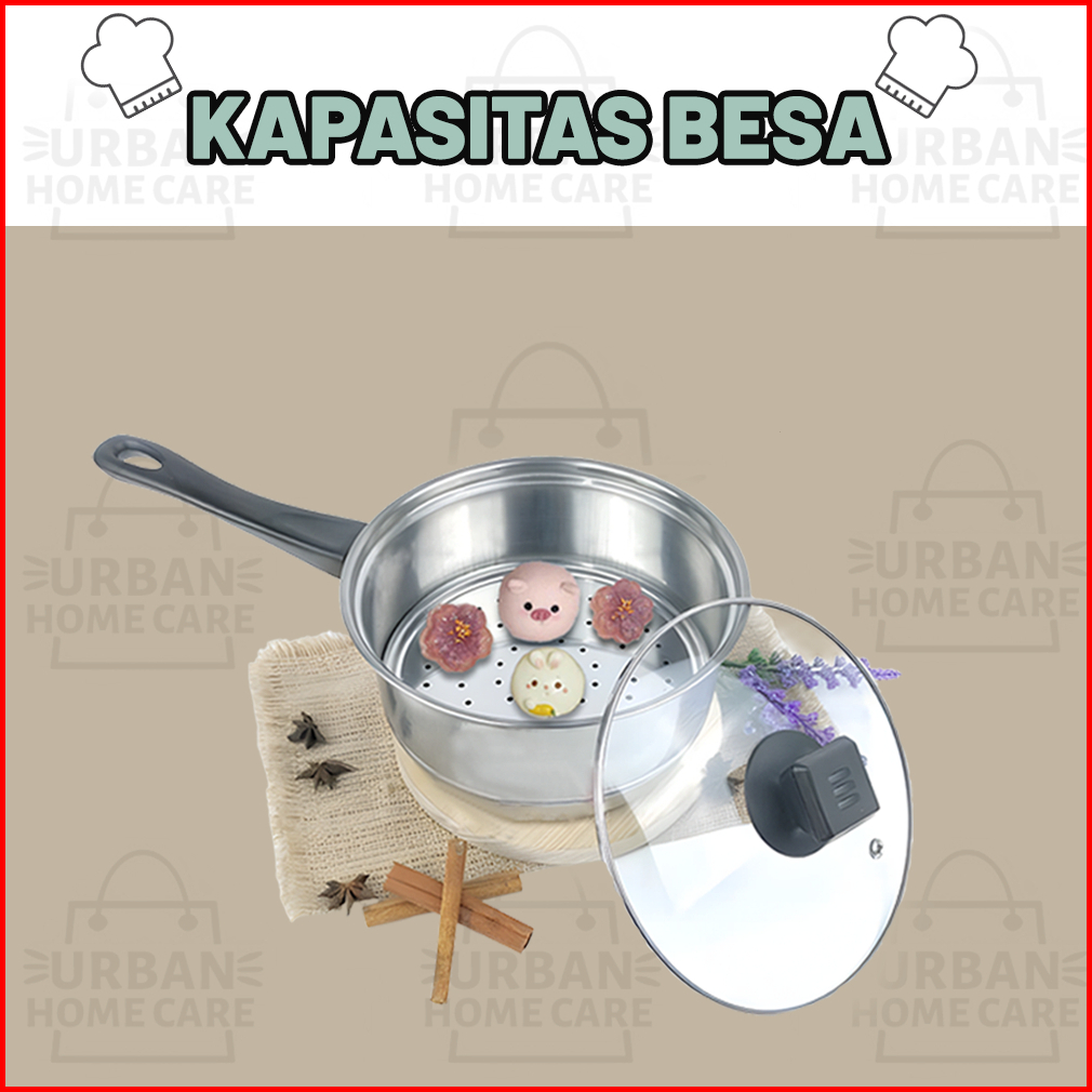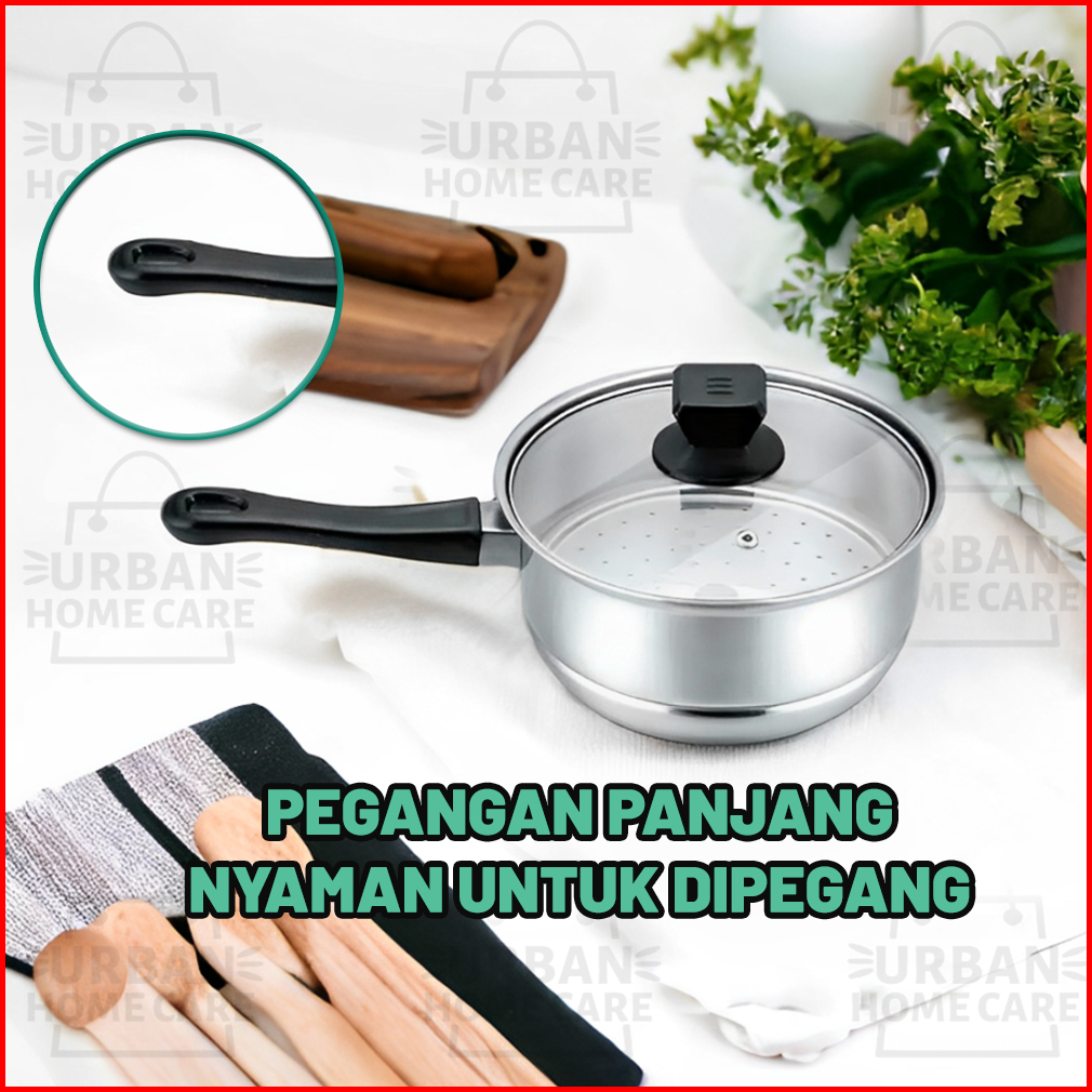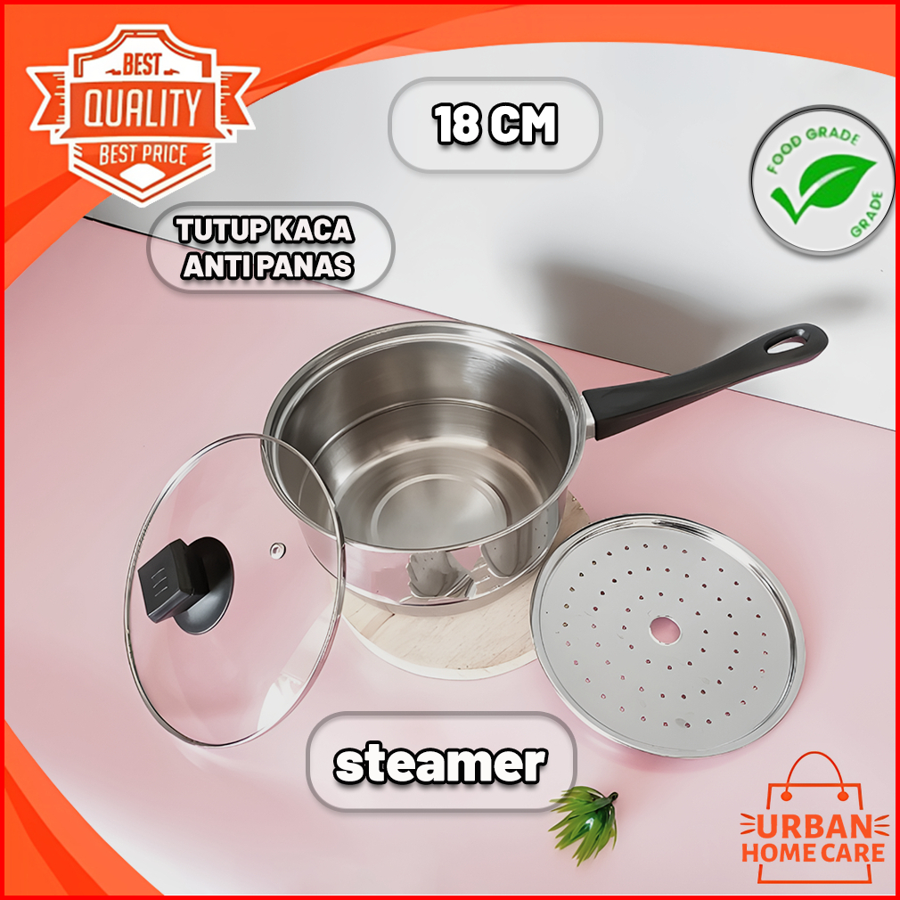 Urban Panci Susu Steamer Kukus Milk Pot 18 Cm Dengan Kukusan Steamer Multifungsi Stainless Steel Stainless Kukusan Makan
