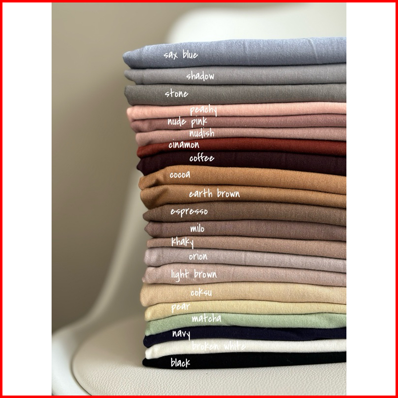 navy, pear, black, peachy, stone, shadow, milo, khaky, earth brown, cocoa, coksu, broken white, cinamon, matcha, coffee, sax blue, light brown, orion, nude pink, nudish, espresso, rose, latte, ivory, red cherry, lilac, beige, dark choco, dark grey
