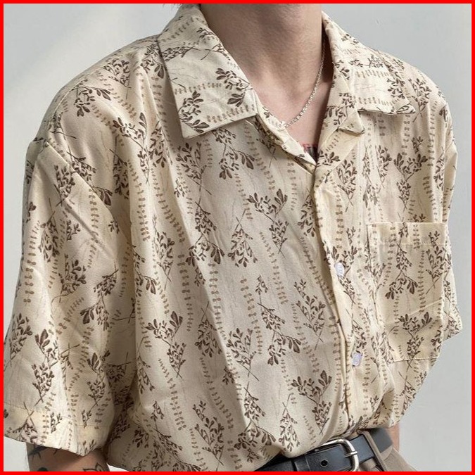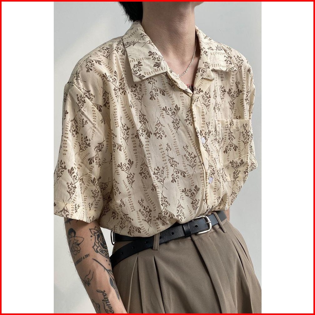 Dark Icon Summer Small Flower Cuba Collar Vintage Hawaiian Shirts Men Holiday Beach Shirts Couple Clothing Male Top