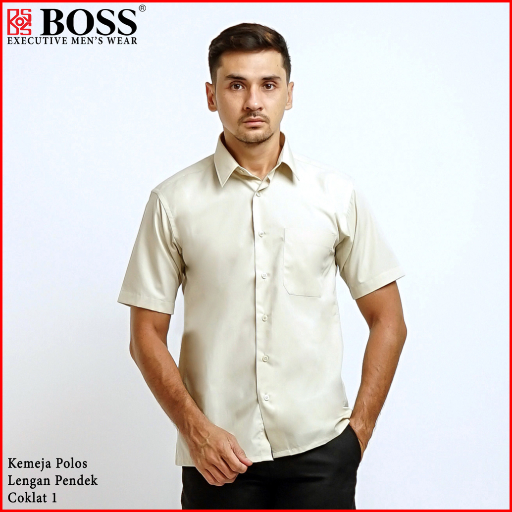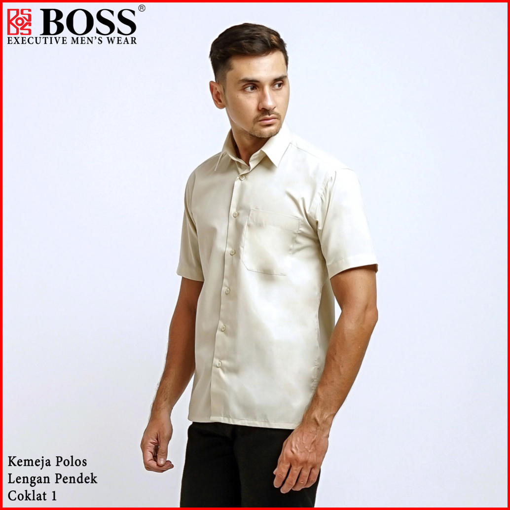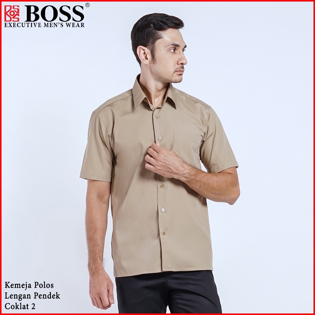 Boss Kemeja Polos Pria Lengan Pendek Regular Fit Coklat