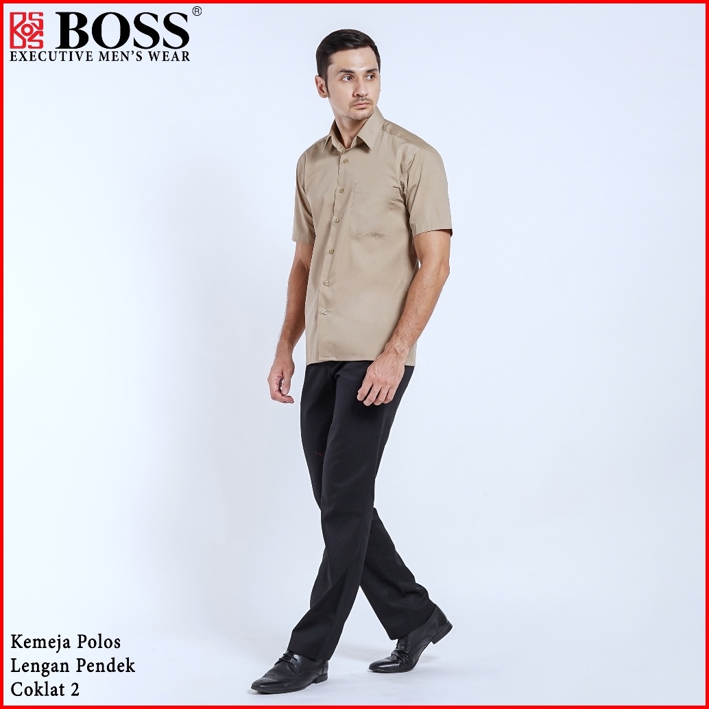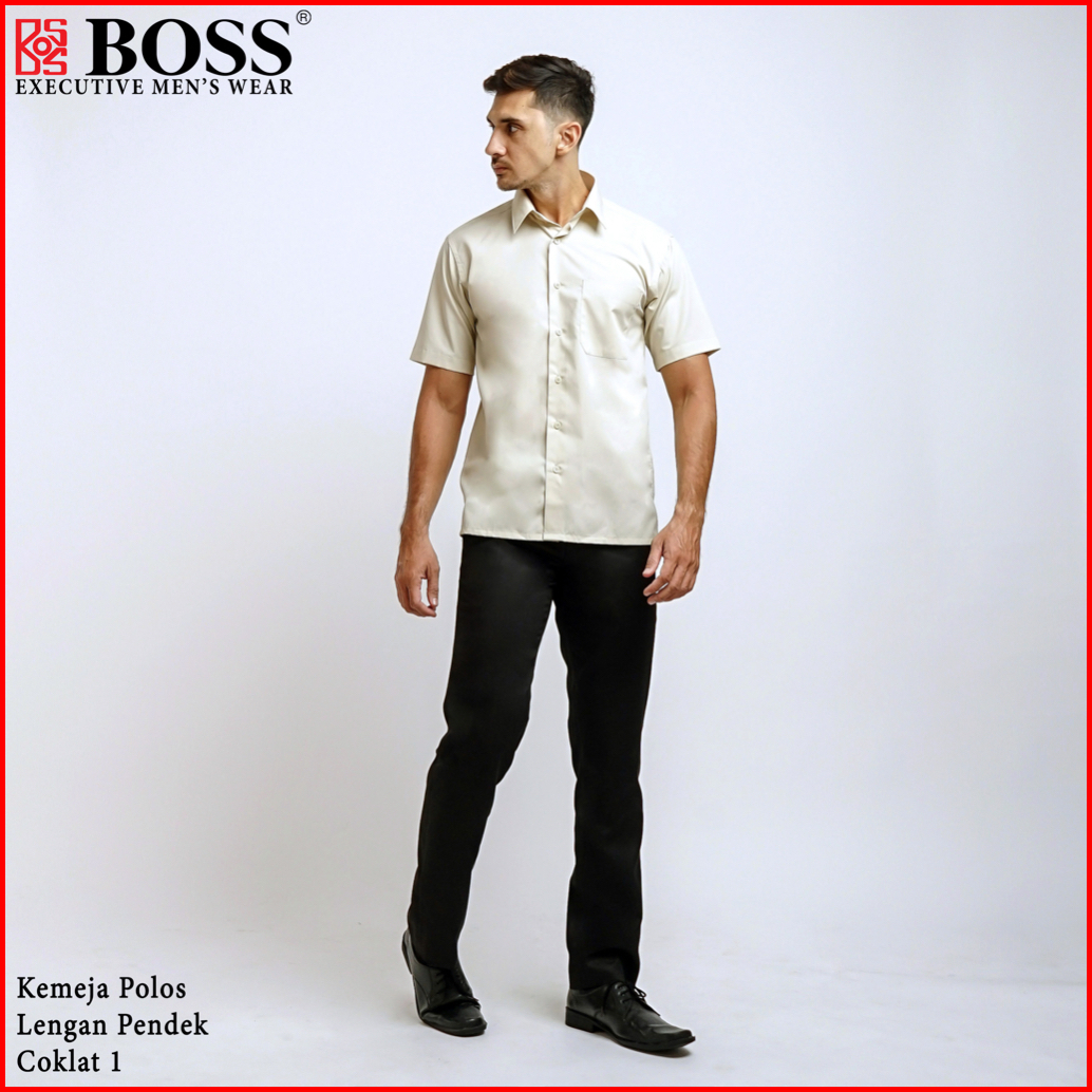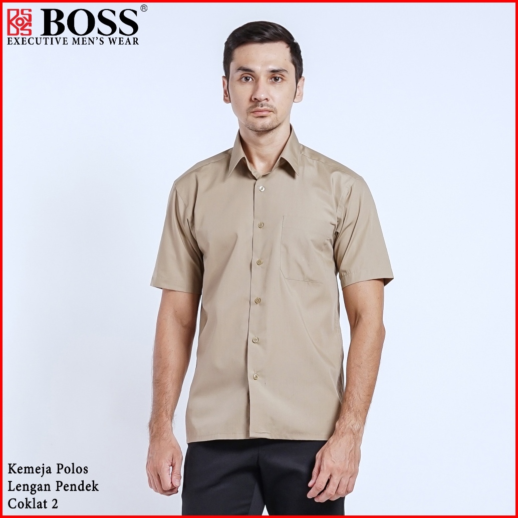 Boss Kemeja Polos Pria Lengan Pendek Regular Fit Coklat