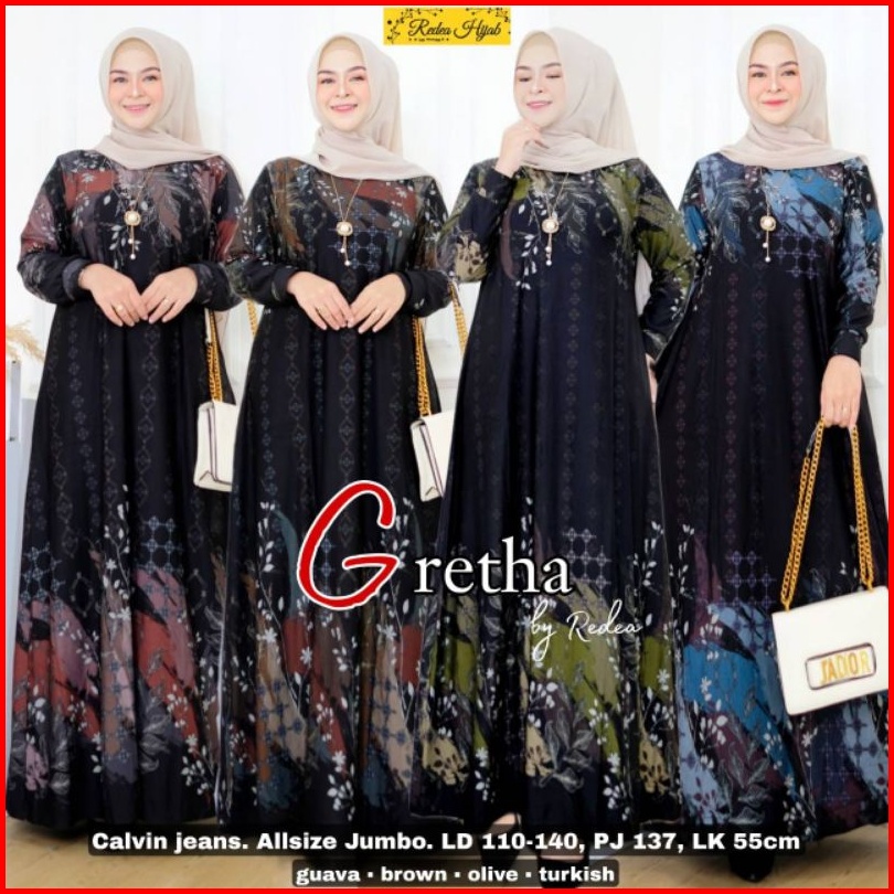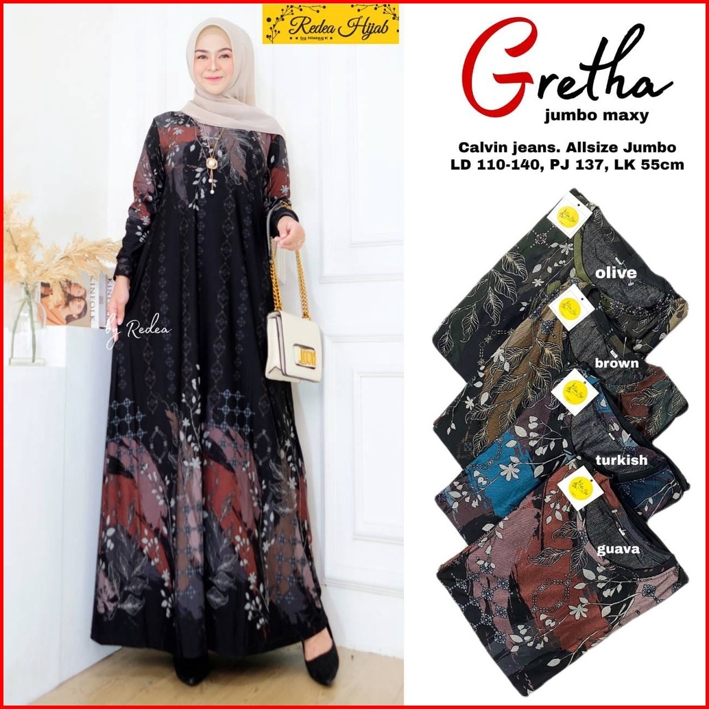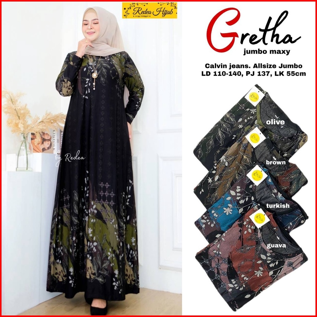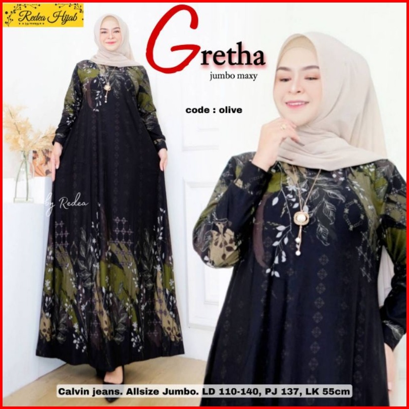 Gretha Jumbo Maxy Fashion Muslim Wanita Terbaru 2022 Gamis Calvin Jeans Jumbo All Size Ld 110-140 Baju Gamis Seragaman I