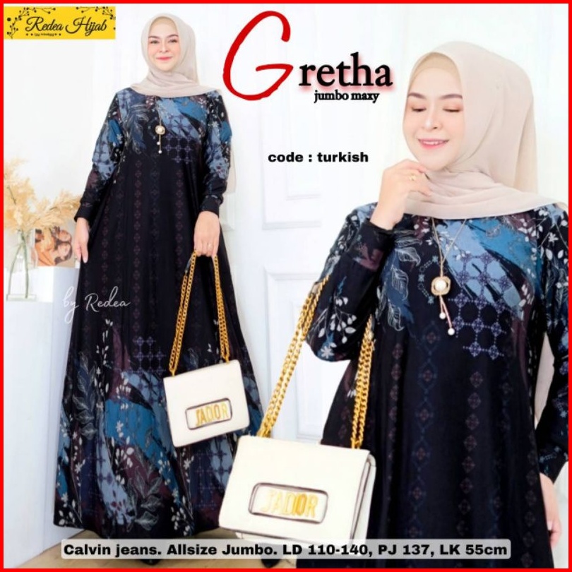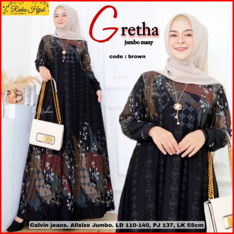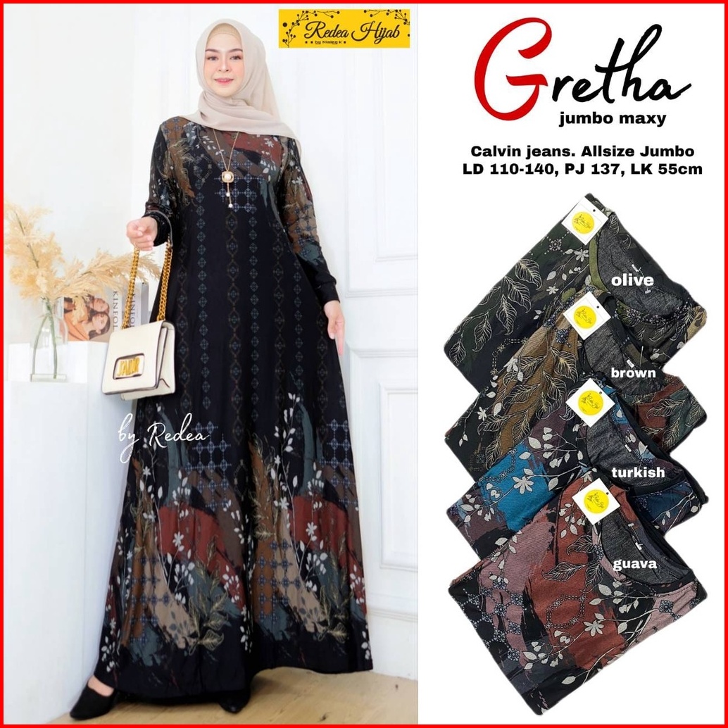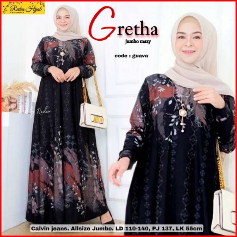 Gretha Jumbo Maxy Fashion Muslim Wanita Terbaru 2022 Gamis Calvin Jeans Jumbo All Size Ld 110-140 Baju Gamis Seragaman I