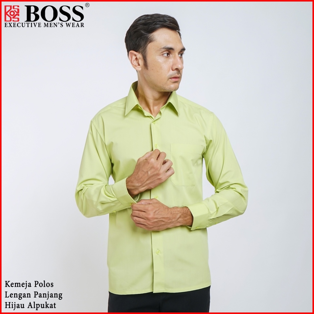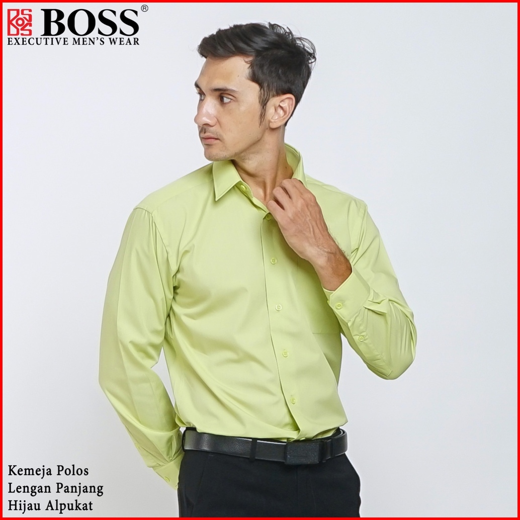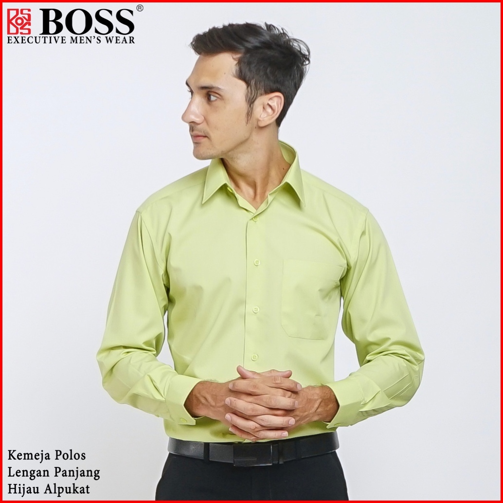 Boss - Kemeja Polos Pria Lengan Panjang Atasan Hem Kantor Cowok Regular Fit Hijau Muda Alpukat Size 3xs - 4xl