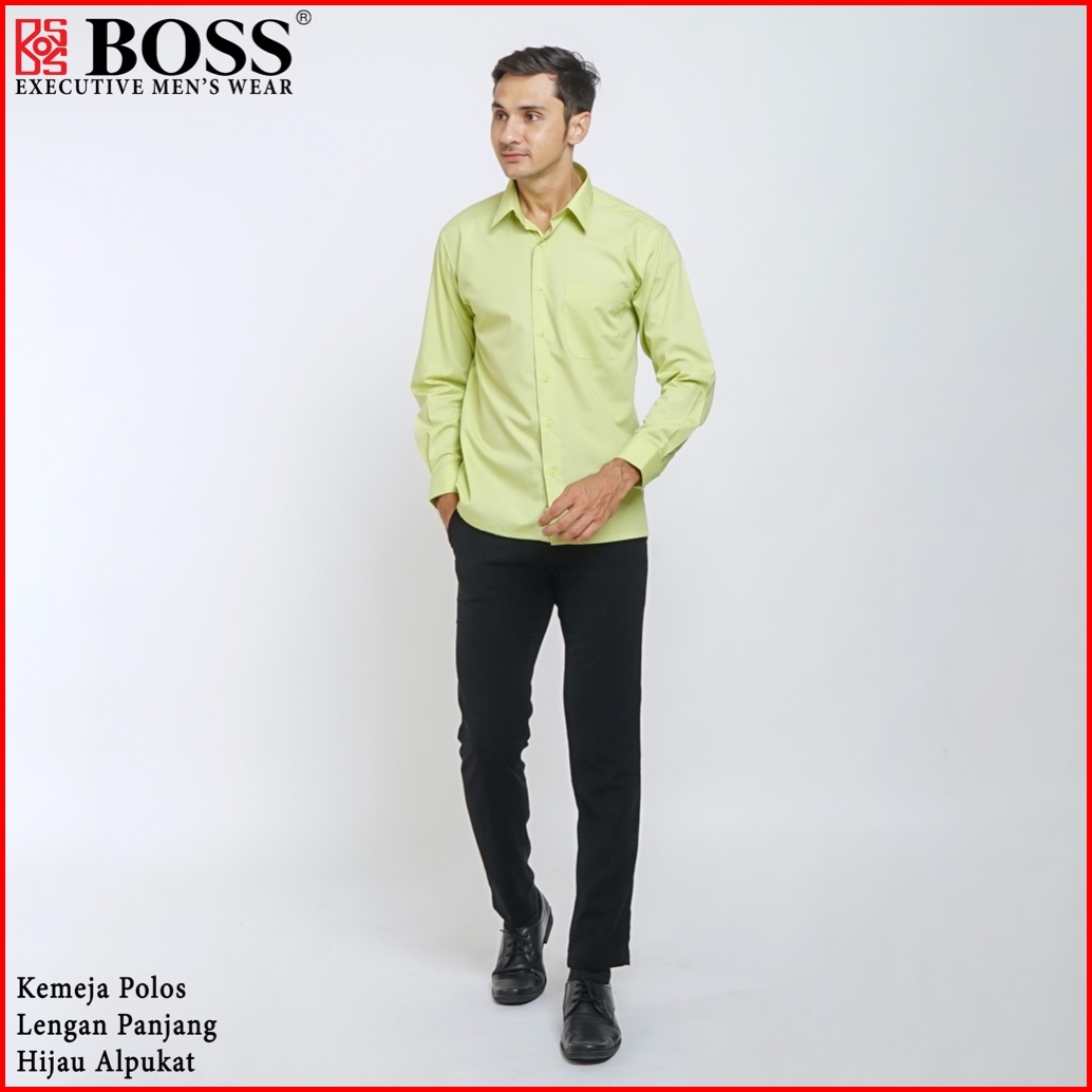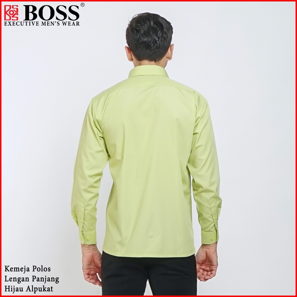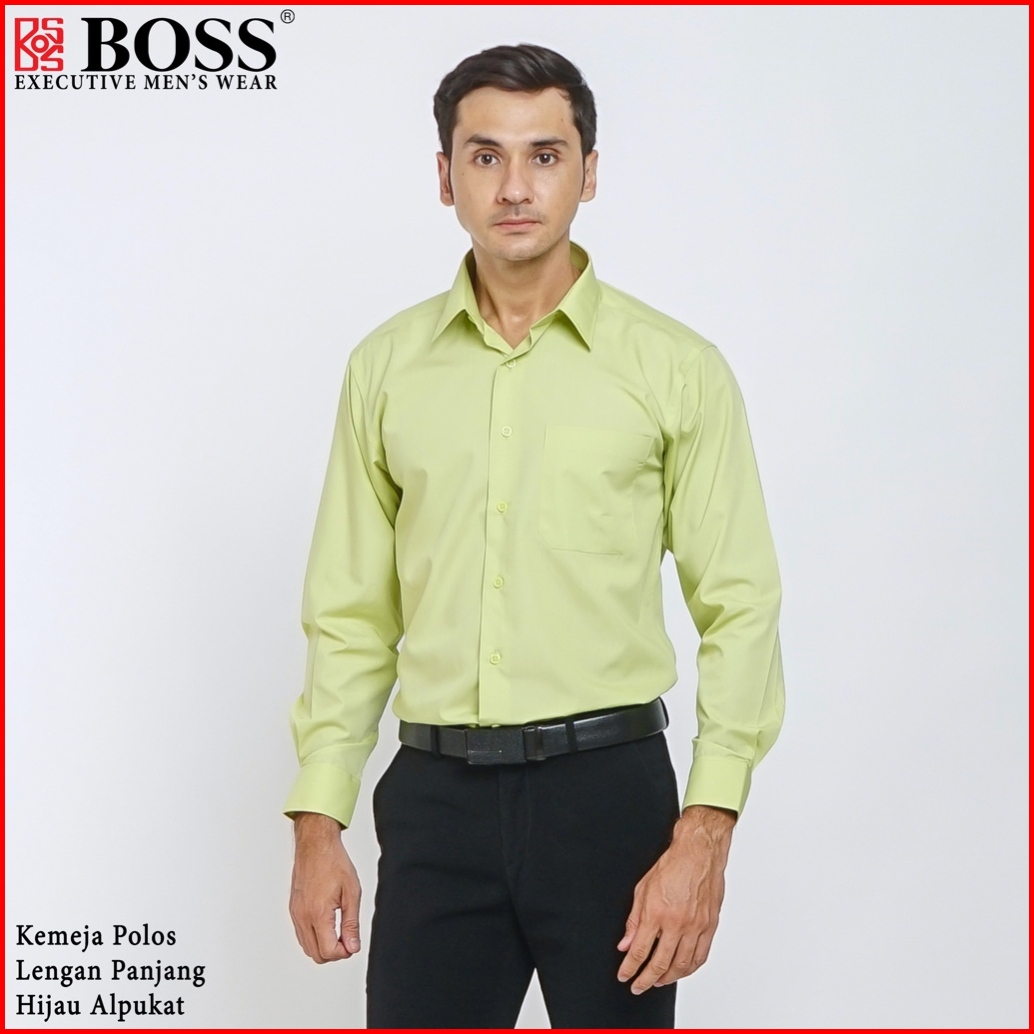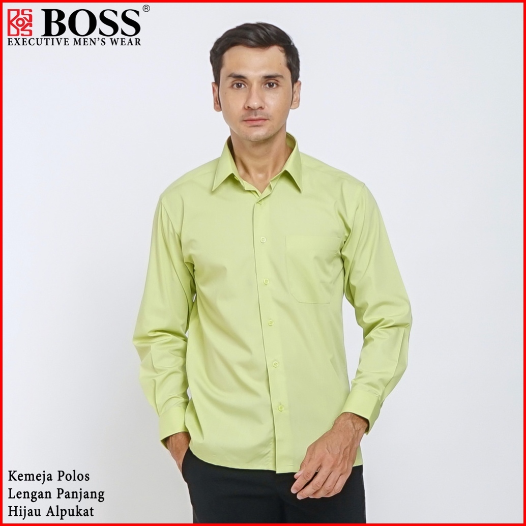 Boss - Kemeja Polos Pria Lengan Panjang Atasan Hem Kantor Cowok Regular Fit Hijau Muda Alpukat Size 3xs - 4xl