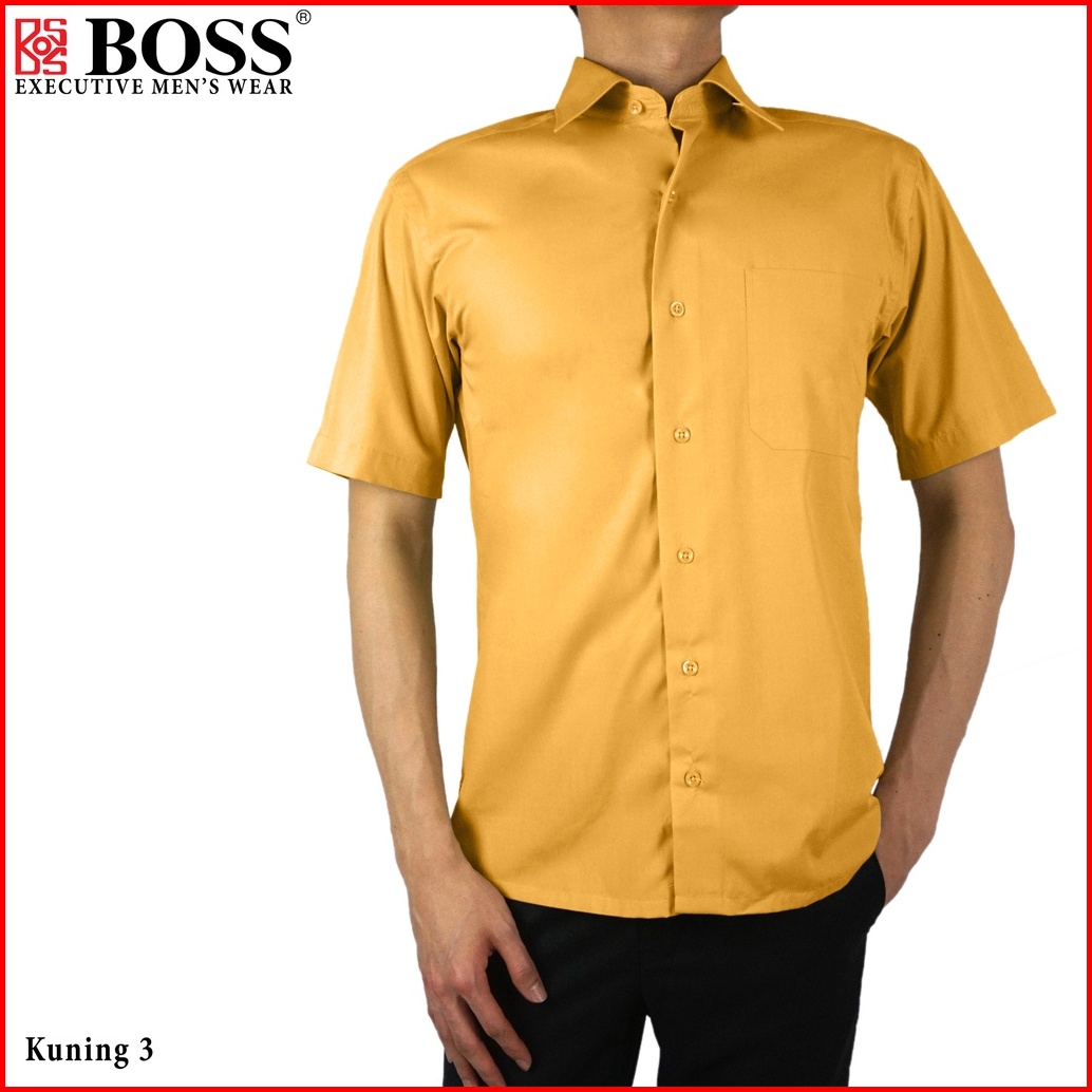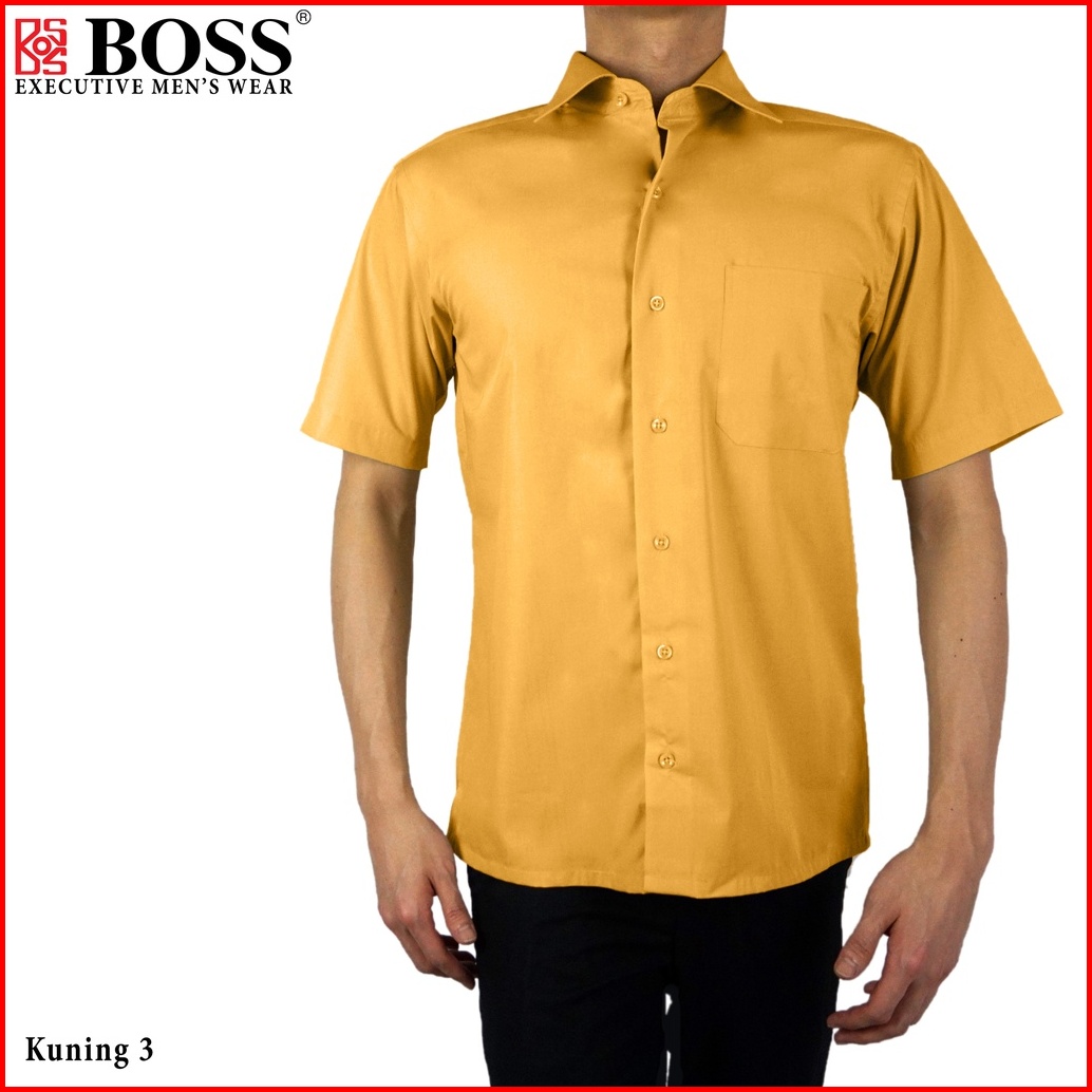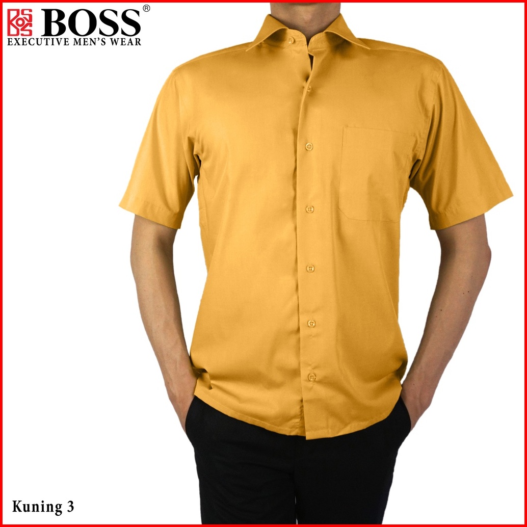 Boss Kemeja Polos Pria Lengan Pendek Regular Fit Kuning