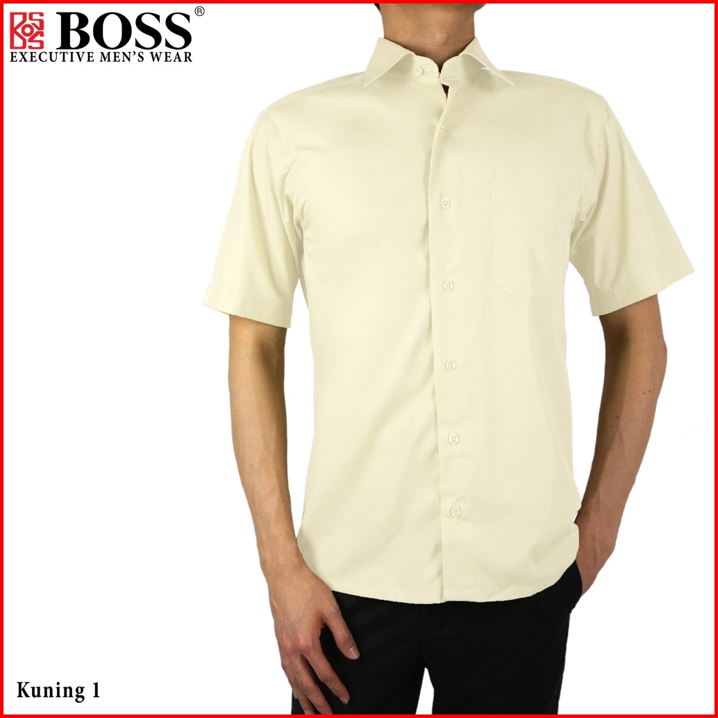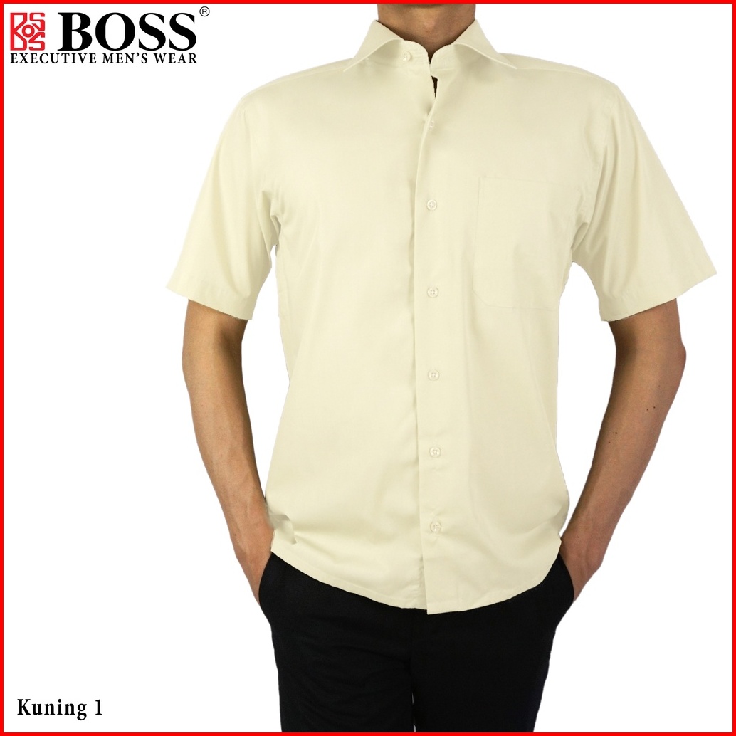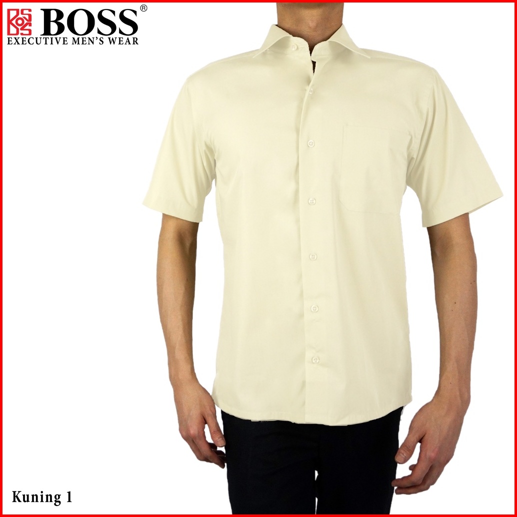 Boss Kemeja Polos Pria Lengan Pendek Regular Fit Kuning